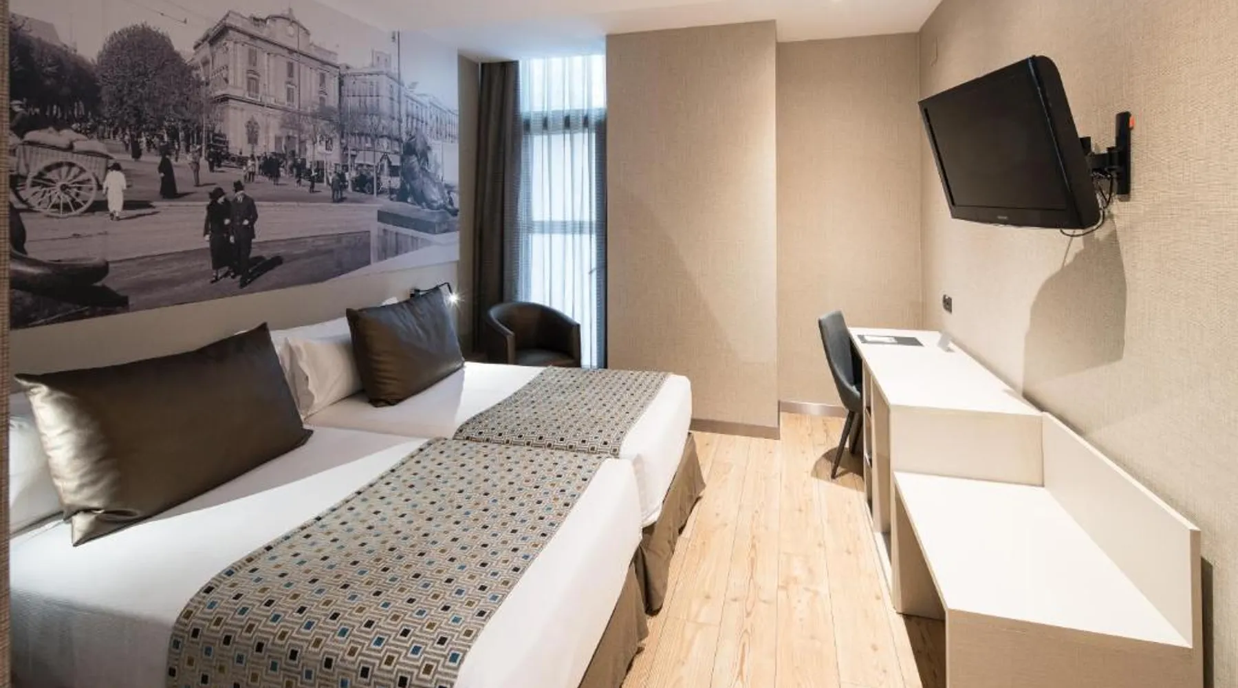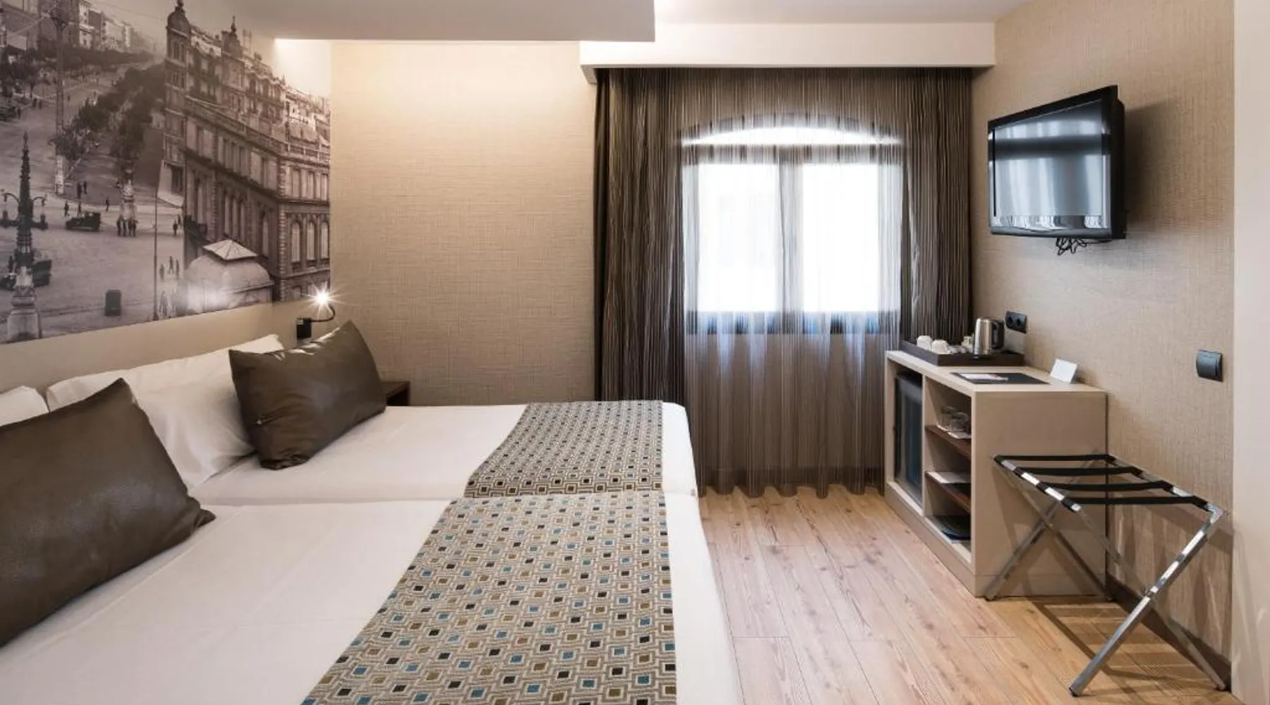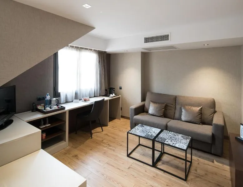 Set in a 19th-century building in Barcelona’s El Born district, Catalonia Born offers a rooftop pool, an attractive central courtyard and free Wi-Fi. Arc de Triomf Metro Station is 820 feet away. The classic rooms at Catalonia Born Hotel come with an elegant marble bathroom. They also include a satellite TV and centrally controlled heating or air conditioning, depending on the season. A buffet breakfast is served, and the snack bar is open for lunch and dinner. There is also a bar in the lobby. Located minutes from França Train Station, the hotel is well-connected to the rest of the city and its surroundings. Car rental is also available from the tour desk. This air-conditioned room features a flat-screen satellite TV, free Wi-Fi, mini-bar, tea and coffee maker. The private bathroom comes with bath and shower. Free toiletries and hairdryer are provided.