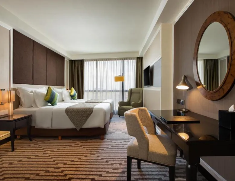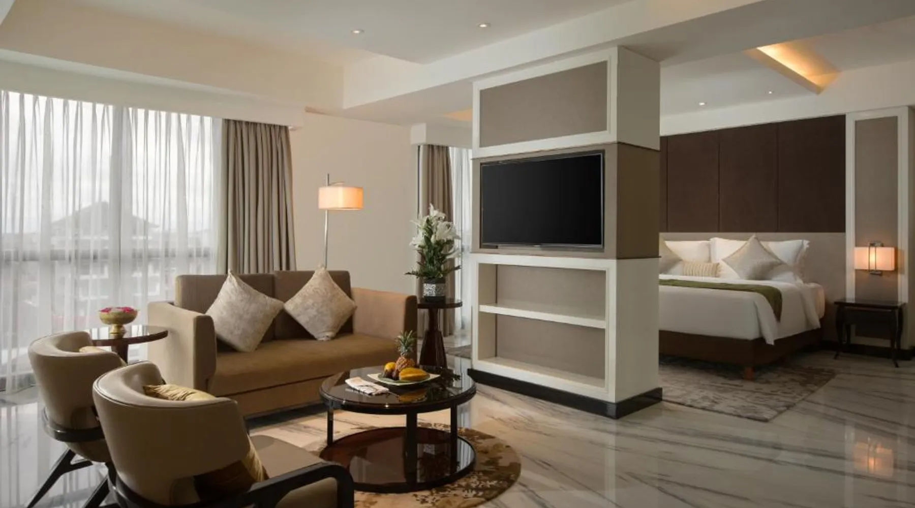 Swiss-Belboutique Yogyakarta is located in the heart of the city, only 328 feet from Tugu Monument. This elegant hotel features spacious rooms an a rooftop pool. Guests can enjoy the on-site bar, as well as spa and fitness center. The rooms have a flat-screen TV. Certain rooms feature a seating area to relax in after a busy day. Every room has a private bathroom. For your comfort, you will find slippers and free toiletries. Swiss-Belboutique Yogyakarta features free WiFi . Malioboro Street is 0.9 mi away, while Adisucipto Airport is 3.7 mi from the property. Providing free toiletries, this double room includes a private bathroom with a walk-in shower, a bidet and a hairdryer. The spacious air-conditioned double room provides a flat-screen TV with cable channels, a mini-bar, a tea and coffee maker, executive lounge access as well as mountain views. The unit offers 1 bed.