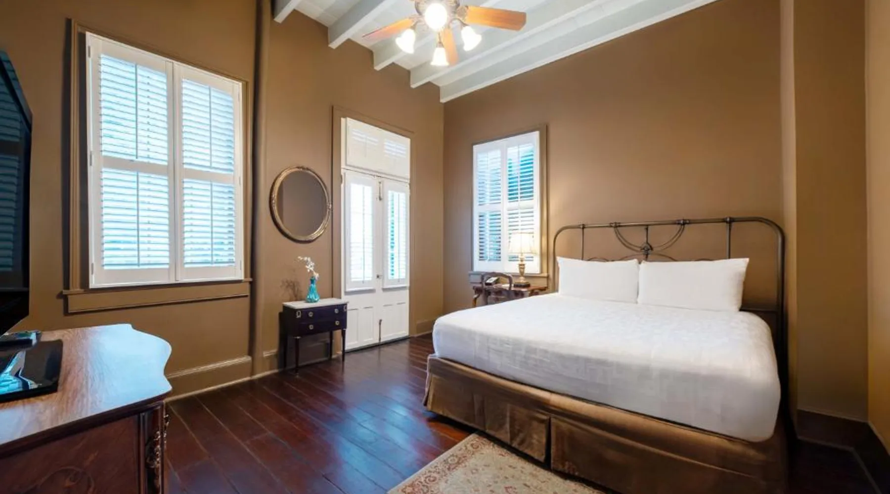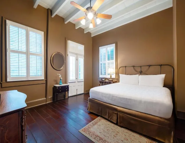 Historic Setting: Audubon Cottages in New Orleans offers a 4-star inn experience housed in a historic building. The property features a saltwater swimming pool, lush garden, and free WiFi, providing a relaxing and comfortable stay. Comfortable Accommodations: Rooms include air-conditioning, private bathrooms with showers, terraces, and garden views. Additional amenities include a coffee machine, refrigerator, TV, and parquet floors, ensuring a pleasant and convenient stay. Convenient Location: Located 14 mi from Louis Armstrong New Orleans International Airport, the inn is close to attractions such as the French Quarter (984 feet), Bourbon Street (1312 feet), and the Louisiana Wildlife Museum (4-minute walk). Private check-in and check-out, daily housekeeping, and family rooms enhance the guest experience. This cottage features private bathrooms with showers and a shared patio.