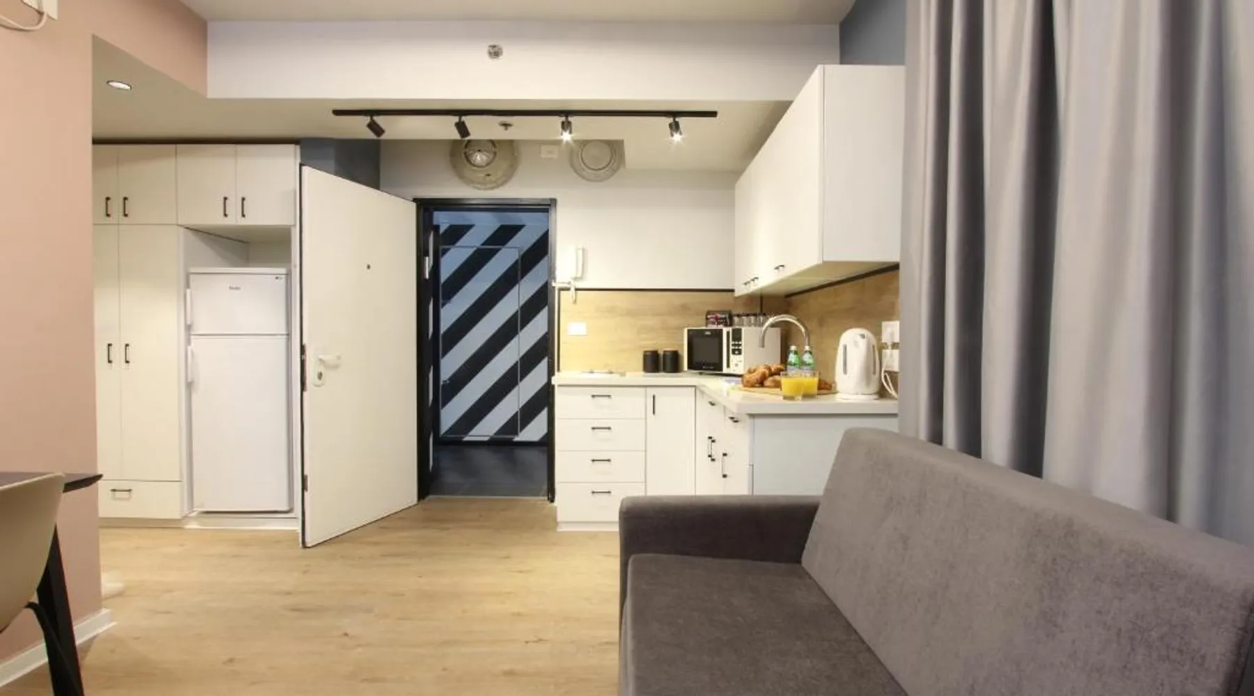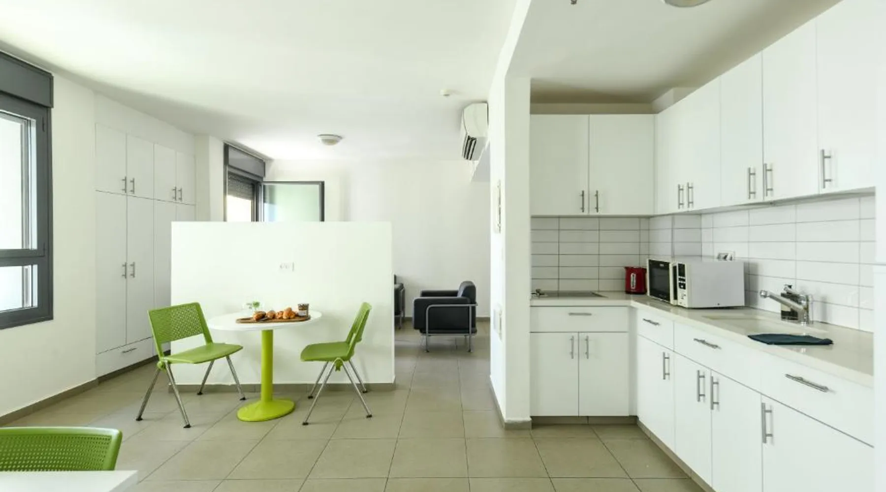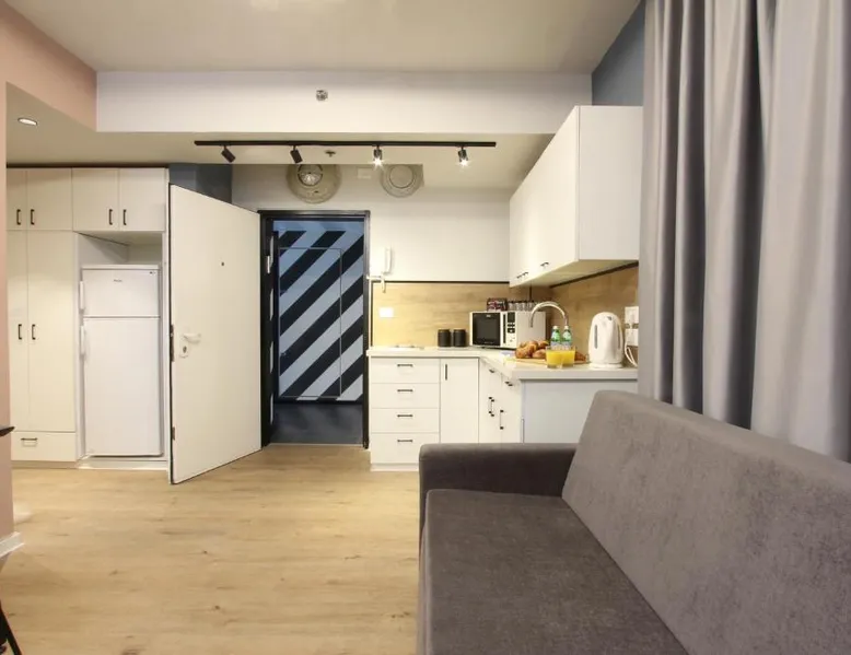 Comfortable Accommodations: The hotel offers family rooms with sea or city views, balconies, and kitchenettes. Each room includes air-conditioning, a private bathroom, work desk, and free toiletries. Essential Facilities: Guests enjoy free WiFi, a paid airport shuttle service, full-day security, and a paid airport shuttle service. Additional amenities include a microwave, shower, TV, stovetop, and a seating area. Prime Location: Located in Tel Aviv, the property is less than 0.6 mi from the Yitzhak Rabin Center and a 19-minute walk to Park HaYarkon. Ben Gurion Airport is 11 mi away. Nearby attractions include Kikar Ha-Medina and Tel Aviv Museum of Art. This apartment is consisted of of 1 living room, 1 separate bedroom and 1 bathroom with a shower and free toiletries. The kitchen is fitted with a stovetop, a refrigerator and a microwave. The air-conditioned apartment offers a flat-screen TV with cable channels, a tea and coffee maker, a seating area, a sofa as well as city views. The unit offers 2 beds.