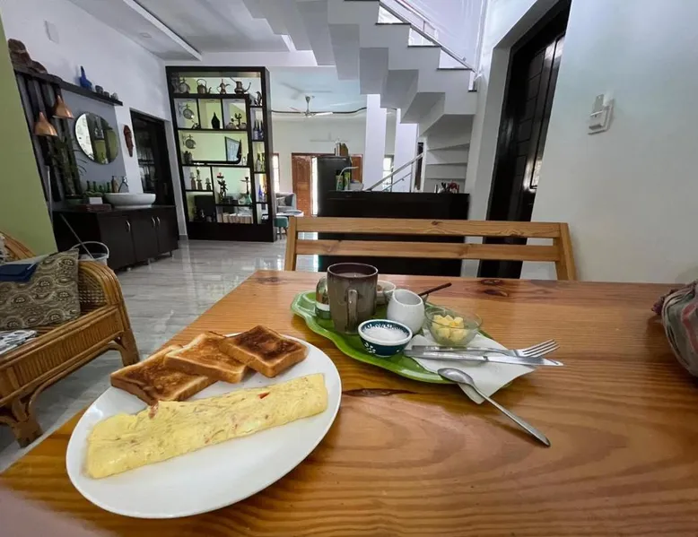 Beautiful Garden and Terrace: Peacock Villa Marari Beach in Mararikulam North offers a lush garden and a spacious terrace. Guests enjoy free WiFi throughout the property, ensuring connectivity during their stay. Comfortable Accommodations: The homestay features air-conditioned rooms with private bathrooms. Each unit includes a patio, outdoor dining area, and garden views. Ground-floor units provide easy access to the beach, just a 4-minute walk away. Delicious Breakfast Options: A variety of breakfast options are available, including continental, à la carte, vegetarian, and Asian. Guests can savor juice, pancakes, and fresh fruits each morning. Convenient Location: Located 45 mi from Cochin International Airport, the property is close to attractions such as Marari Beach (4-minute walk), Kochi Biennale (27 mi), and St. Andrew's Basilica Arthunkal (4.3 mi). Highly rated for its beach access, host, and convenient location. This air-conditioned twin/double room features a seating area, a patio, garden views and a private bathroom. The unit offers 1 bed.