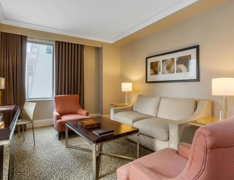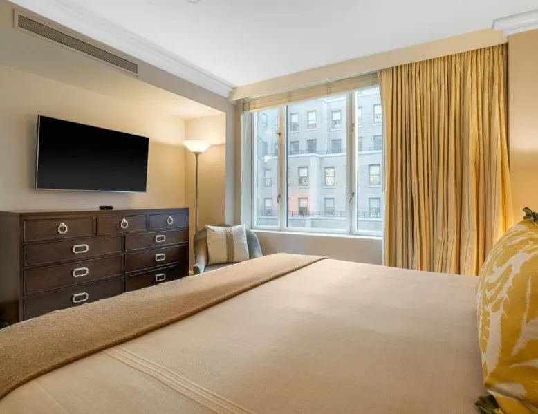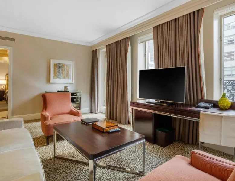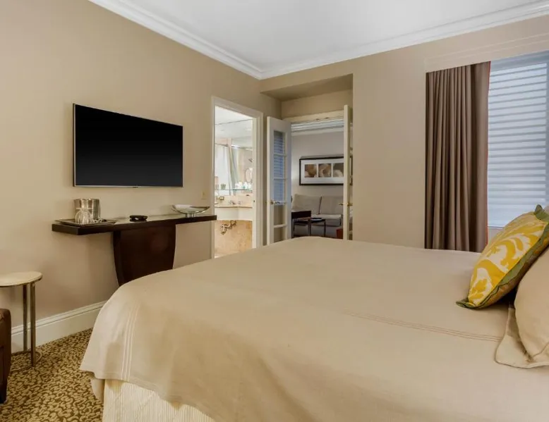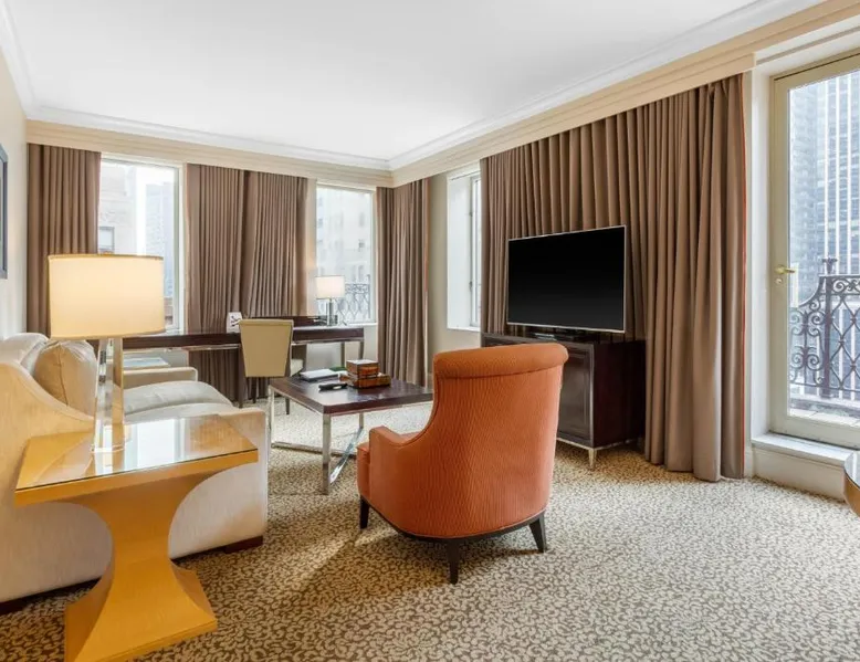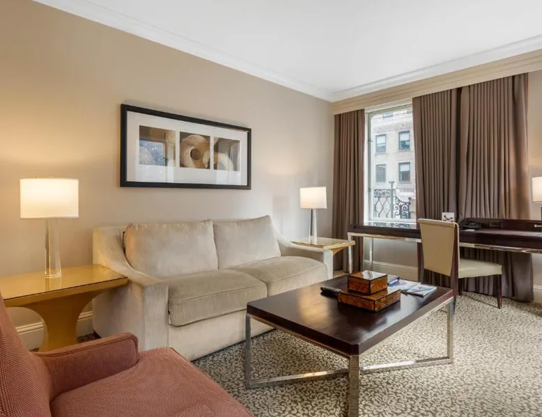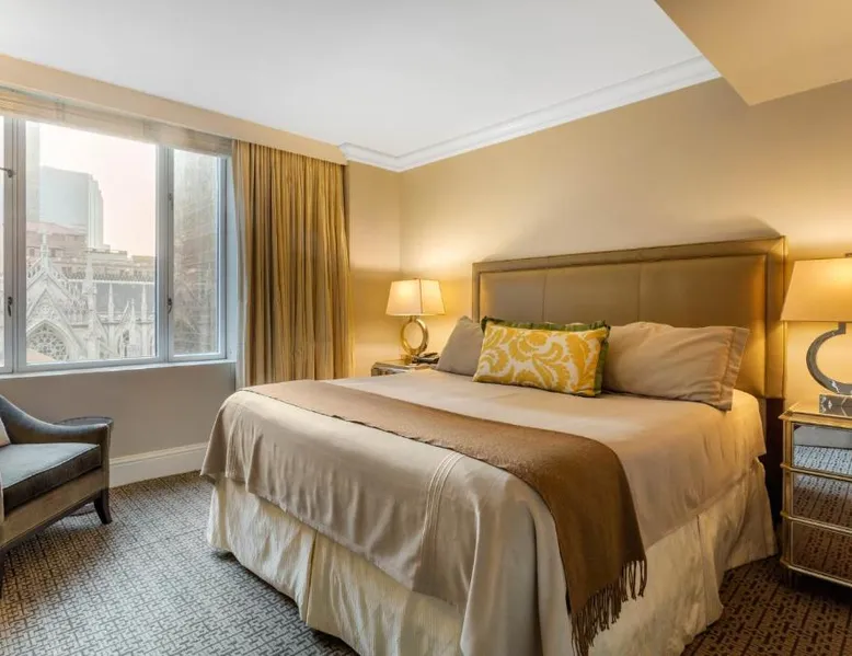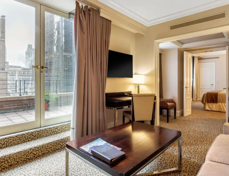 Located within 2113 feet from Rockefeller Center and Radio City Music Hall, this family-friendly Manhattan hotel is 2641 feet from Central Park. It features on-site dining and a sundeck. The rooms at Omni Berkshire Place include a 49-inch flat-screen HDTV with streaming service and a marble bathroom. WiFi is also available. The on-site gym features views of St. Patrick's Cathedral and cardio machines with personal TVs. Concierge services, including in-room massages, are offered. A subway station can be found within 466 feet of Omni Berkshire Place. Times Square is 0.7 mi from the property. This spacious suite includes 1 living room, 1 separate bedroom and 1 bathroom with a bath and free toiletries. The suite has tiled floors, a seating area with a flat-screen TV with cable channels, air conditioning, a wardrobe, as well as a safe deposit box. The unit has 2 beds.