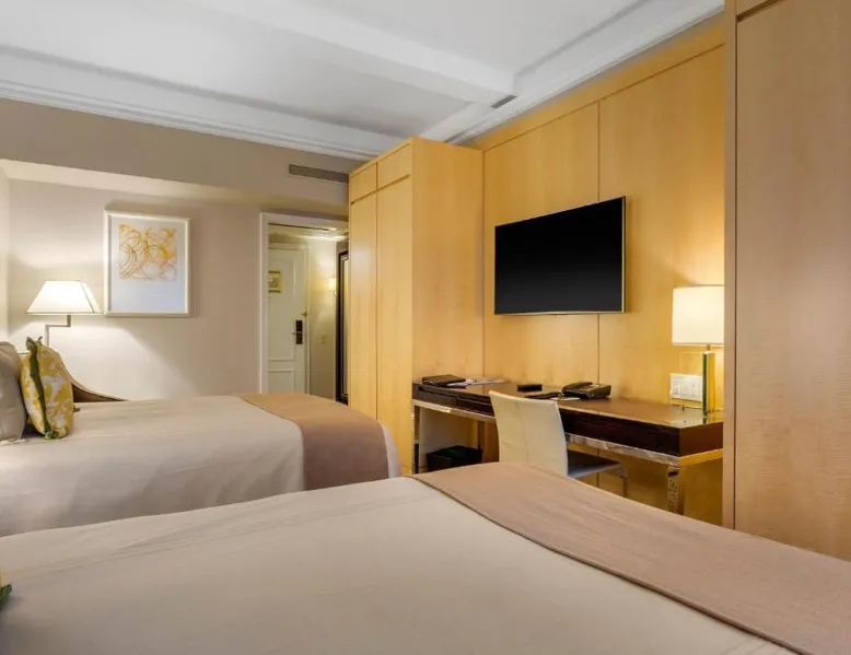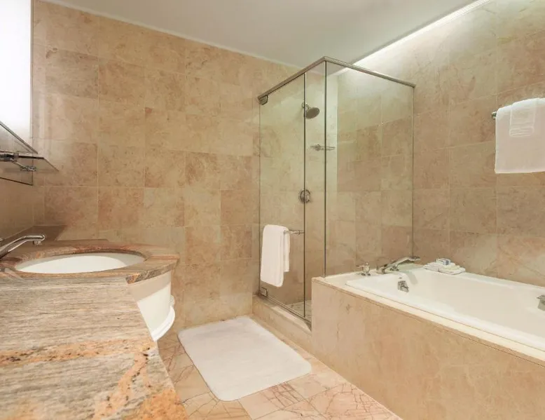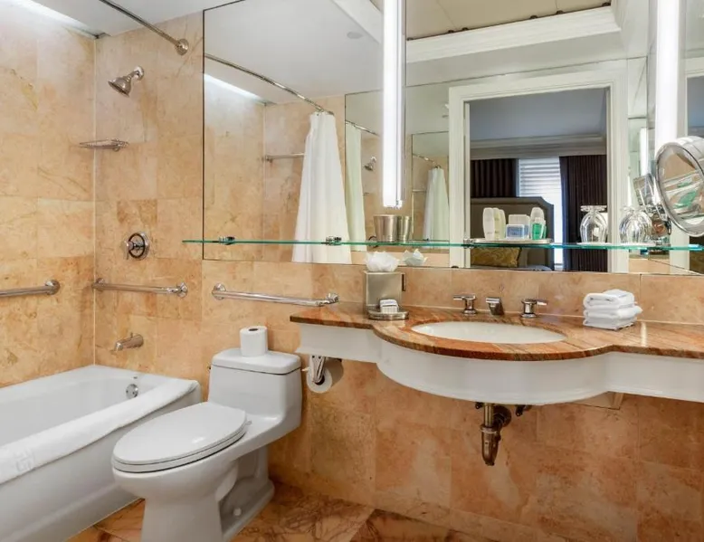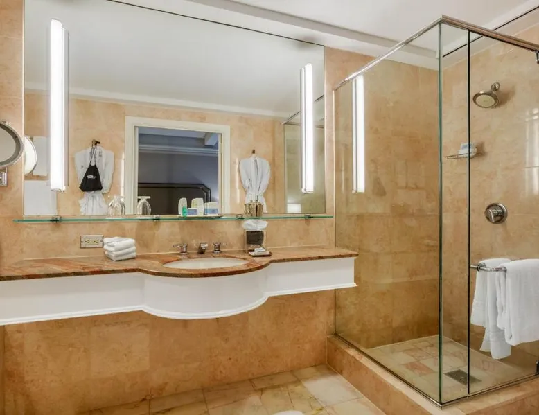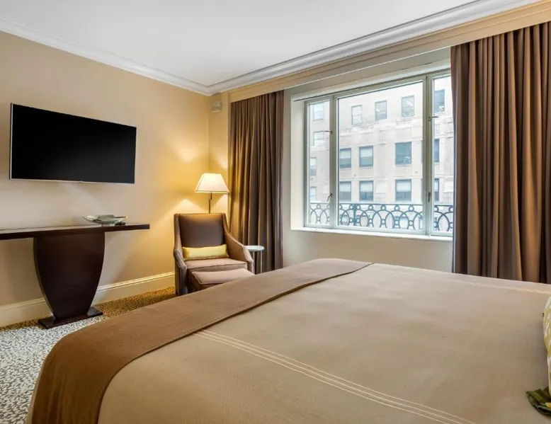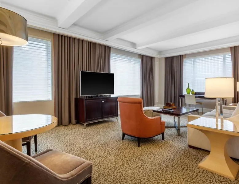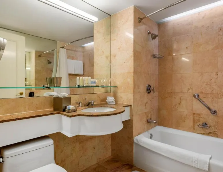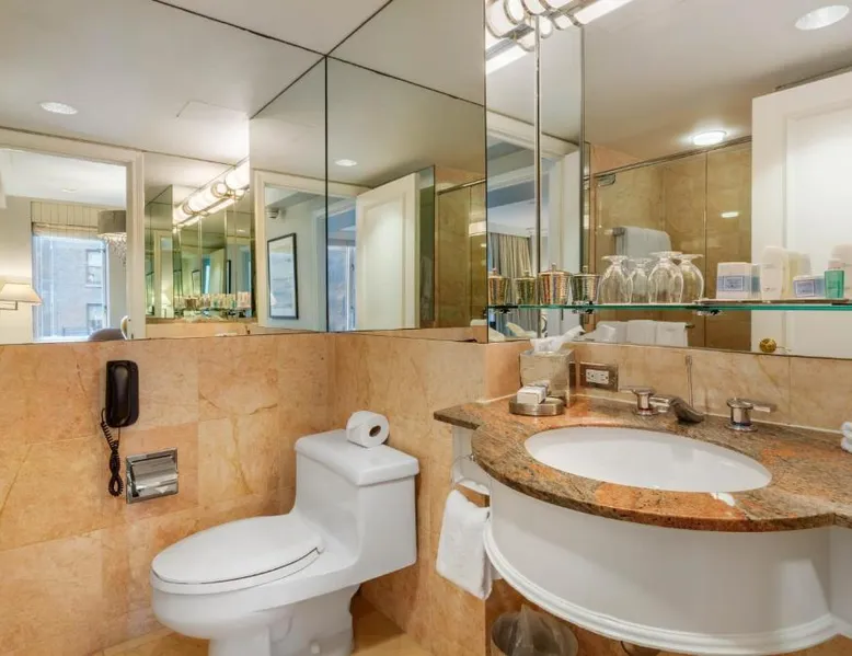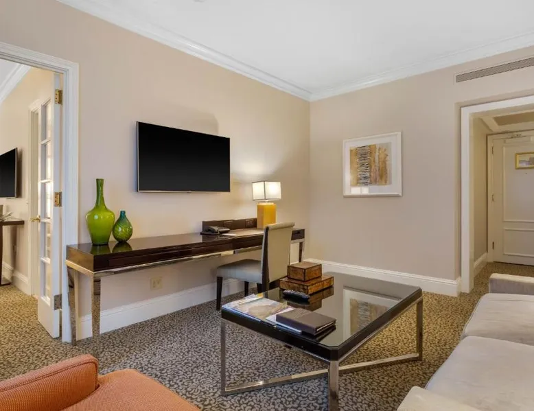 Located within 2113 feet from Rockefeller Center and Radio City Music Hall, this family-friendly Manhattan hotel is 2641 feet from Central Park. It features on-site dining and a sundeck. The rooms at Omni Berkshire Place include a 49-inch flat-screen HDTV with streaming service and a marble bathroom. WiFi is also available. The on-site gym features views of St. Patrick's Cathedral and cardio machines with personal TVs. Concierge services, including in-room massages, are offered. A subway station can be found within 466 feet of Omni Berkshire Place. Times Square is 0.7 mi from the property. This spacious suite includes 1 living room, 1 separate bedroom and 1 bathroom with a bath and free toiletries. The suite has tiled floors, a seating area with a flat-screen TV with cable channels, air conditioning, a wardrobe, as well as a safe deposit box. The unit has 2 beds.