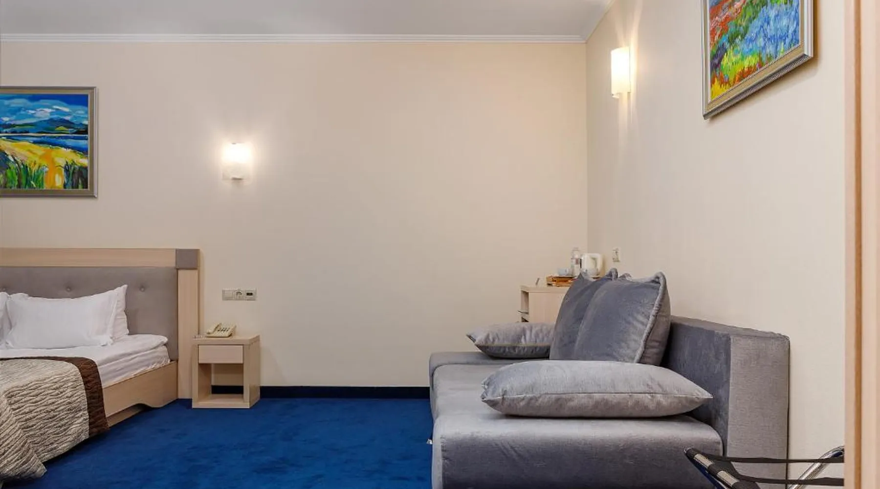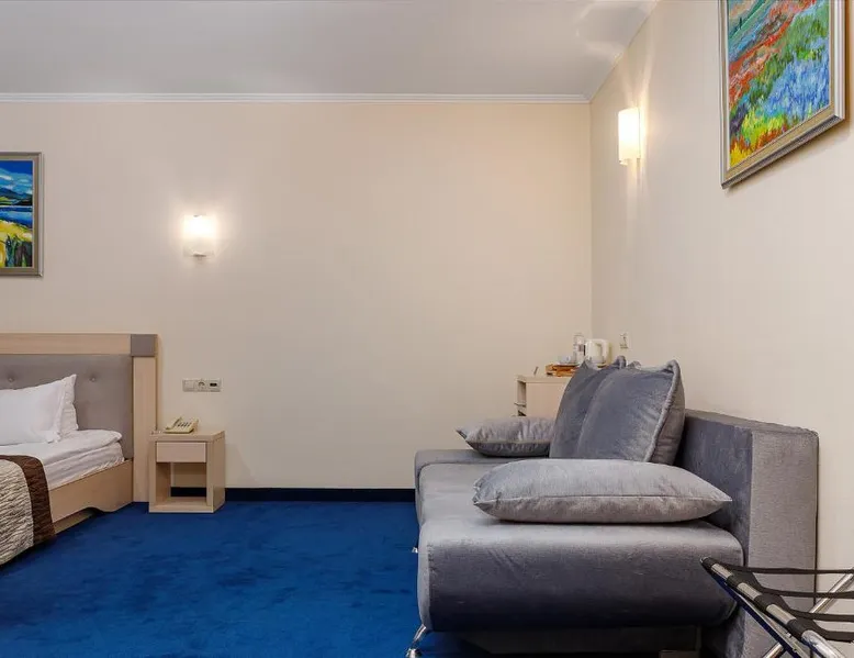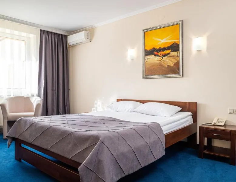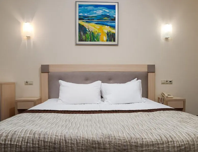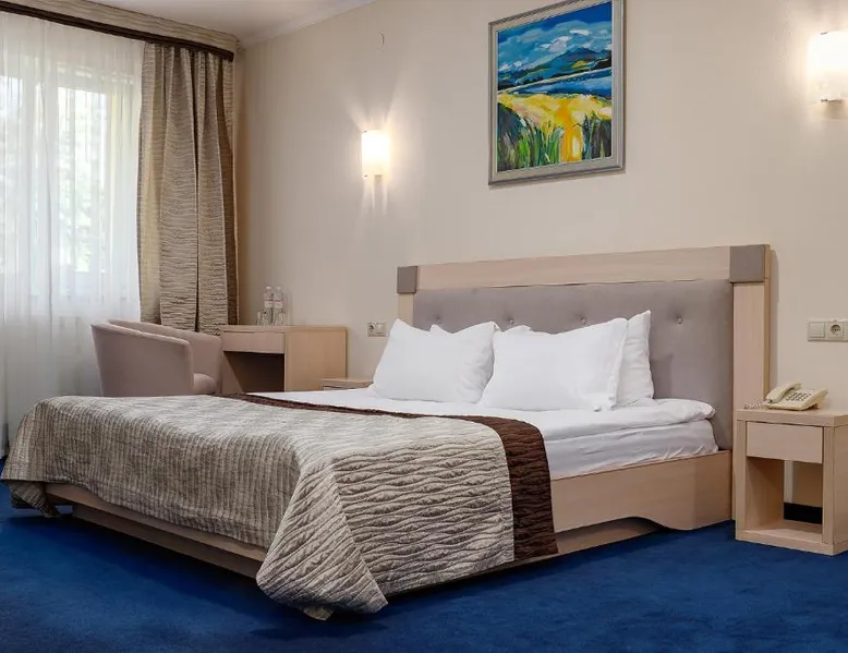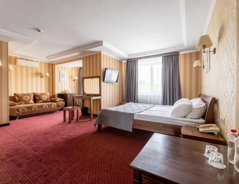 This hotel offers air-conditioned rooms and a restaurant with summer terrace. It provides accommodations with flat-screen TVs and free Wi-Fi. The Sonata Hotel & Restaurant "готель Соната" Hotel features a restaurant serving Ukrainian and European cuisine, and provides 24-hour room service. Guests may request special dishes according to their dietary needs. A buffet breakfast is provided. A 24-hour front desk, laundry and ironing services are available at the Sonata Hotel & Restaurant "готель Соната". The hotel has parking facilities for private cars, the cost of which is included in the price. Parking for tour busses is available upon request, subject to availability and at an additional cost. The hotel offers easy access to Lviv’s many tourist attractions, including the Lviv Theater of Opera and Ballet and the Lemberg Ghetto. Guided tours can be booked at the hotel reception. One-room suite (25-33 sq.m.) without a balcony for single or double occupancy. The rooms are equipped with a comfortable double bed and a sofa bed, air conditioning and modern furniture.