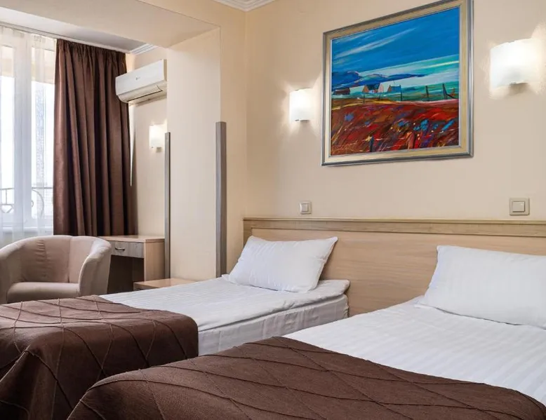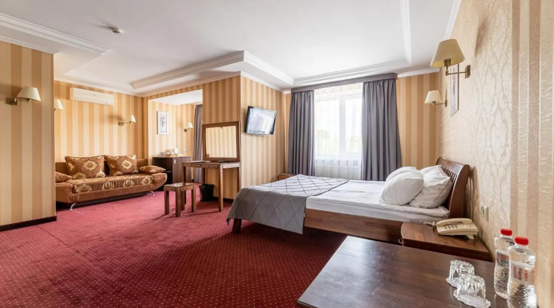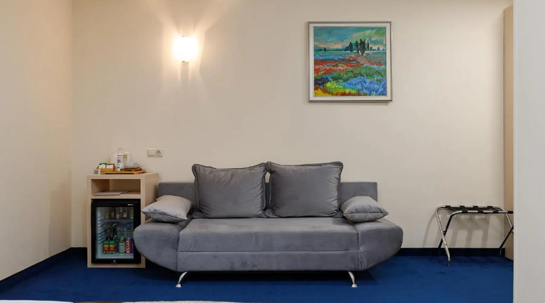 This hotel offers air-conditioned rooms and a restaurant with summer terrace. It provides accommodations with flat-screen TVs and free Wi-Fi. The Sonata Hotel & Restaurant "готель Соната" Hotel features a restaurant serving Ukrainian and European cuisine, and provides 24-hour room service. Guests may request special dishes according to their dietary needs. A buffet breakfast is provided. A 24-hour front desk, laundry and ironing services are available at the Sonata Hotel & Restaurant "готель Соната". The hotel has parking facilities for private cars, the cost of which is included in the price. Parking for tour busses is available upon request, subject to availability and at an additional cost. The hotel offers easy access to Lviv’s many tourist attractions, including the Lviv Theater of Opera and Ballet and the Lemberg Ghetto. Guided tours can be booked at the hotel reception. One-room suite (25-33 sq.m.) without a balcony for single or double occupancy. The rooms are equipped with a comfortable double bed and a sofa bed, air conditioning and modern furniture.