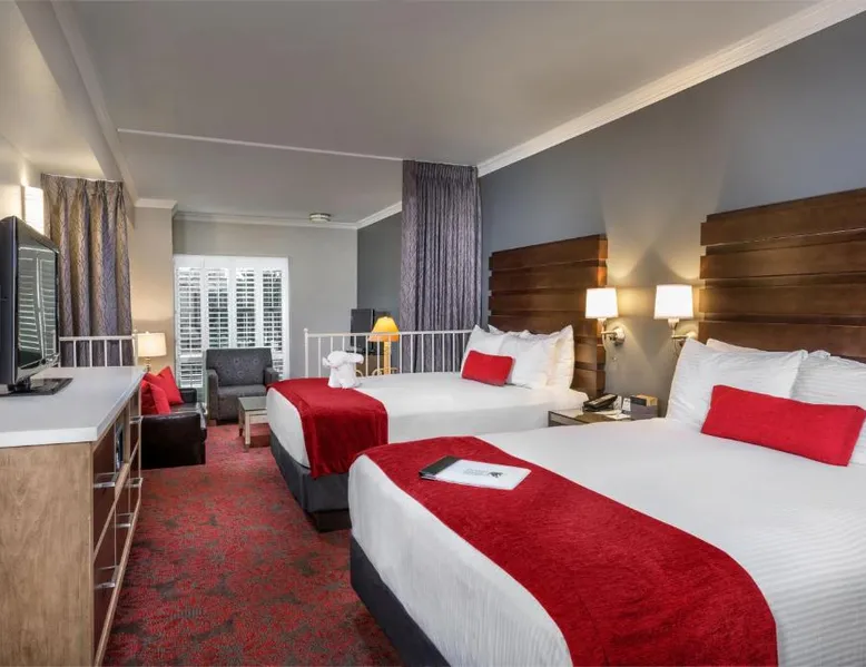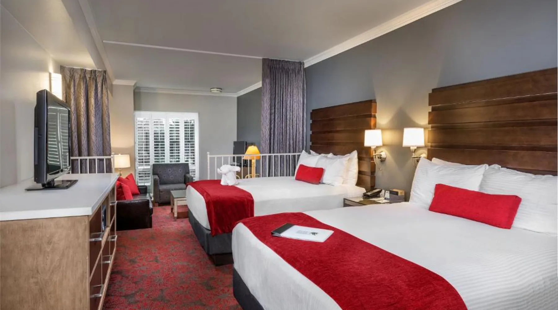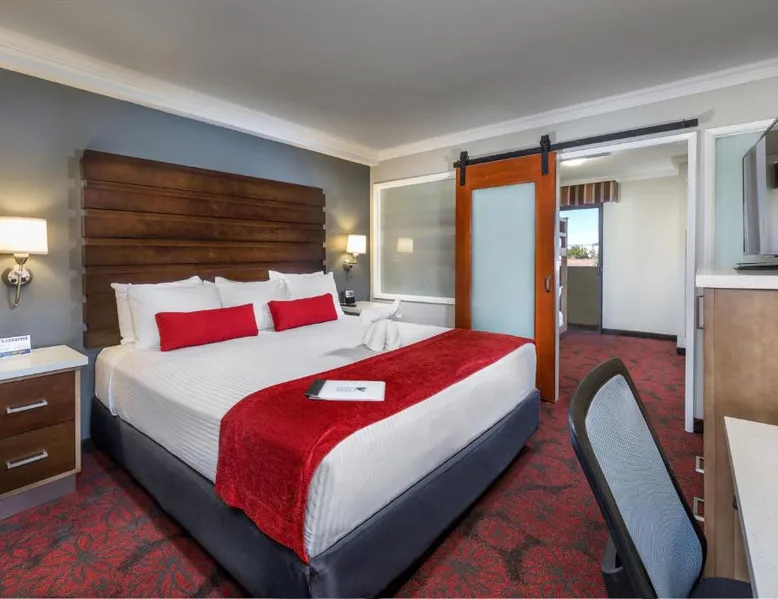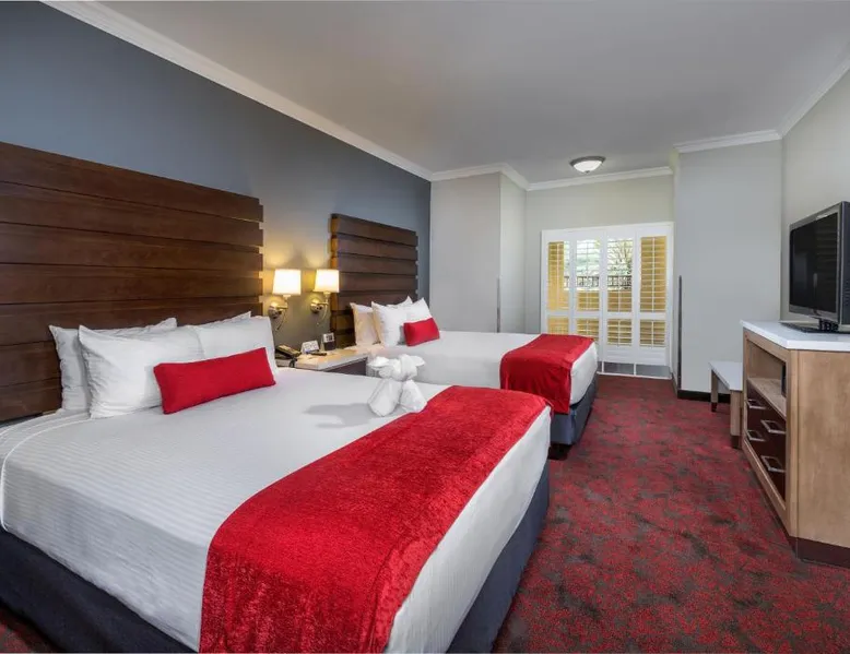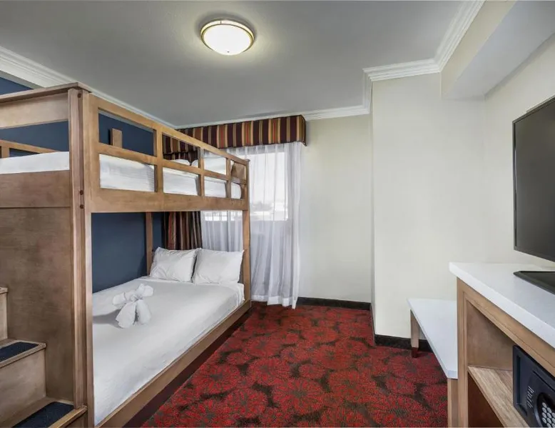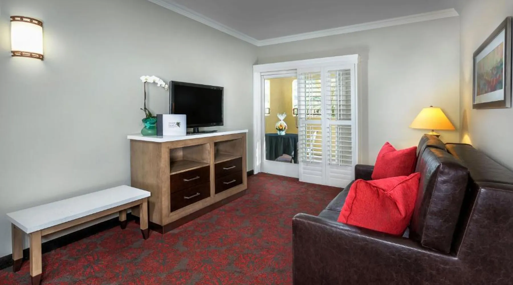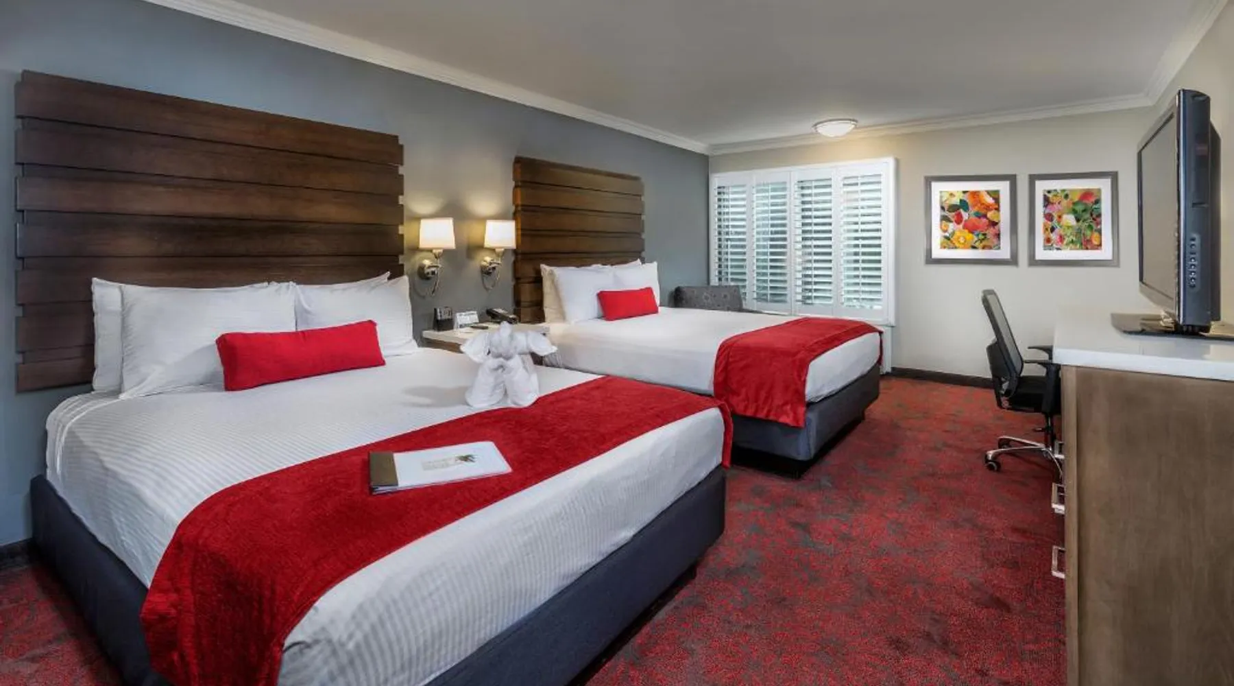 This Anaheim hotel is within a 10-minute walk of Disneyland. It have an outdoor swimming pool. Desert Palms Hotel & Suites Anaheim Resort features a refrigerator and microwave in every guest room. Cable TV and free Wi-Fi are also included in each room. Suites offer separate sitting areas. Guests can use the gym or the 24-hour business center at the Anaheim Desert Palms. Disneyland tickets are available from the front desk. The Anaheim Convention Center is across the street from the Desert Palms in Anaheim. The Honda Center entertainment and event venue is 10 minutes away. Spacious suite offers a kitchenette