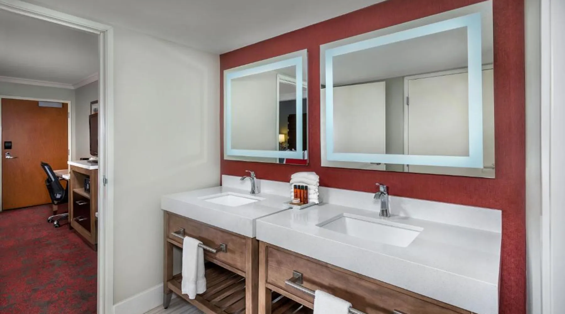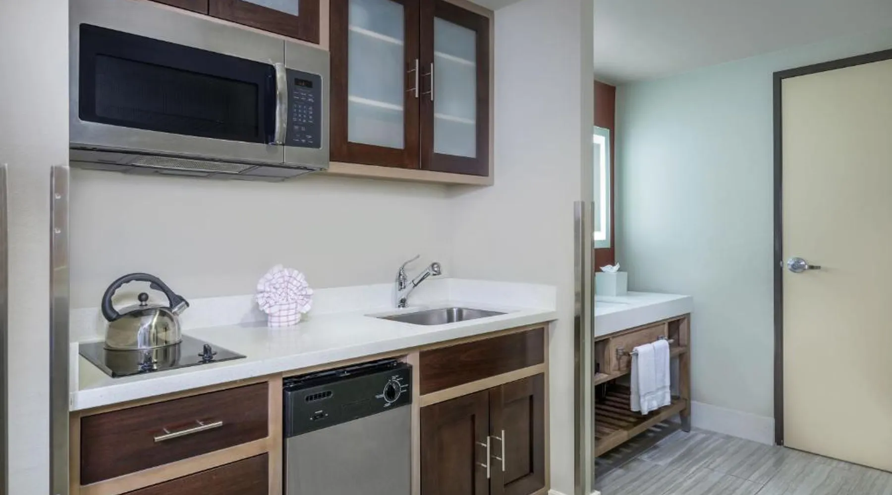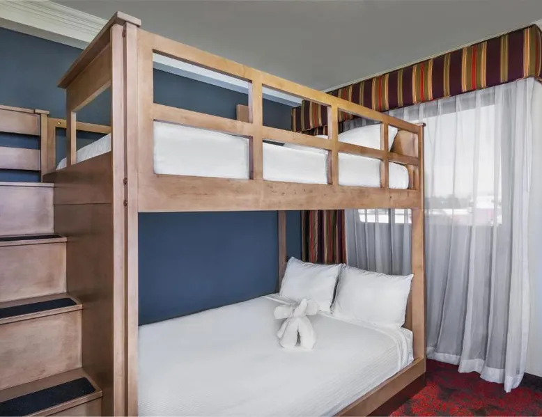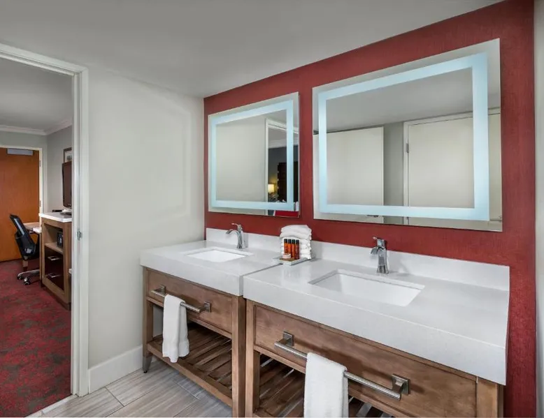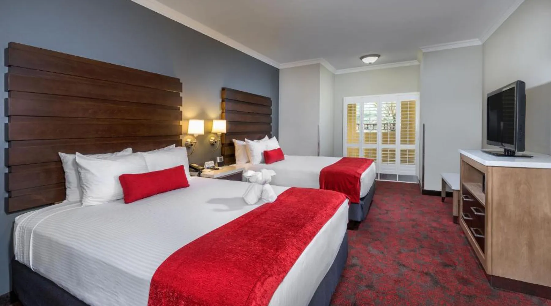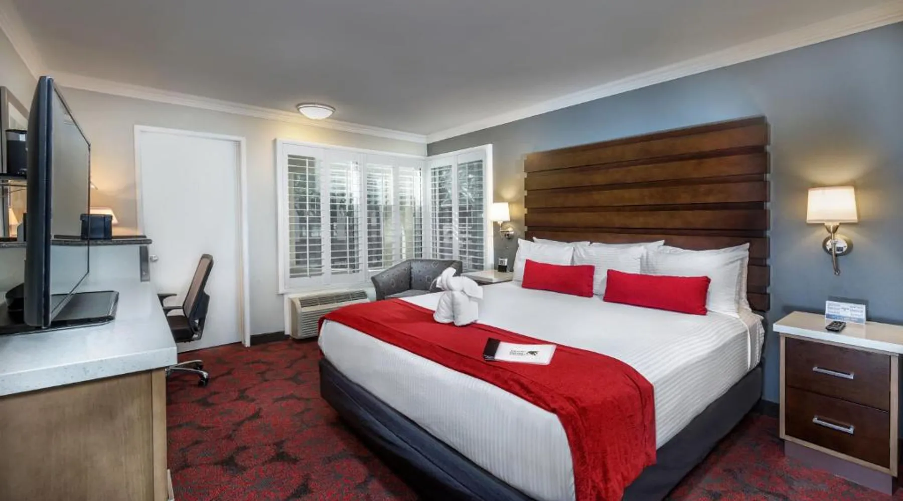 This Anaheim hotel is within a 10-minute walk of Disneyland. It have an outdoor swimming pool. Desert Palms Hotel & Suites Anaheim Resort features a refrigerator and microwave in every guest room. Cable TV and free Wi-Fi are also included in each room. Suites offer separate sitting areas. Guests can use the gym or the 24-hour business center at the Anaheim Desert Palms. Disneyland tickets are available from the front desk. The Anaheim Convention Center is across the street from the Desert Palms in Anaheim. The Honda Center entertainment and event venue is 10 minutes away. Spacious suite offers a kitchenette