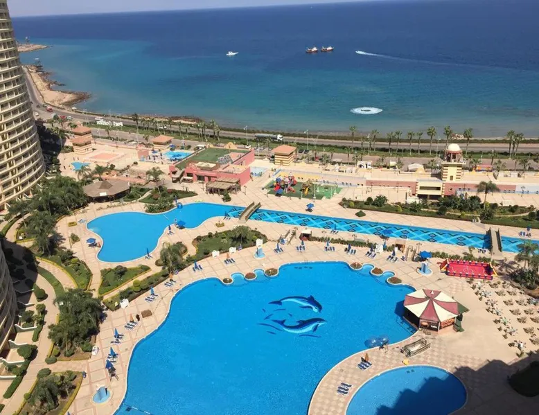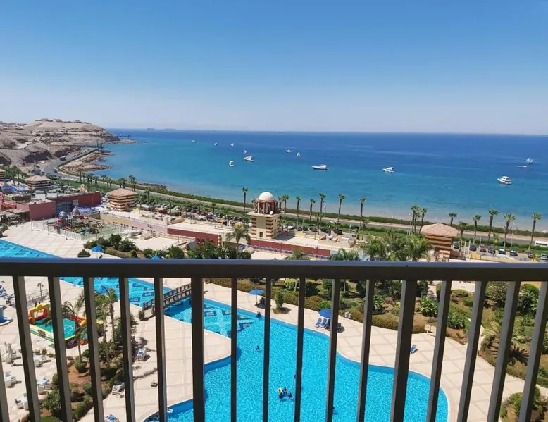 Beachfront and Private Beach: Porto Sokhna chalets in Ain Sokhna offers a private beach area and beachfront access. Guests can relax by the swimming pool with stunning views or enjoy the serene garden and terrace. Comfortable Accommodations: The resort features family rooms with air-conditioning, balconies, and private bathrooms. Each room includes a kitchenette, dining area, and modern amenities such as a TV and iPad. Leisure and Entertainment: Porto Sokhna chalets provides a swimming pool, indoor pool, hot tub, and waterpark. Evening entertainment includes a nightclub and live music. Additional facilities include a lounge, hot tub, and outdoor play areas. Convenient Location: Located 94 mi from Cairo International Airport, Porto Sokhna Beach is a 2-minute walk away. Nearby attractions include Porto Sokhna Beach and the Ain Sokhna Marina. This chalet features a pool with a view and a fireplace. This spacious chalet consists of 1 living room, 2 separate bedrooms and 2 bathrooms with a walk-in shower and a bath. The well-equipped kitchen features a stovetop, a refrigerator, kitchenware and an oven. The air-conditioned chalet provides a flat-screen TV with cable channels, soundproof walls, a mini-bar, a tea and coffee maker as well as garden views. The unit offers 5 beds.