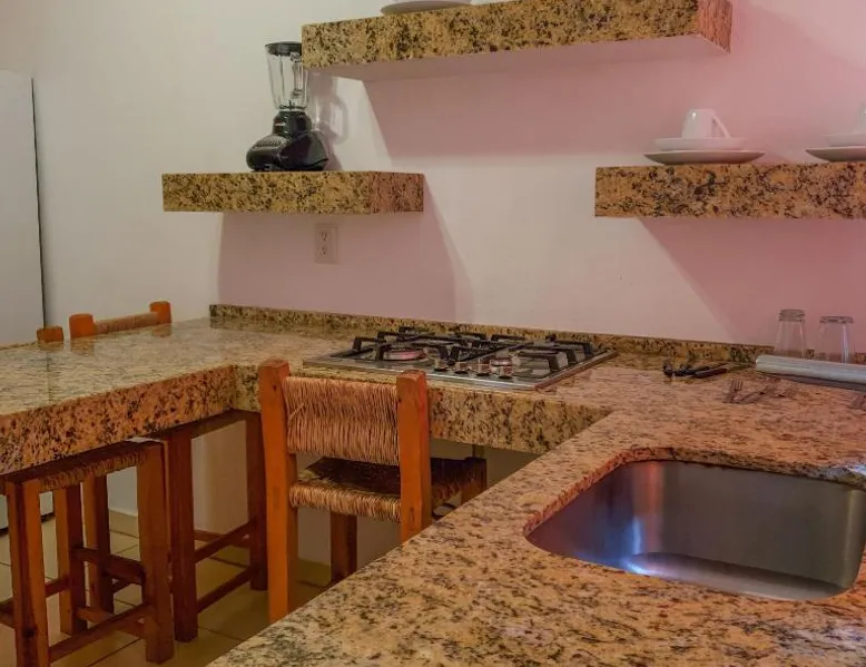 Comfortable Accommodations: Bungalows As D' Oros Deluxe in Rincon de Guayabitos offers family rooms with private bathrooms, air-conditioning, and balconies. Each room includes a kitchenette, dining area, and free WiFi. Leisure Facilities: Guests can relax on the sun terrace, in the garden, or by the year-round outdoor swimming pool. Additional amenities include a kids' pool, picnic area, and free on-site private parking. Convenient Services: The hotel provides private check-in and check-out, a 24-hour front desk, daily housekeeping, and a tour desk. Free WiFi is available in public areas. Prime Location: Located a 3-minute walk from Rincon de Guayabitos, the property is 38 mi from Lic. Gustavo Diaz Ordaz Airport. Mountain views enhance the scenic surroundings. This bungalow includes 1 living room, 1 separate bedroom and 1 bathroom with a shower and free toiletries. The bungalow's kitchen, which has a refrigerator and kitchenware, is available for cooking and storing food. Boasting a balcony with mountain views, this bungalow also offers air conditioning and a flat-screen TV with cable channels. The unit has 3 beds.