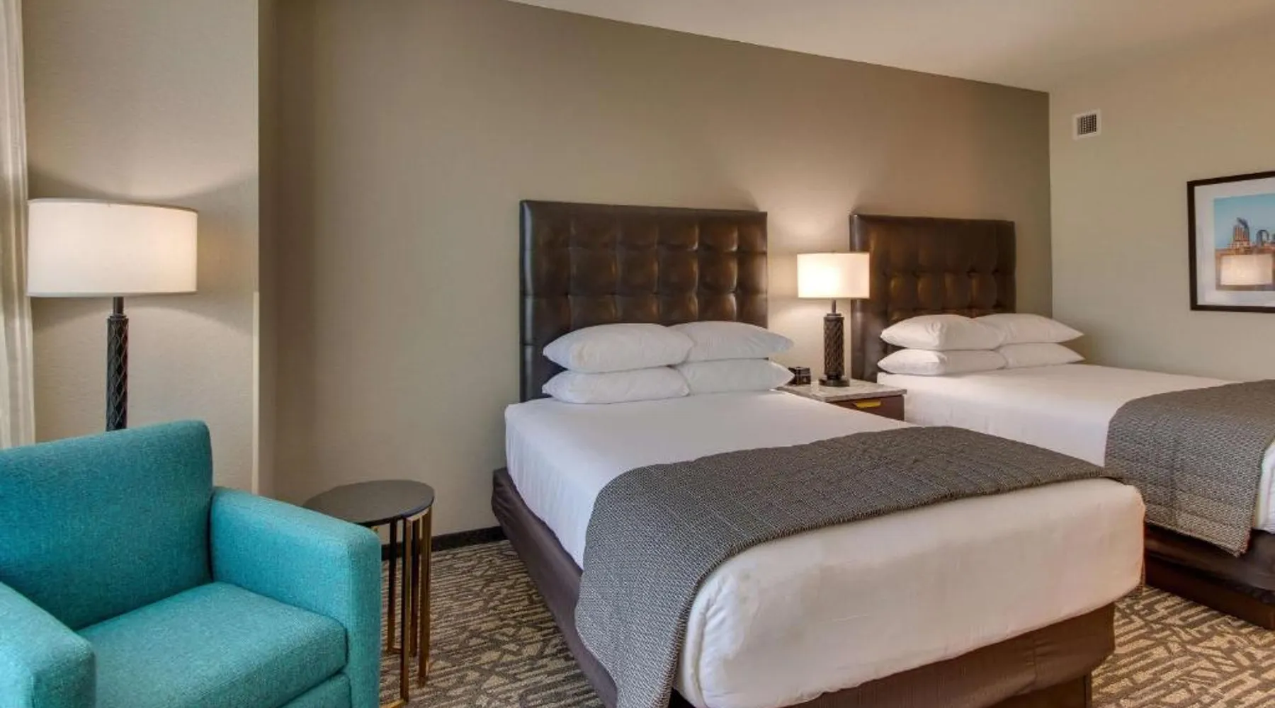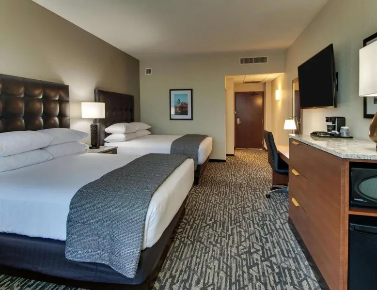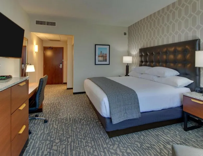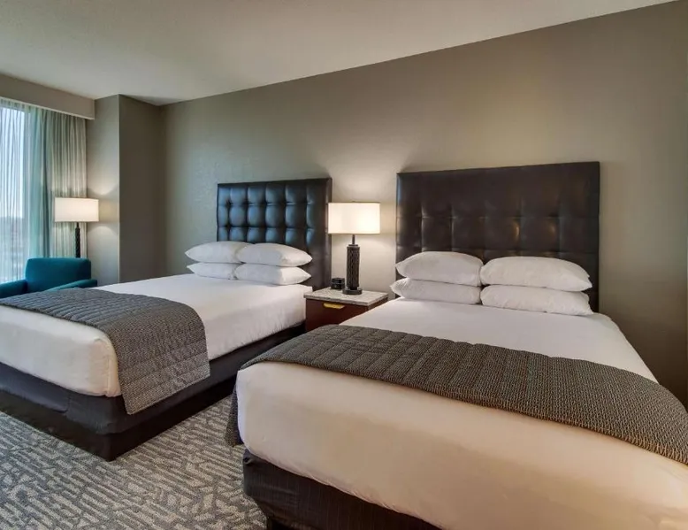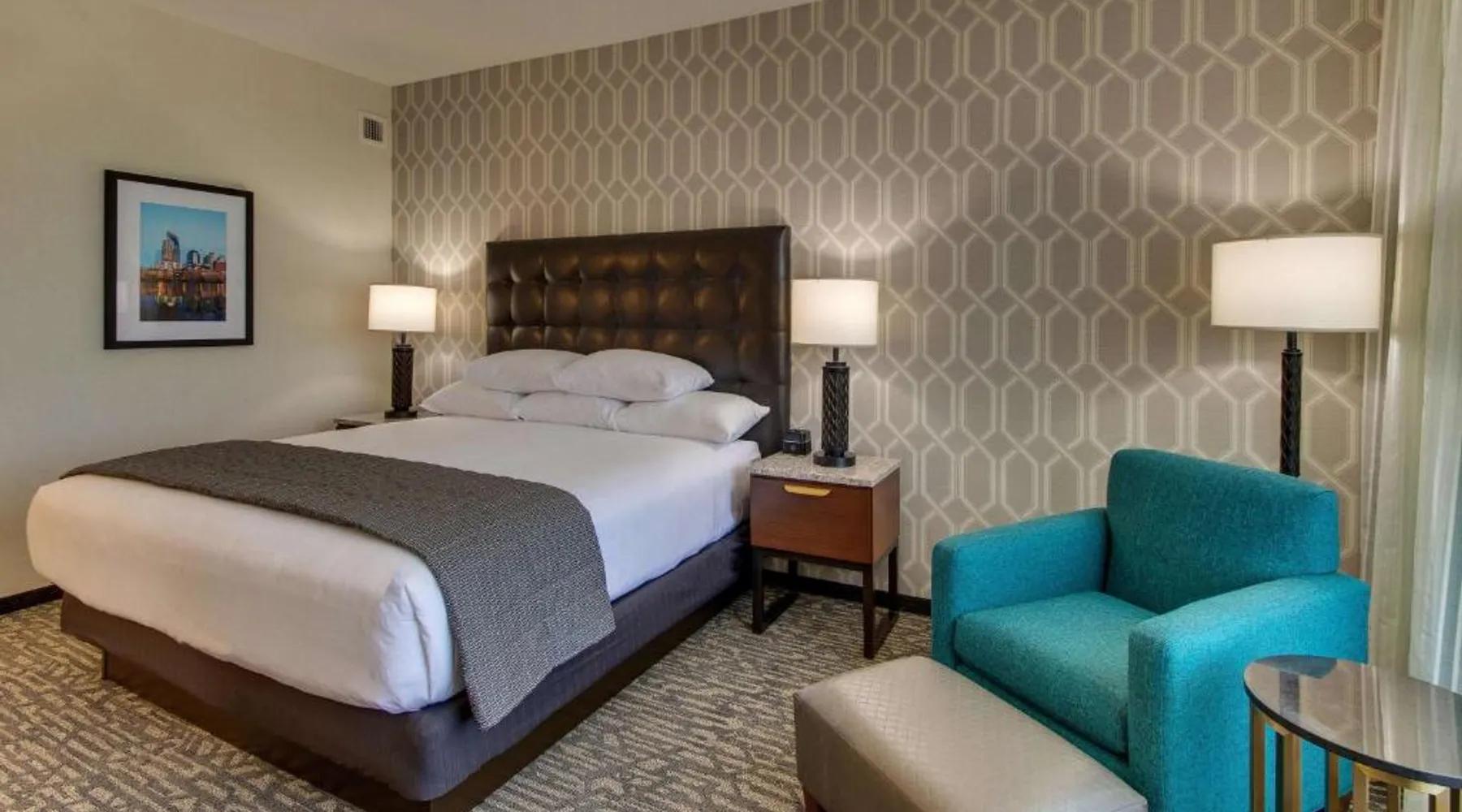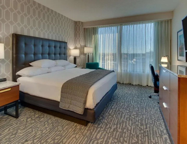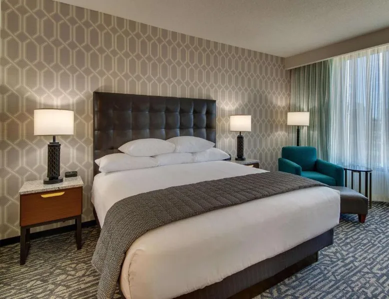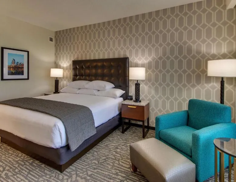 Comfortable Accommodations: Drury Plaza Hotel Nashville Downtown in Nashville offers family rooms with private bathrooms, air-conditioning, and river views. Each room includes a work desk, free toiletries, and a coffee machine. Exceptional Facilities: Guests enjoy a fitness center, terrace, outdoor swimming pool, and free WiFi. Additional amenities include a hot tub, fitness room, and 24-hour front desk. Dining Experience: The on-site restaurant serves dinner with American, buffet, vegetarian, vegan, and gluten-free options. Breakfast is available as a buffet with various dietary choices. Prime Location: Located 5 mi from Nashville International Airport, the hotel is near Bridgestone Arena (8-minute walk), Johnny Cash Museum (1969 feet), and Country Music Hall of Fame (4-minute walk). The spacious double room features air conditioning and a coffee machine, as well as a private bathroom boasting a shower. The unit has 1 bed.