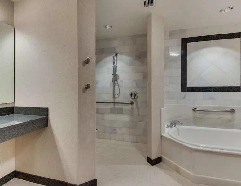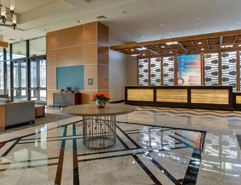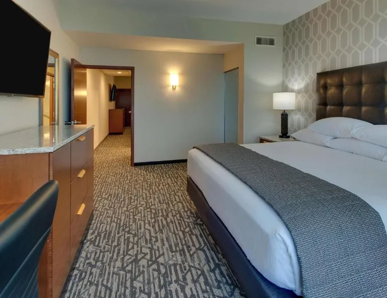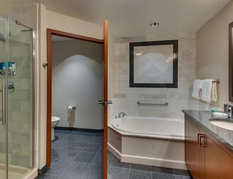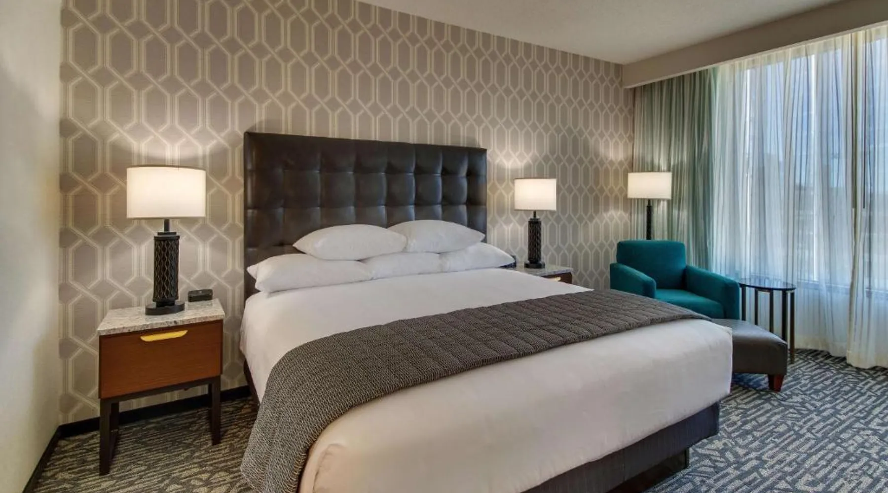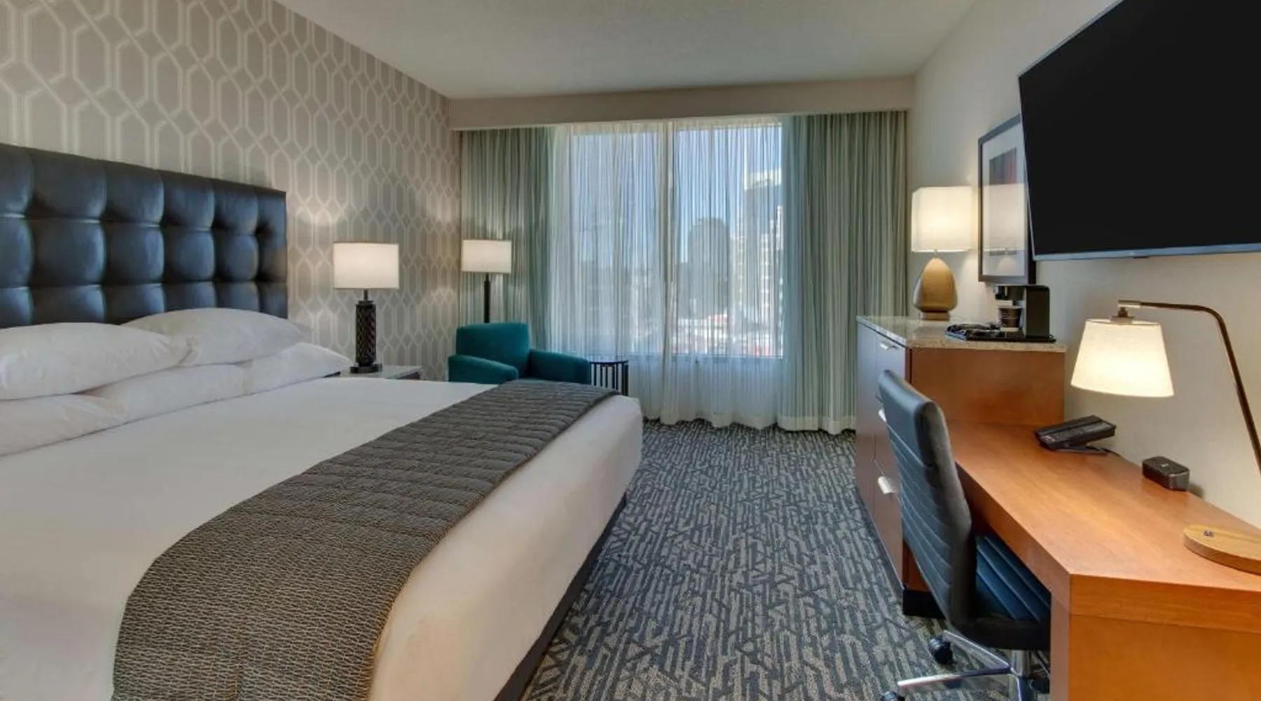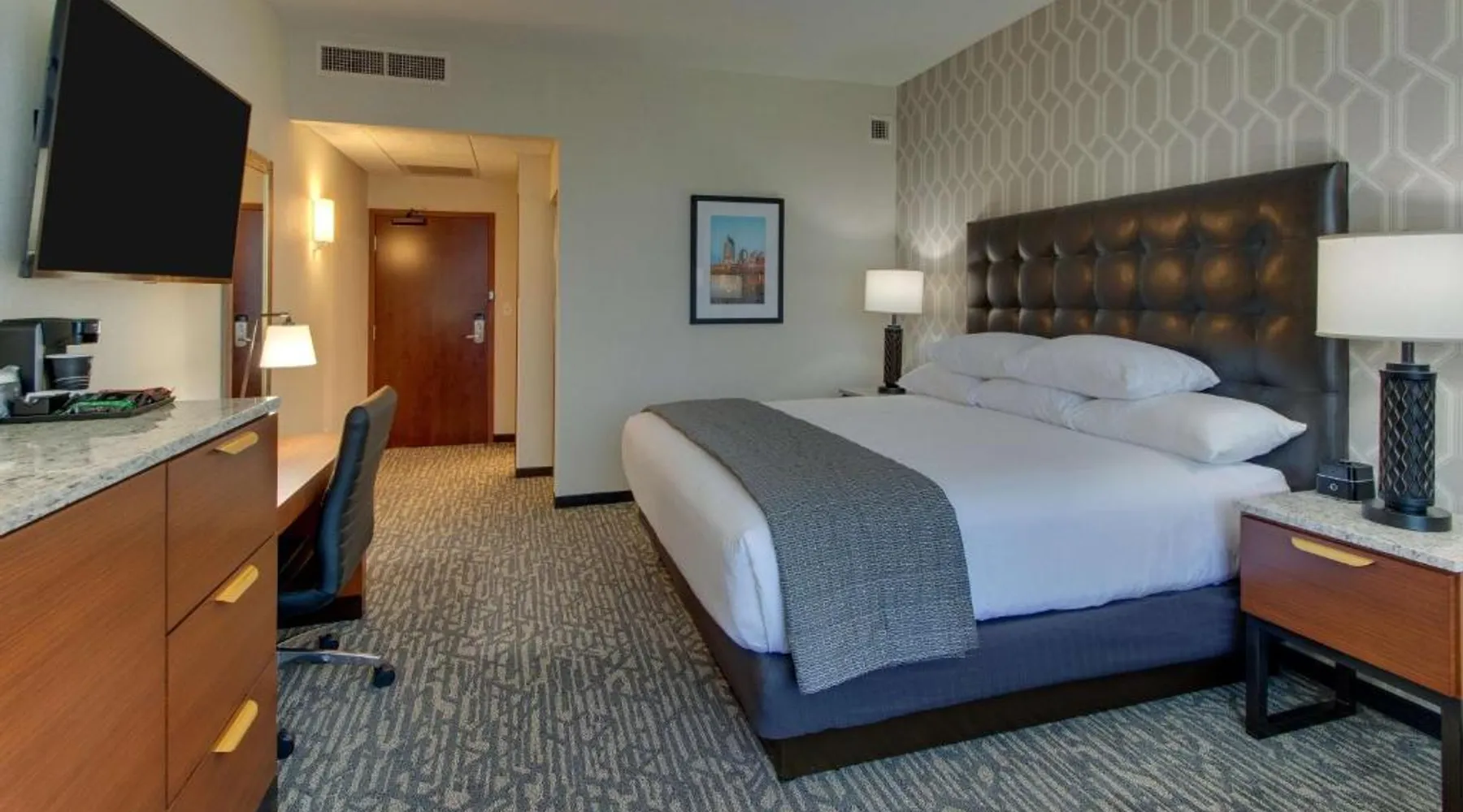 Comfortable Accommodations: Drury Plaza Hotel Nashville Downtown in Nashville offers family rooms with private bathrooms, air-conditioning, and river views. Each room includes a work desk, free toiletries, and a coffee machine. Exceptional Facilities: Guests enjoy a fitness center, terrace, outdoor swimming pool, and free WiFi. Additional amenities include a hot tub, fitness room, and 24-hour front desk. Dining Experience: The on-site restaurant serves dinner with American, buffet, vegetarian, vegan, and gluten-free options. Breakfast is available as a buffet with various dietary choices. Prime Location: Located 5 mi from Nashville International Airport, the hotel is near Bridgestone Arena (8-minute walk), Johnny Cash Museum (1969 feet), and Country Music Hall of Fame (4-minute walk). The spacious double room features air conditioning and a coffee machine, as well as a private bathroom boasting a shower. The unit has 1 bed.