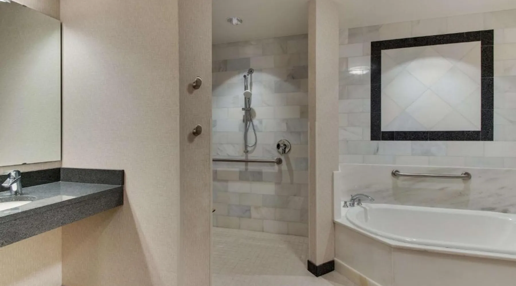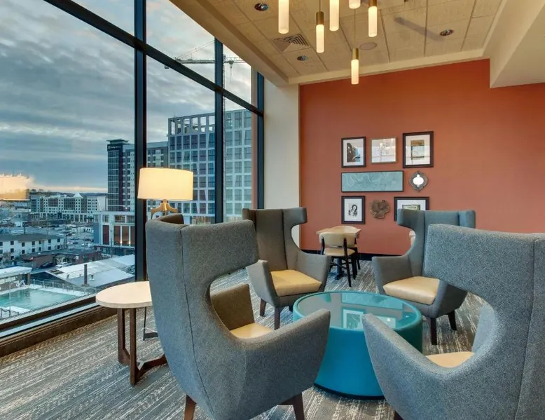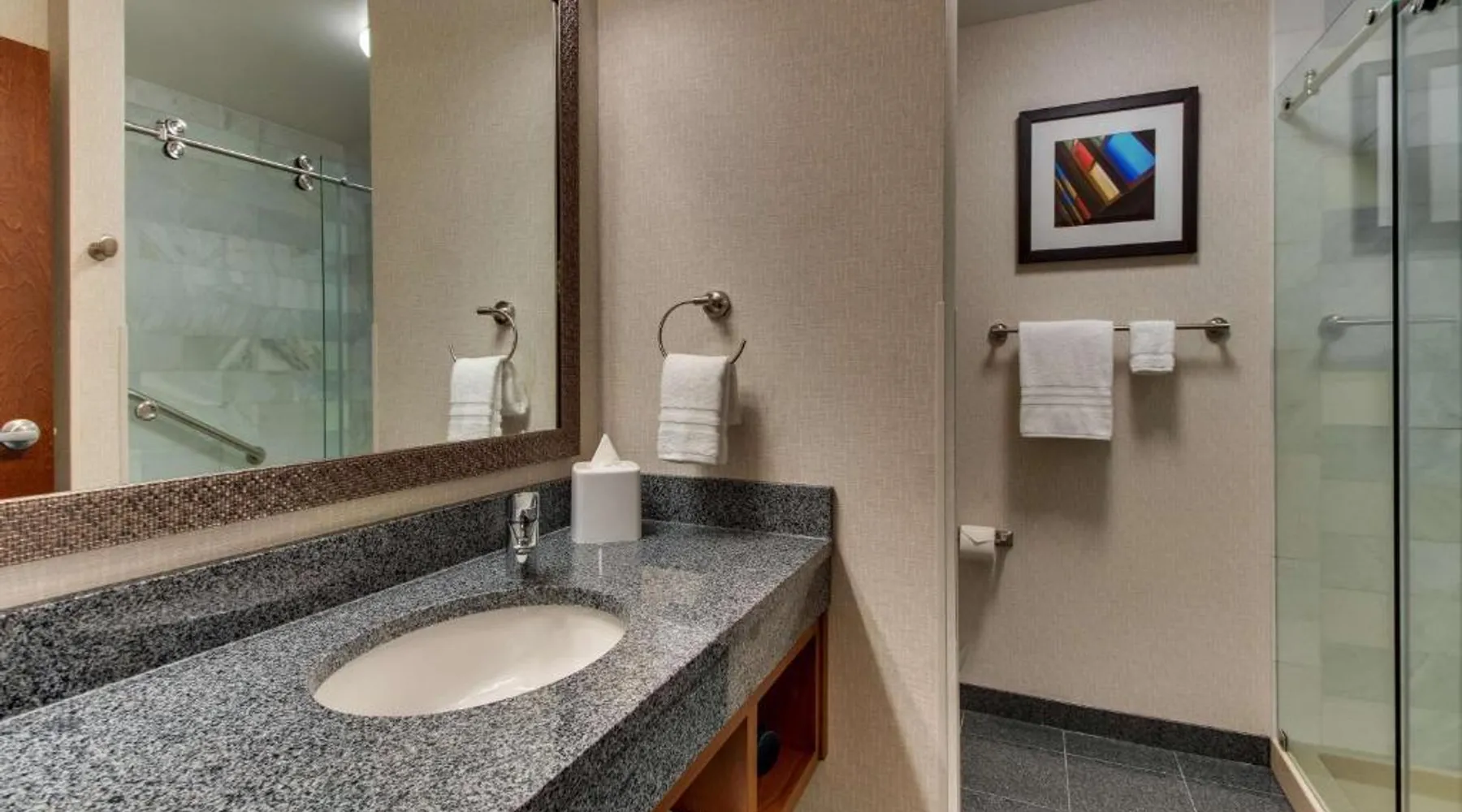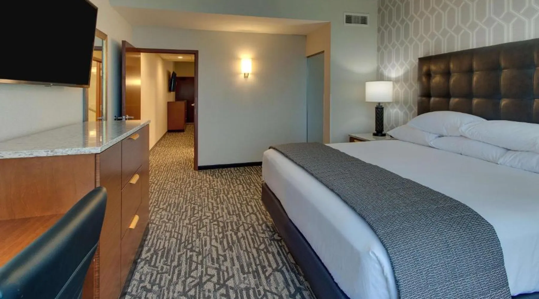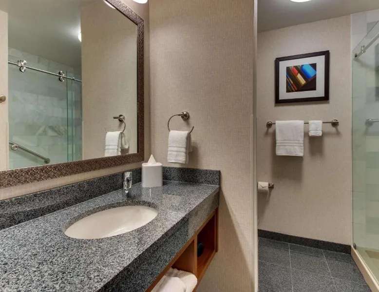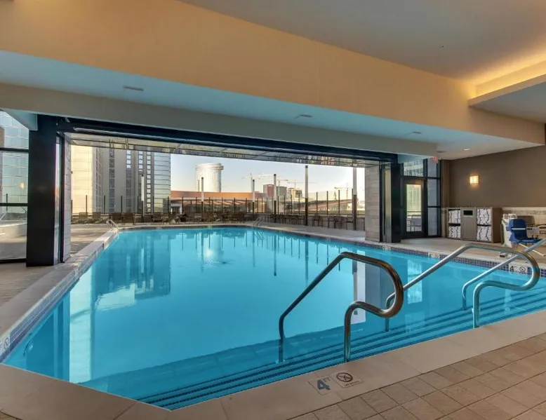 Comfortable Accommodations: Drury Plaza Hotel Nashville Downtown in Nashville offers family rooms with private bathrooms, air-conditioning, and river views. Each room includes a work desk, free toiletries, and a coffee machine. Exceptional Facilities: Guests enjoy a fitness center, terrace, outdoor swimming pool, and free WiFi. Additional amenities include a hot tub, fitness room, and 24-hour front desk. Dining Experience: The on-site restaurant serves dinner with American, buffet, vegetarian, vegan, and gluten-free options. Breakfast is available as a buffet with various dietary choices. Prime Location: Located 5 mi from Nashville International Airport, the hotel is near Bridgestone Arena (8-minute walk), Johnny Cash Museum (1969 feet), and Country Music Hall of Fame (4-minute walk). The spacious double room features air conditioning and a coffee machine, as well as a private bathroom boasting a shower. The unit has 1 bed.