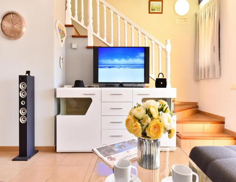 Beachfront Location: Villa Feliz 44 in Meloneras offers direct beachfront access with stunning sea views. Guests can relax on the sun terrace or take a dip in the swimming pool with a view. Spa Facilities: The holiday home features spa facilities, including an open-air bath and a hot tub. Massage services are available for added relaxation. Comfortable Accommodations: The property features two bedrooms and two bathrooms, a living room, and a fully equipped kitchen. Air-conditioning, a balcony, and a terrace ensure a comfortable stay. Dining Experience: The on-site restaurant serves international cuisine with vegetarian, vegan, gluten-free, and dairy-free options. Evening entertainment and a bar provide additional entertainment. Nearby Attractions: Meloneras Beach is a 4-minute walk away, while Gran Canaria Airport is 21 mi distant. Other attractions include Yumbo Center and Aqualand Maspalomas, each 3 mi from the property. This holiday home's standout feature is the hot tub. Featuring a private entrance, this air-conditioned holiday home is consisted of of 1 living room, 2 separate bedrooms and 2 bathrooms with a walk-in shower and a bidet. Guests will find a stovetop, a refrigerator, a dishwasher and kitchenware in the fully equipped kitchen. The holiday home also has a barbecue. Boasting a terrace with sea views, this holiday home also offers a washing machine and a flat-screen TV with satellite channels. The unit offers 3 beds.