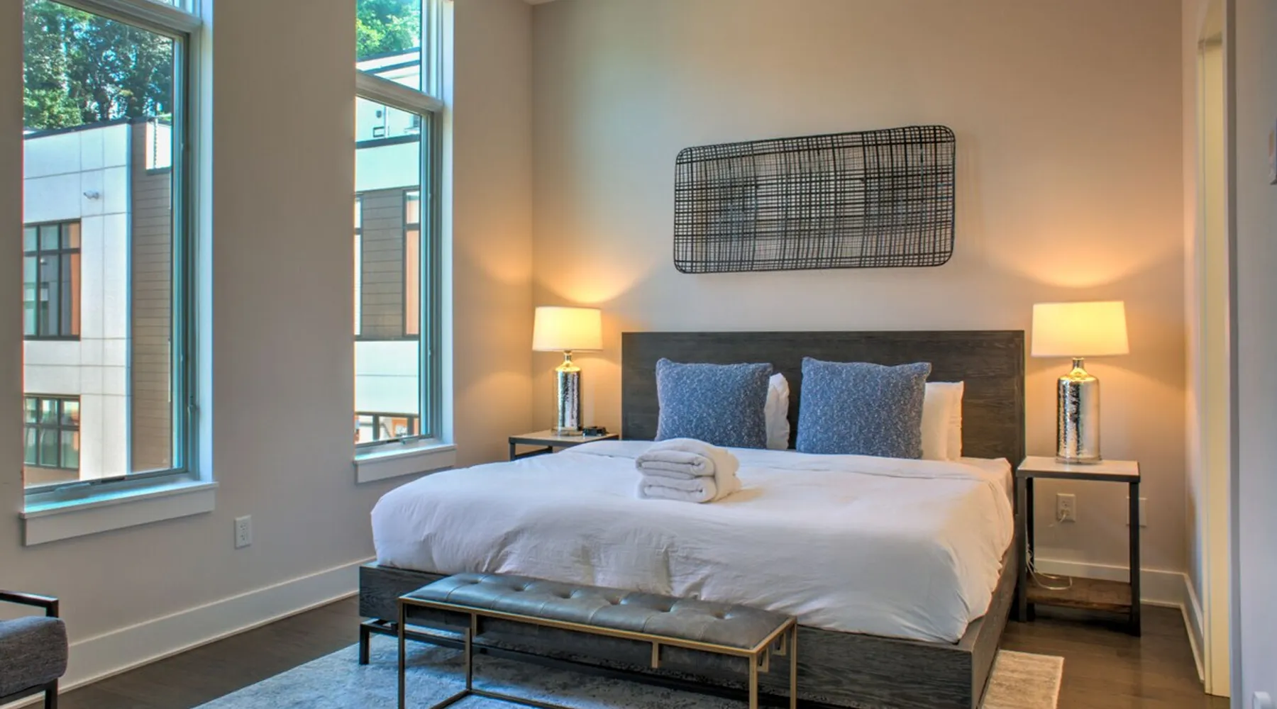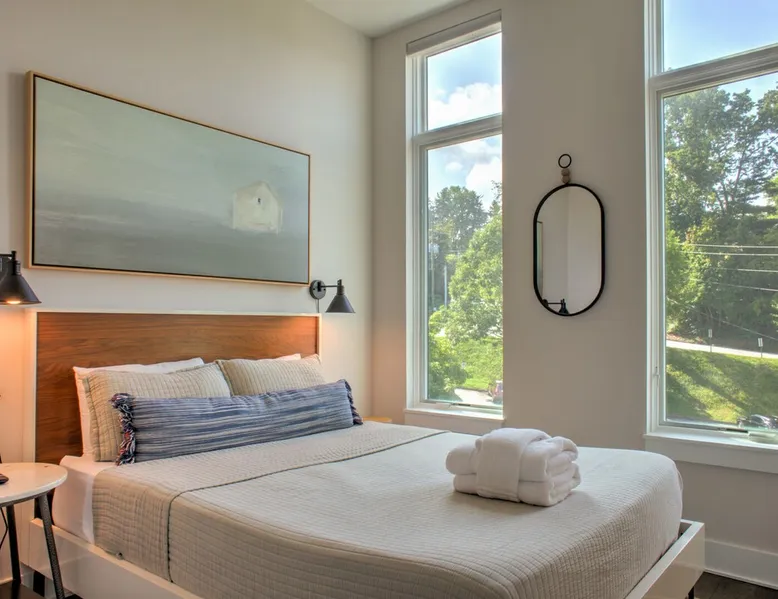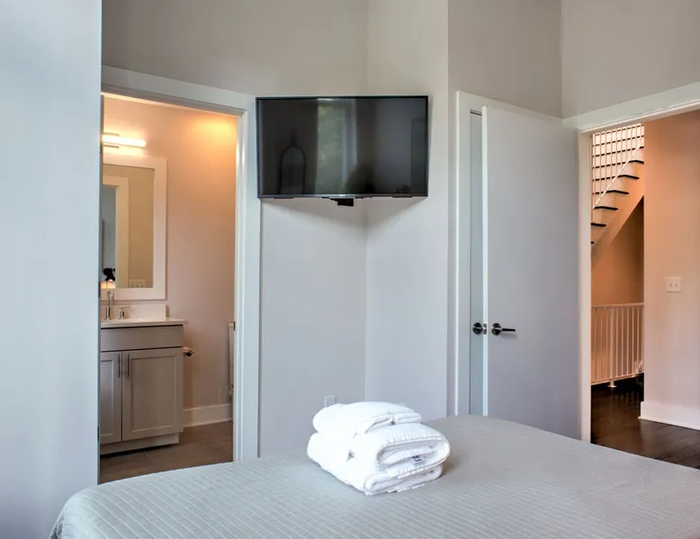 Grand Slam! True to its name, Grand Slam hits it out of the park, and is actually located just outside of the Asheville Tourists ballpark. As such, it is right in the heart of it all in downtown Asheville, making it possible to literally walk to everything and anything downtown! Come create special Asheville memories in the heart of it all! The space Location: Private, luxury condominium located in the new, upscale Bauhaus residences in downtown Asheville. You are about 15 minutes to Asheville Regional airport, and only 5 minutes to the gates of Biltmore Estate. You are also app. 15 minutes from the Blue Ridge Parkway, and easy access to everything in the WNC area. (1-car (compact) garage) Accommodations: 3 bedroom, 3 full baths, Powder Rm Bath Occupancy Summary / Sleeps in beds: 6 Max. Occupancy: 9 (PLEASE NOTE: We provide linens for all beds; other occupancy will require guests providing their own linens.) Description: Come truly experience the heart of Downtown Asheville! Enjoy the comforts of home in a newly built, luxurious 3-bedroom loft condominium in the heart of downtown Asheville. Experience the charm of a recently constructed contemporary building with your own private rooftop terrace, just steps from the vibrant cosmopolitan center of Asheville. Surround yourself with the warmth of hardwood floors, high-end finishes, granite countertops, an abundance of natural light, coupled with eclectic and handsome decor. All modern amenities included. This is a very unique and special property in downtown Asheville. Luxury abounds and awaits your special stay! Once you experience it, you will want to return again and again! Abundant restaurants, nightlife, art galleries, shops, museums and theaters within immediate walking distance. Many outdoor activities and parks nearby. Less than 10 minute drive to The Biltmore House. Specialty chocolate and wine shops around the corner. Restaurant delivery and catering available. And of course during baseball season you & your group can walk next door to the Asheville Tourists stadium and enjoy some minor league baseball with our hometown Tourists baseball team. We hope to see you soon! We promise you a very clean and well-maintained accommodation that is thoughtfully furnished with your every need in mind! We happily invite you to experience the luxurious and delightful Grand Slam for yourself! You deserve to vacation where you can relax, unwind, and absolutely be spoiled! You are just minutes from America’s favorite scenic byway, The Blue Ridge Parkway; along with DuPont Forest, Pisgah national Forest, Sliding Rock, motorcycle touring, biking, hiking, white water rafting, rock climbing, kayaking, canoeing, zip lining, Segway tour…just about any outdoor activity! Or, take a quick ride to downtown Brevard, or into downtown Asheville to enjoy the first-rate restaurants, shopping, galleries, spas, and entertainment. Exclusive Special: When you book Grand Slam you will receive a special code for discounted tickets to the Biltmore Estate! Contact us for more info. Bedroom/Bath Layout: 3 bedrooms, 3 fully ensuite baths, Powder Room Bath Bedroom #1 – 2nd Level Guest Suite - King Bed w/private ensuite Full Bath (#1) Bedroom #2 – 2nd Level Guest Suite - Queen Bed w/private ensuite Full Bath (#2) Bedroom #3 – 1st Floor Guest Suite - Twin Bunk Bed w/private ensuite Full Bath (#3) Main Floor Powder Room - Half Bath (#3) Queen Sleeper Sofa Occupancy Summary / Sleeps in beds: 6 Max. Occupancy: 9 (PLEASE NOTE: We provide linens for all beds; other occupancy will require guests providing their own linens.) We look forward to possibly booking your stay, should these accommodations work for you. We can reserve your stay with a credit card and send out a rental agreement to firm everything up when you are ready...but don't delay too long. We openly share our Cleaning Fees in a manner of full disclosure, as we think this is the most honest and forthright approach with respect to our guests. Our Cleaning Fees are backed by our Clean Guarantee, which reflects the highest level of standards, pristine environments for our guests, and a level of clean that surpasses any other vacation homes; we literally guarantee it! Home Truths: - A large renovation project is scheduled to take place from September 2024 through Spring of 2026 on McCormick field which is the the Asheville Tourists home field. There may be construction noise that is out of our control - Parking: 1-car (compact), private garage, and street parking available for guests. Pets: Many of our guests have allergies so we have maintained a pet-free environment so they can enjoy their vacation without the potential of an allergic reaction. If you have a pet we can recommend some alternatives nearby. Please inquire for details regarding payment, the cancellation policy, military discounts, and trip insurance. Note: Reservations over 30 days are subject for review prior to acceptance. A separate rental agreement will be required for 90+ day stays. Last Minute Bookings: Reservations made within 7 days of check-in require additional documentation before confirmation.