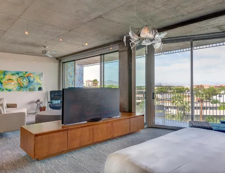 Featuring a full service spa and health club, this hotel is a 5-minute drive from Old Town Scottsdale. Guests can relax in a year-round outdoor pool. A restaurant and a poolside bar are available. All air-conditioned rooms include a work desk, a flat-screen TV and a small refrigerator at Hotel Valley Ho Scottsdale. A private bathroom with a hairdryer is also provided. Guests can take advantage of a variety of spa treatments at Scottsdale Hotel Valley Ho, including massages, manicures and pedicures. A fitness center is also on site. ZuZu Lounge serves American cuisine for breakfast, lunch and dinner daily. Cocktails and lunch are served poolside each day at OH Pool Bar. Scottsdale Museum of Contemporary Art is a 15-minute walk from the hotel. Scottsdale Shopping Center is a 5-minute drive from Hotel Valley Ho Scottsdale. This spacious suite comes with 1 living room, 1 separate bedroom and 1 bathroom with a bath and free toiletries. The suite's kitchen, which features a tea and coffee maker, is available for cooking and storing food. This suite has air conditioning, a mini-bar, a TV with cable channels and a balcony. The unit has 1 bed.