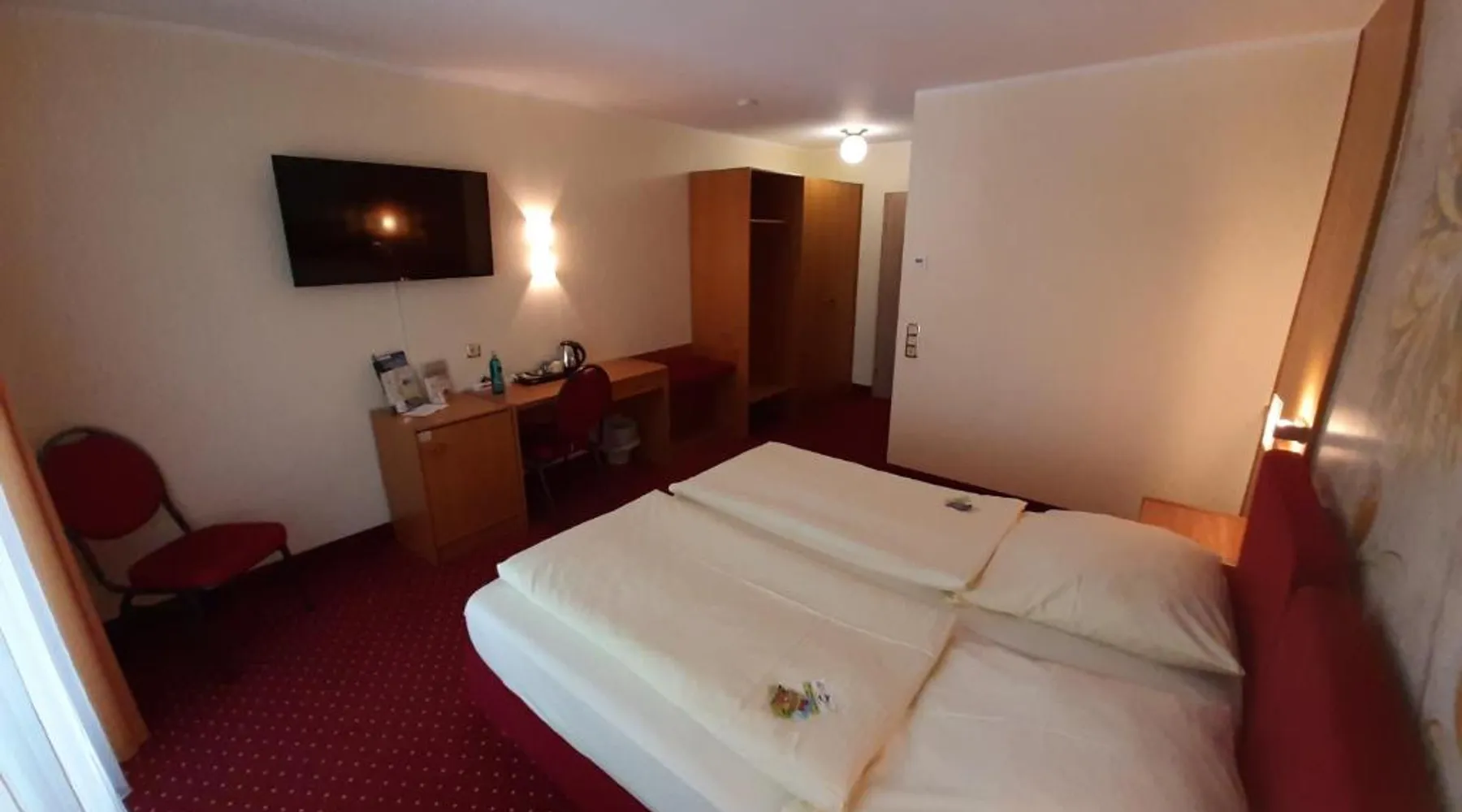 This family-run hotel offers a skittle alley and a traditional restaurant with beer garden. It is quietly located between Limburg and Diez, on the eastern edge of the Nassau Nature Reserve. A German-style breakfast buffet is served at the Hotel & Restaurant Wilhelm von Nassau. In the evenings, the country-style Zum Hecker Restaurant offers hearty, local food. In summer months, drinks and meals are served in the Hotel's beer garden. The bright rooms at the Hotel & Restaurant Wilhelm von Nassau include flat-screen TV with cable channels, free WiFi and a mini-bar. Furthermore, all rooms offer good wheelchair access and are are easy to reach by elevator. Guests are welcome to use the skittle alley at the Hotel & Restaurant Wilhelm von Nassau. The A3 motorway is just 3.1 mi away and provides connections to Koblenz in 35 minutes and Frankfurt in 45 minutes. Free parking is provided. Featuring free toiletries, this double room includes a private bathroom with a shower and a hairdryer. The double room features a flat-screen TV with cable channels, soundproof walls, a mini-bar, a wardrobe as well as city views. The unit has 2 beds.