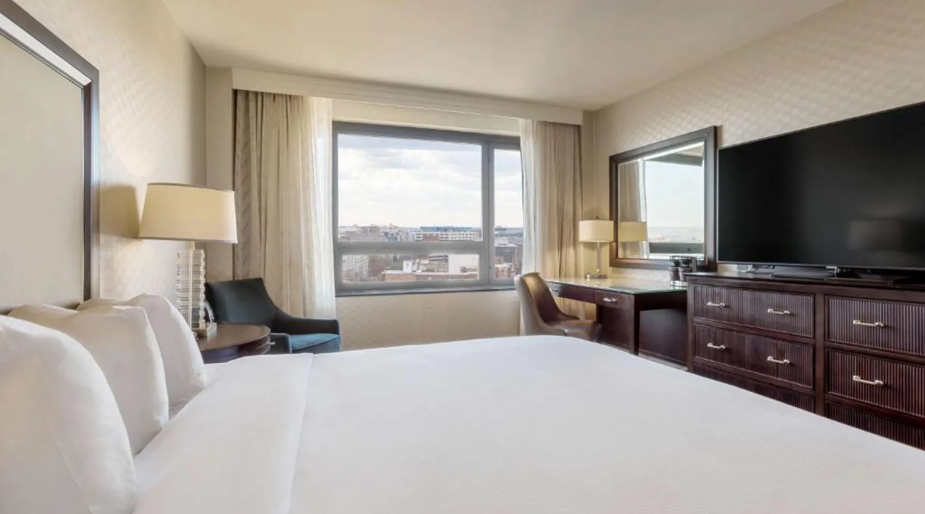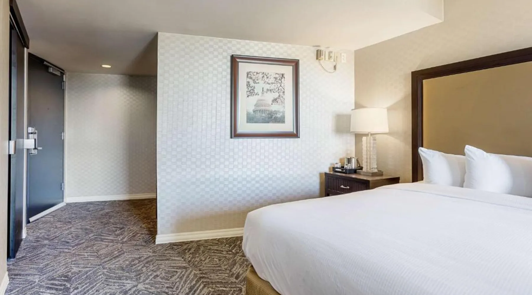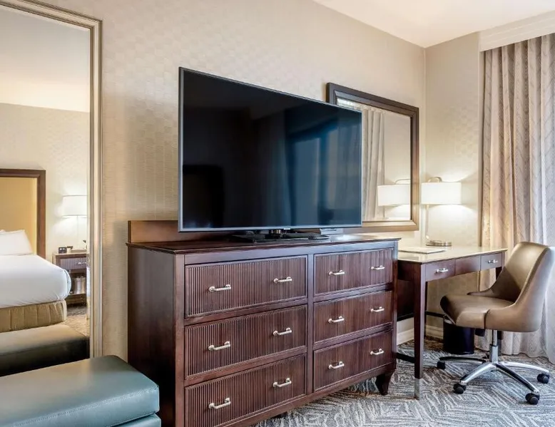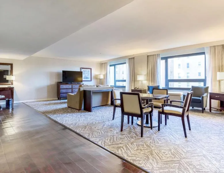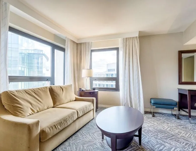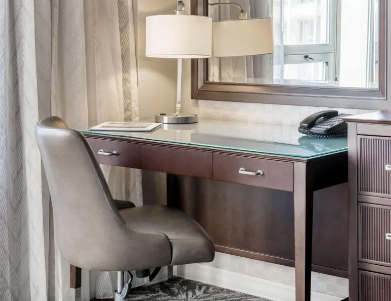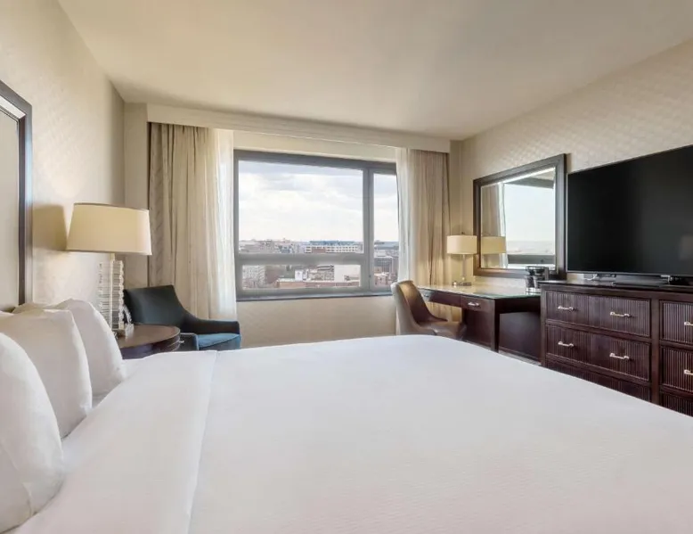 Featuring an outdoor courtyard and views of the capital skyline, this Washington, D.C. hotel is just 1.6 mi from the White House. A full restaurant and bar are available. The Washington Hilton provides rooms with a 32-inch flat-screen cable TV, a coffee maker, work desk and ironing facilities. The District Line Restaurant at the Hilton serves handmade cocktails and local American specialties. A buffet breakfast is served at the restaurant daily. A fitness center, outdoor seasonal pool, on-site rental car service, and gift shop are also available at the Hilton Washington, D.C. The Dupont Circle Metro station, offering easy access to greater Washington D.C., is 2428 feet from The Washington Hilton. The National Mall is 2.2 mi away. Shopping and dining in the Penn Quarter section of DC is just 1.7 mi from Washington Hilton. This hearing accessible room features disability tub access and one king bed.