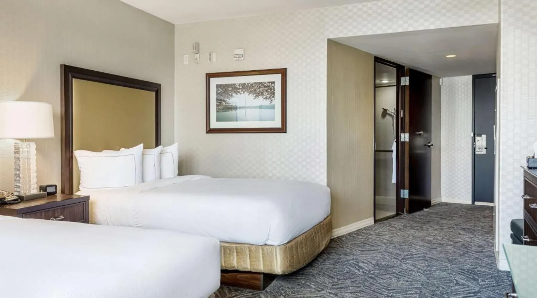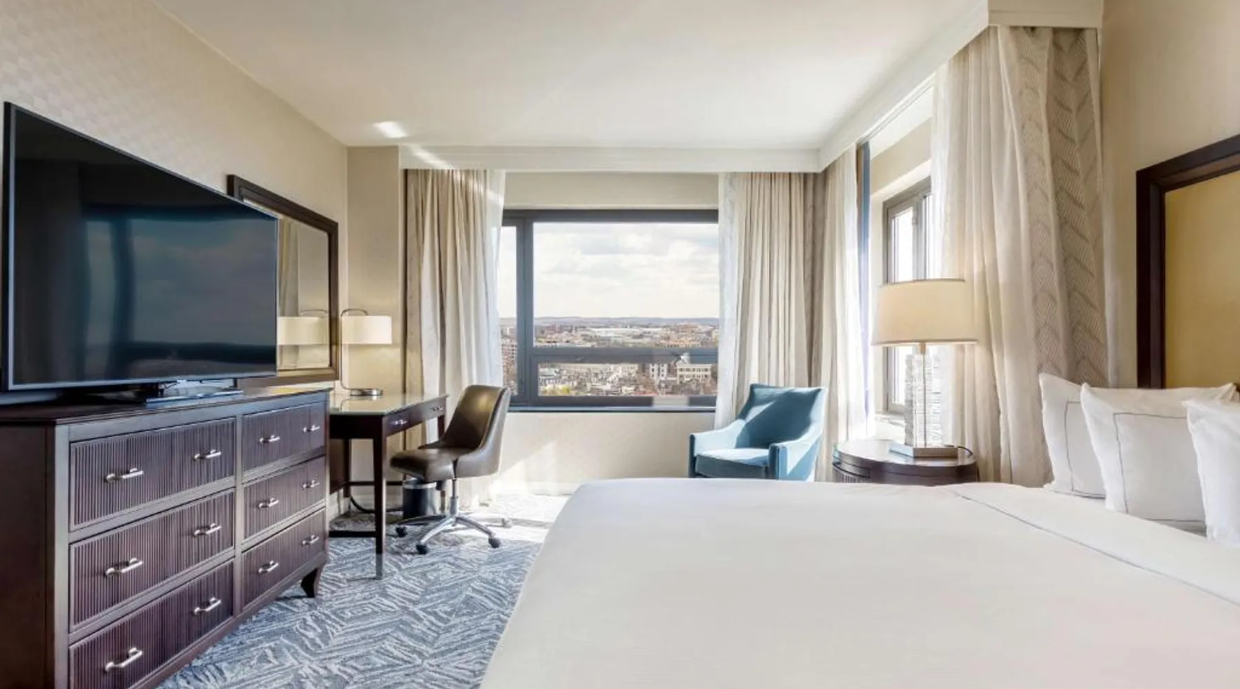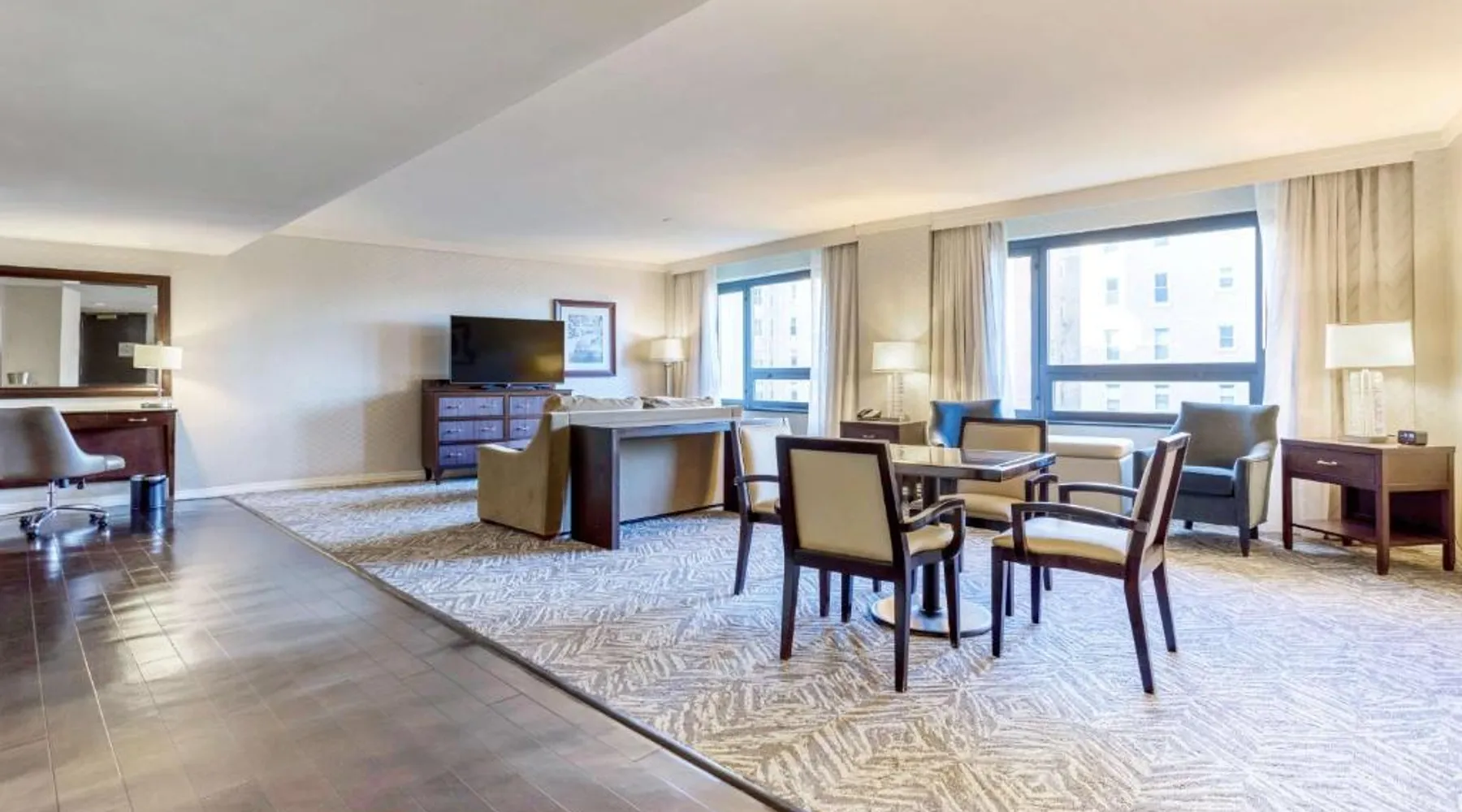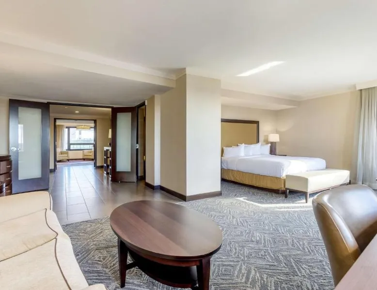 Featuring an outdoor courtyard and views of the capital skyline, this Washington, D.C. hotel is just 1.6 mi from the White House. A full restaurant and bar are available. The Washington Hilton provides rooms with a 32-inch flat-screen cable TV, a coffee maker, work desk and ironing facilities. The District Line Restaurant at the Hilton serves handmade cocktails and local American specialties. A buffet breakfast is served at the restaurant daily. A fitness center, outdoor seasonal pool, on-site rental car service, and gift shop are also available at the Hilton Washington, D.C. The Dupont Circle Metro station, offering easy access to greater Washington D.C., is 2428 feet from The Washington Hilton. The National Mall is 2.2 mi away. Shopping and dining in the Penn Quarter section of DC is just 1.7 mi from Washington Hilton. This hearing accessible room features disability tub access and one king bed.
