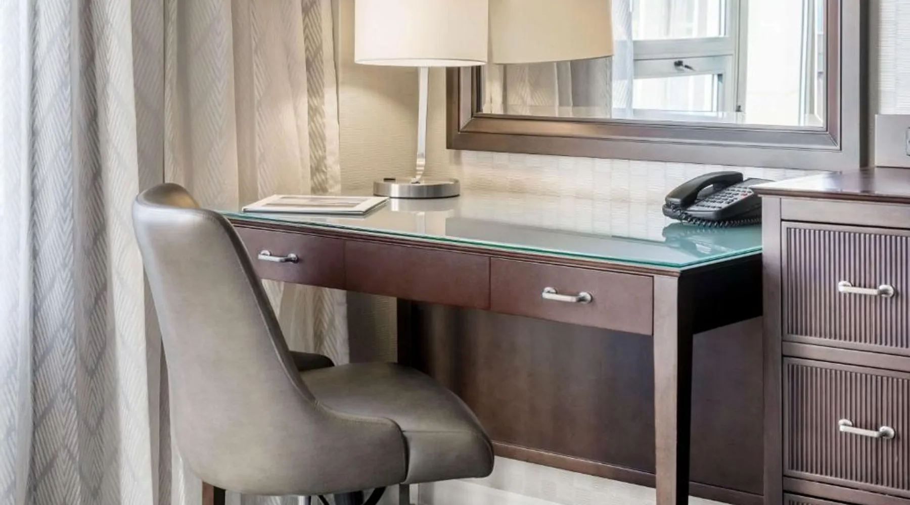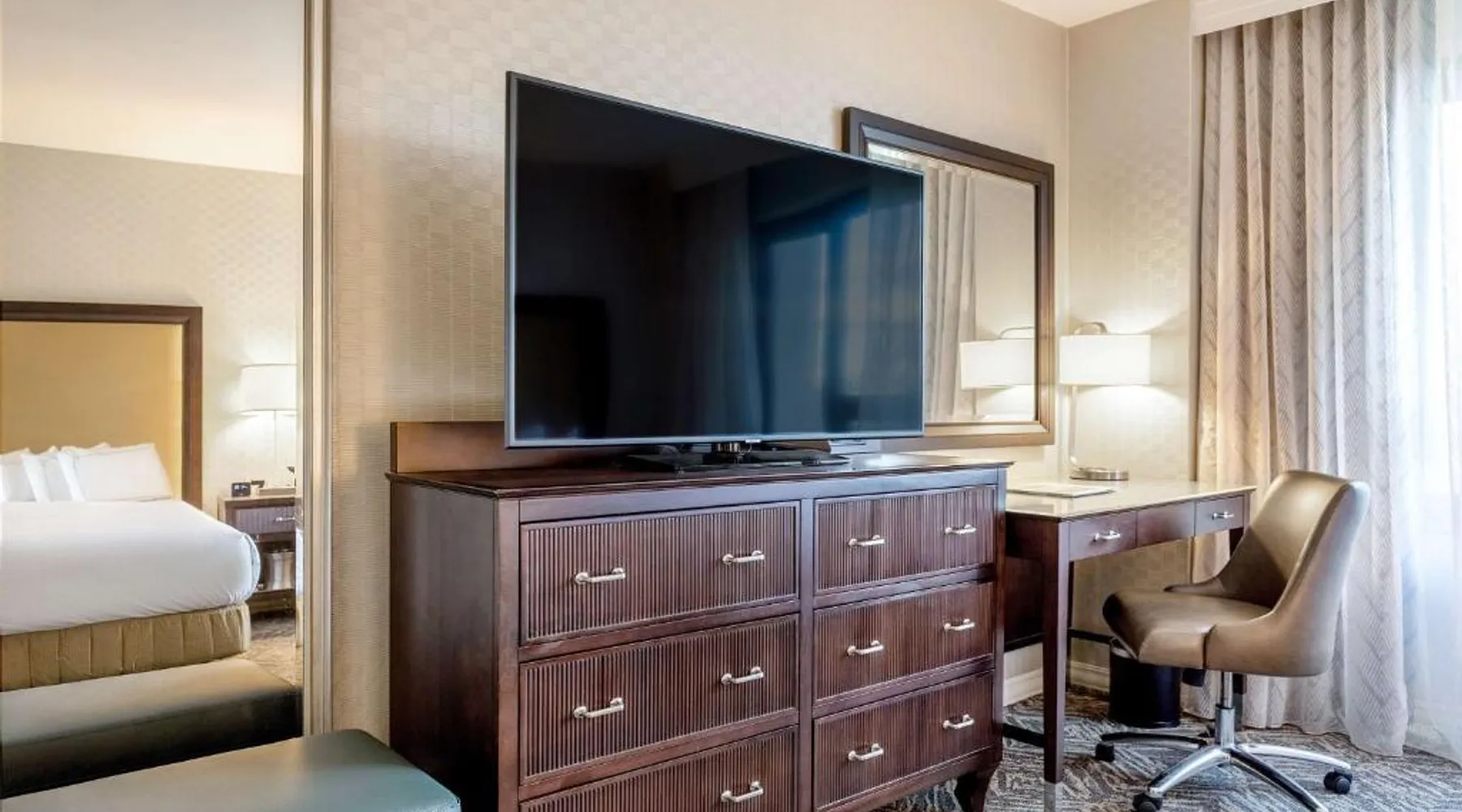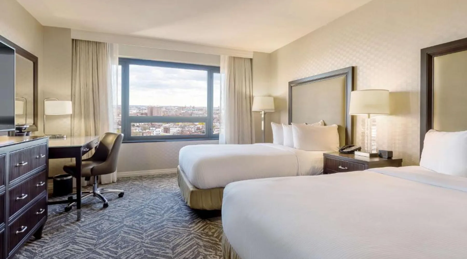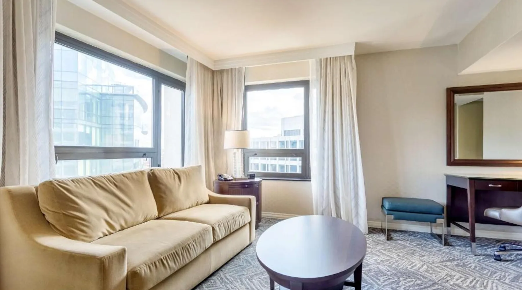 Featuring an outdoor courtyard and views of the capital skyline, this Washington, D.C. hotel is just 1.6 mi from the White House. A full restaurant and bar are available. The Washington Hilton provides rooms with a 32-inch flat-screen cable TV, a coffee maker, work desk and ironing facilities. The District Line Restaurant at the Hilton serves handmade cocktails and local American specialties. A buffet breakfast is served at the restaurant daily. A fitness center, outdoor seasonal pool, on-site rental car service, and gift shop are also available at the Hilton Washington, D.C. The Dupont Circle Metro station, offering easy access to greater Washington D.C., is 2428 feet from The Washington Hilton. The National Mall is 2.2 mi away. Shopping and dining in the Penn Quarter section of DC is just 1.7 mi from Washington Hilton. This hearing accessible room features disability tub access and one king bed.