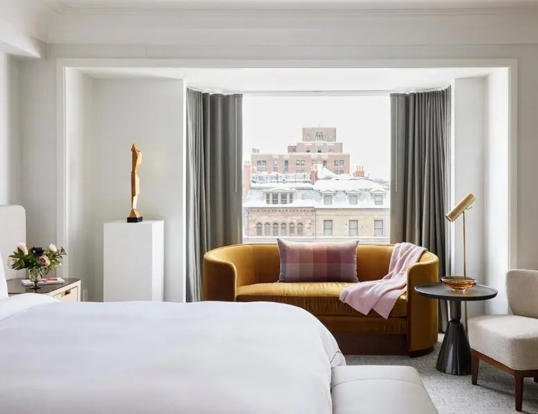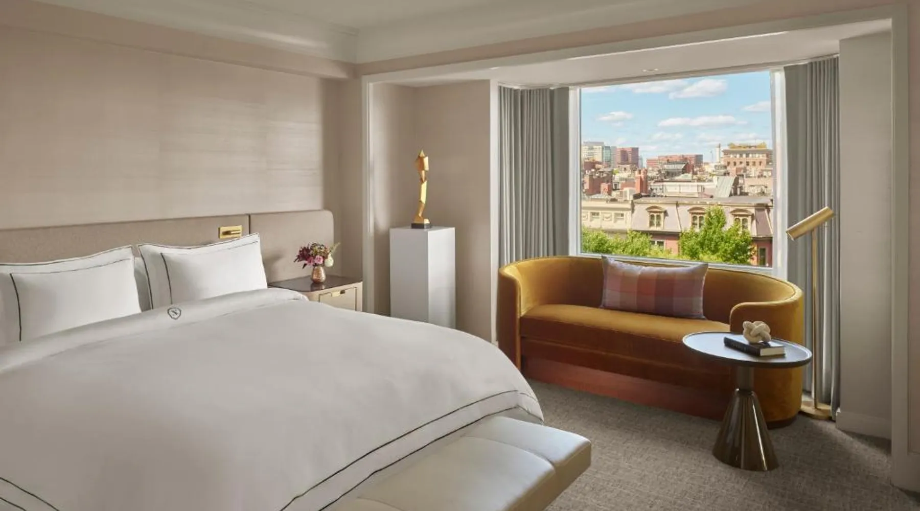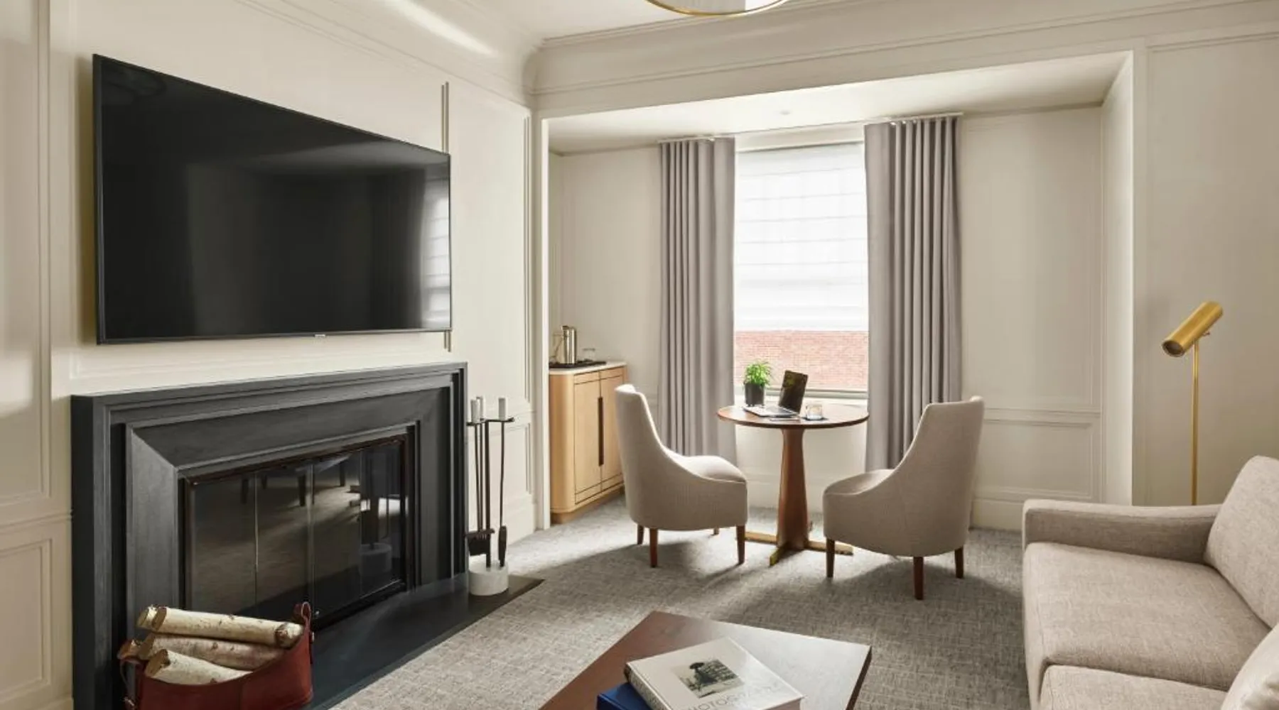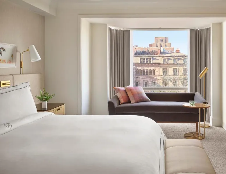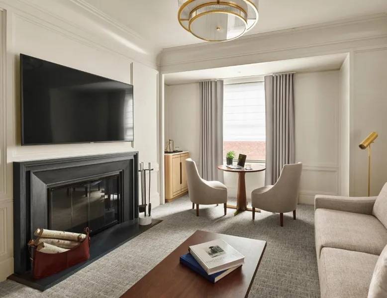 Prime Location: The Newbury Boston in Boston city center offers a convenient location with Logan Airport 4.3 mi away. Nearby attractions include Gibson House Museum (5-minute walk), Alexander Hamilton Statue (656 feet), and an ice-skating rink. Exceptional Facilities: Guests enjoy a fitness center, free bicycles, a garden, restaurant, bar, and free WiFi in public areas. Additional amenities include a lounge, fitness room, 24-hour front desk, concierge service, and electric vehicle charging station. Comfortable Accommodations: Rooms feature air-conditioning, private bathrooms, bathrobes, and free toiletries. Additional amenities include streaming services, fireplace, tea and coffee maker, and mini-bar. Dining Experience: The restaurant serves American and Italian cuisines with vegetarian, vegan, gluten-free, and dairy-free options. Dining options include brunch, lunch, dinner, and cocktails in a traditional, modern, and romantic ambiance. This spacious suite features 1 living room, 1 separate bedroom and 1 bathroom with a shower and free toiletries. The air-conditioned suite features a flat-screen TV with cable channels, a private entrance, a mini-bar and a seating area. The unit has 1 bed.