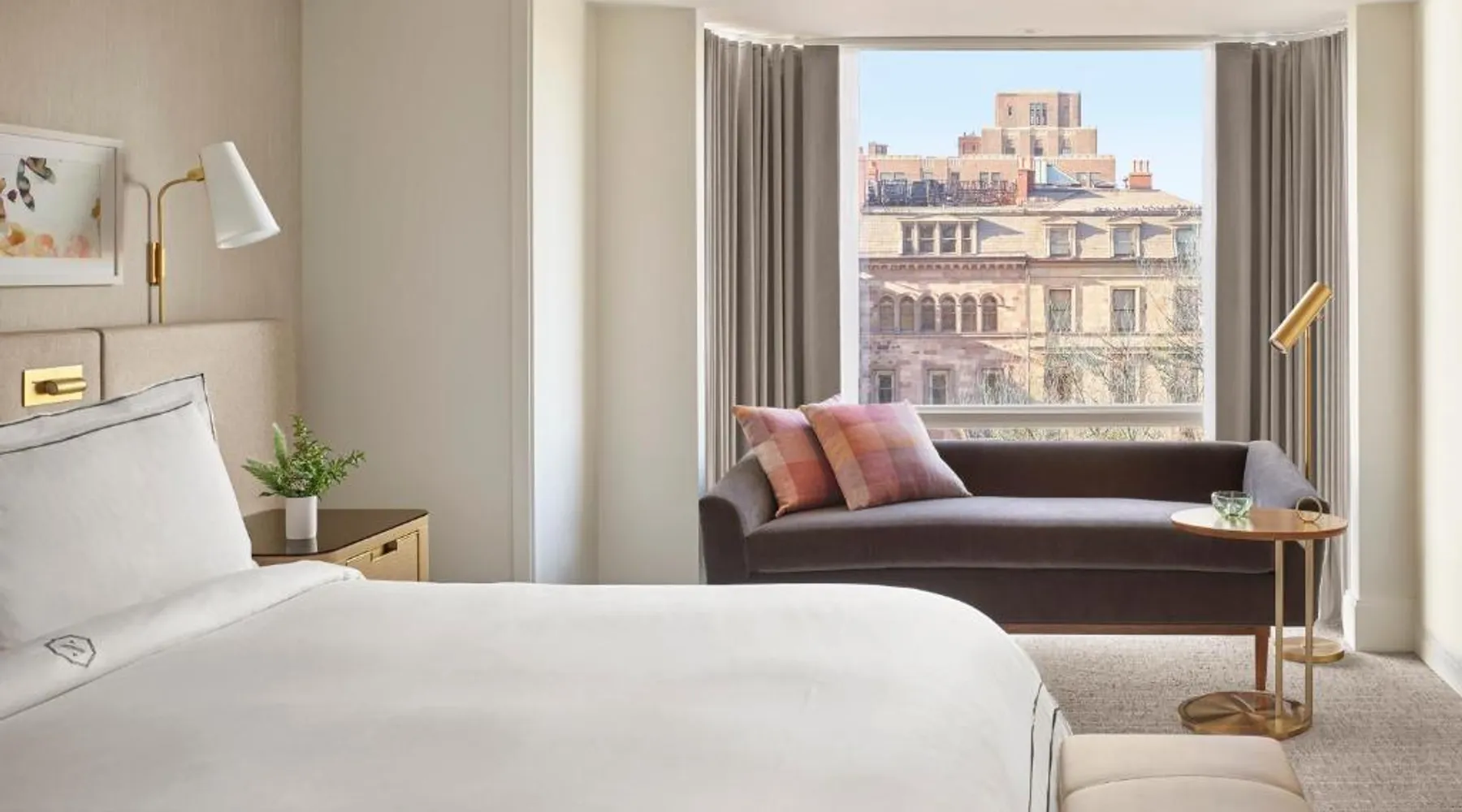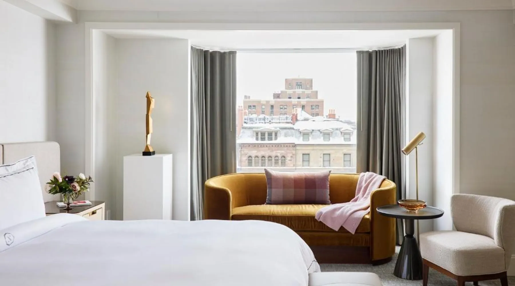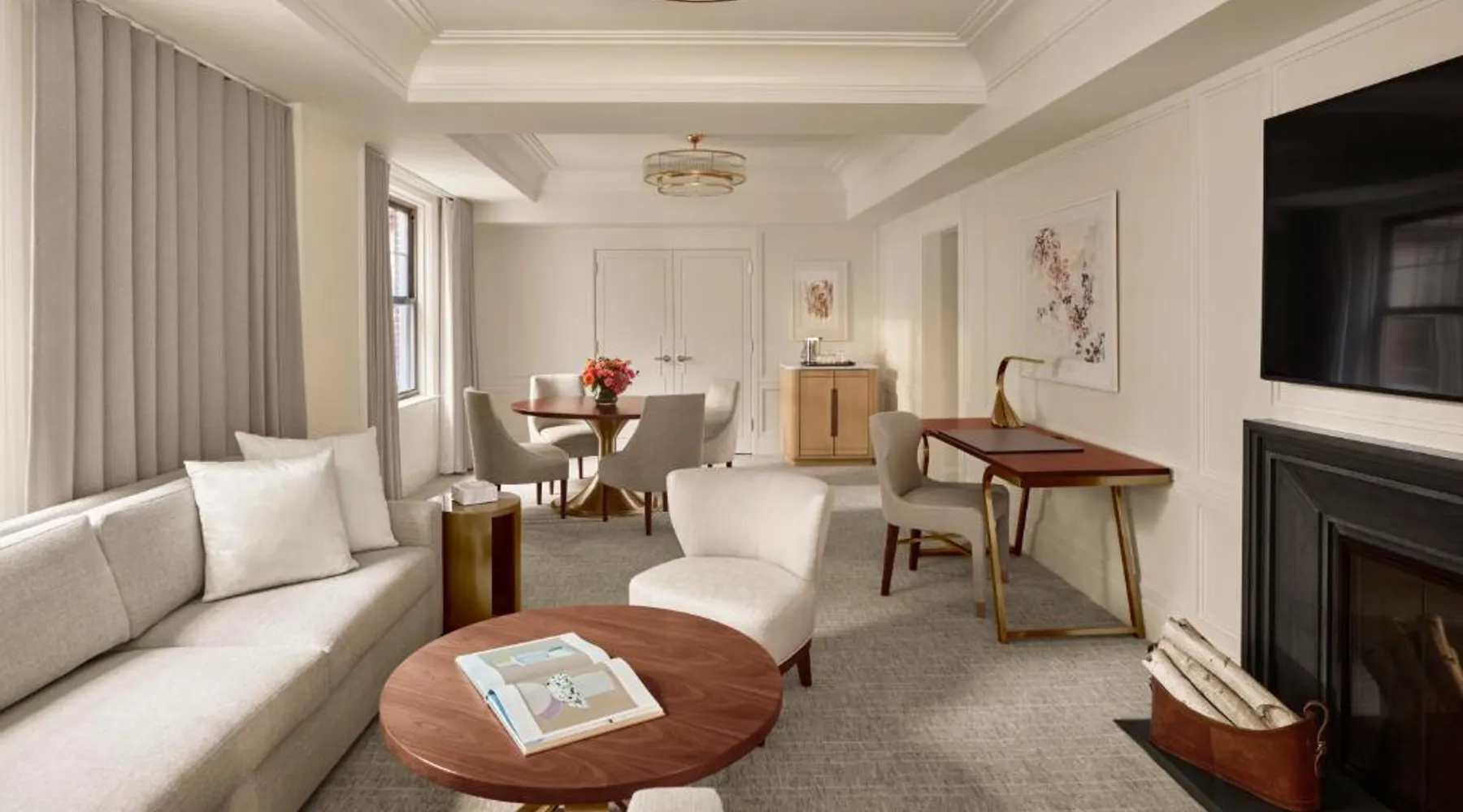 Prime Location: The Newbury Boston in Boston city center offers a convenient location with Logan Airport 4.3 mi away. Nearby attractions include Gibson House Museum (5-minute walk), Alexander Hamilton Statue (656 feet), and an ice-skating rink. Exceptional Facilities: Guests enjoy a fitness center, free bicycles, a garden, restaurant, bar, and free WiFi in public areas. Additional amenities include a lounge, fitness room, 24-hour front desk, concierge service, and electric vehicle charging station. Comfortable Accommodations: Rooms feature air-conditioning, private bathrooms, bathrobes, and free toiletries. Additional amenities include streaming services, fireplace, tea and coffee maker, and mini-bar. Dining Experience: The restaurant serves American and Italian cuisines with vegetarian, vegan, gluten-free, and dairy-free options. Dining options include brunch, lunch, dinner, and cocktails in a traditional, modern, and romantic ambiance. This spacious suite features 1 living room, 1 separate bedroom and 1 bathroom with a shower and free toiletries. The air-conditioned suite features a flat-screen TV with cable channels, a private entrance, a mini-bar and a seating area. The unit has 1 bed.