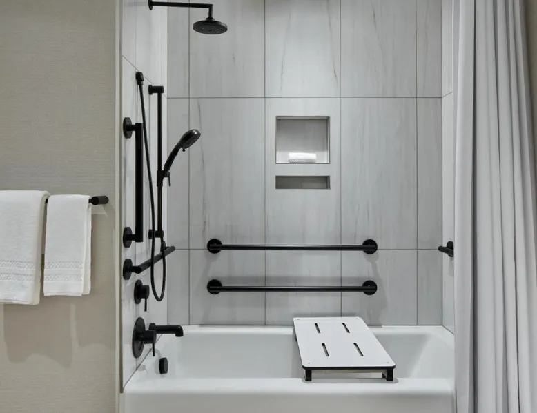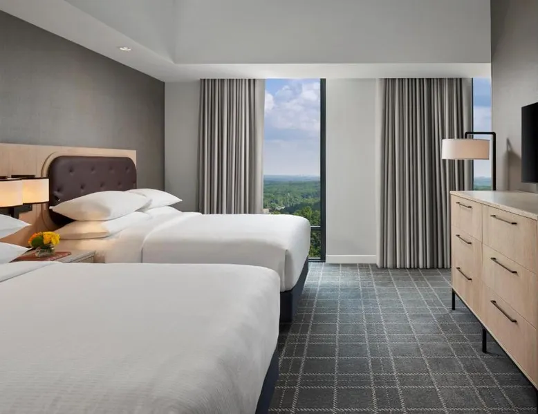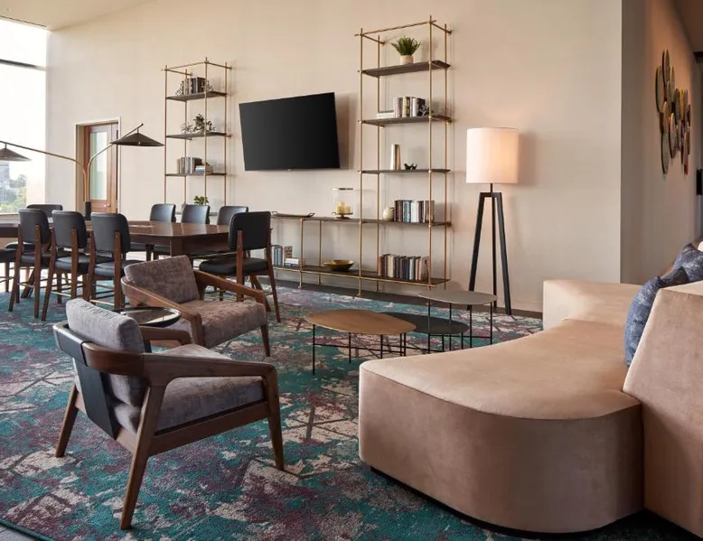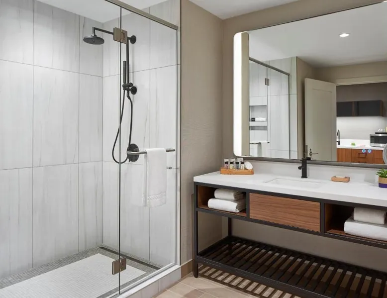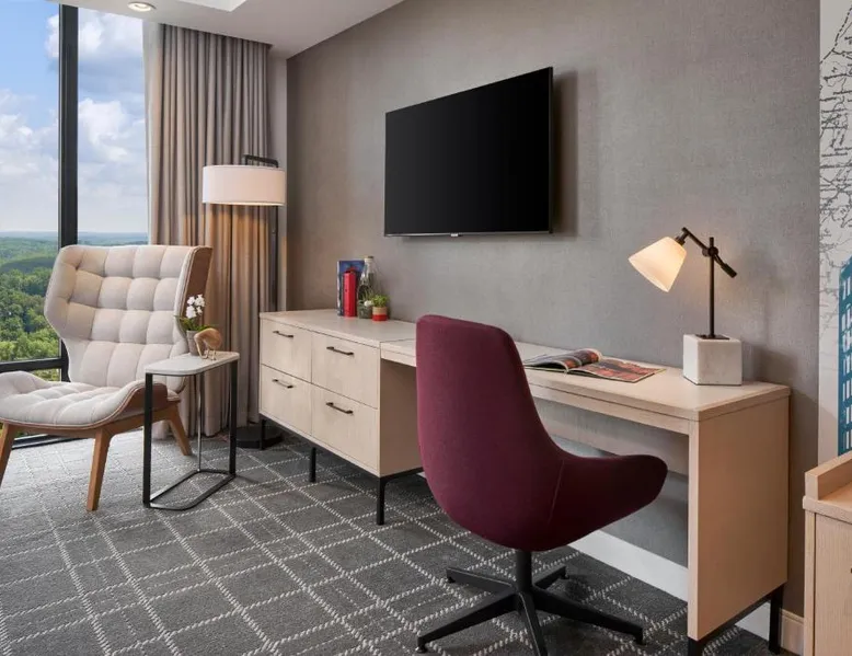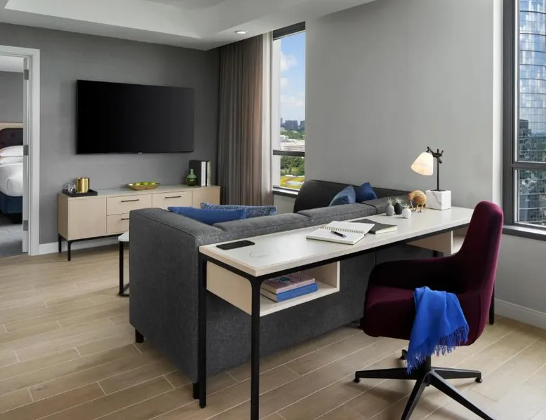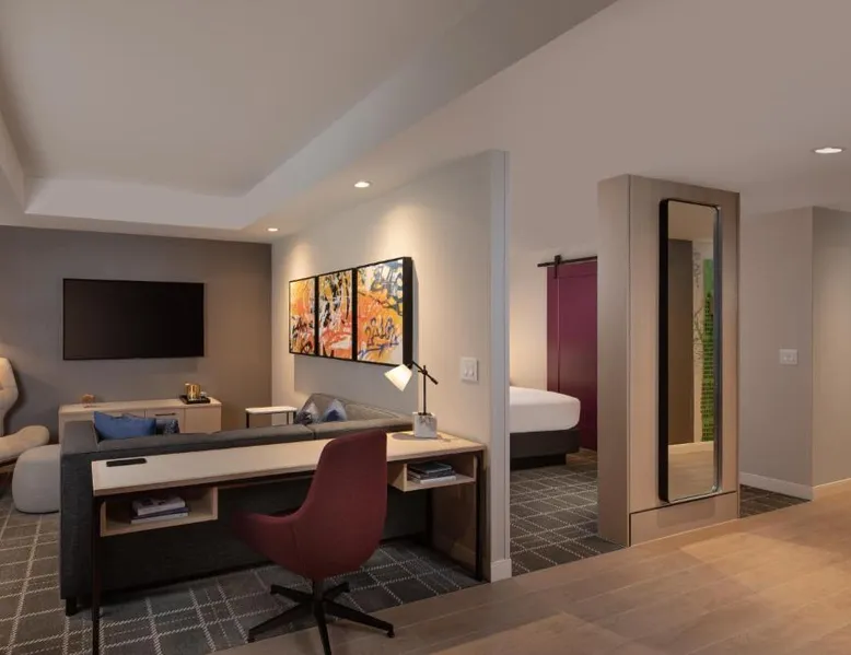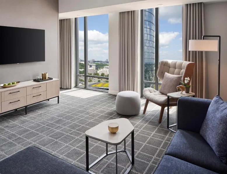 Comfortable Accommodations: The Watermark Hotel in Tysons Corner offers family rooms with air-conditioning, private bathrooms, and modern amenities. Each room includes a work desk, TV, and free toiletries. Dining and Leisure: Guests can enjoy a fitness center, sun terrace, and free bicycles. The modern, family-friendly restaurant serves American and Japanese cuisines with vegetarian, vegan, gluten-free, and dairy-free options. Additional facilities include a bar, outdoor fireplace, and picnic area. Convenient Location: Located 14 mi from Ronald Reagan Washington National Airport, the hotel is near attractions such as the Air Force Memorial (11 mi) and Lincoln Memorial (12 mi). Private check-in and check-out, a 24-hour front desk, and paid on-site parking enhance the stay. This spacious suite consists of 1 living room, 1 separate bedroom and 1 bathroom with a walk-in shower and free toiletries. The suite's kitchen, which has a refrigerator and a microwave, is available for cooking and storing food. The suite features parquet floors, a seating area with a flat-screen TV with streaming services, air conditioning, a tea and coffee maker, as well as a dining area. The unit offers 1 bed.