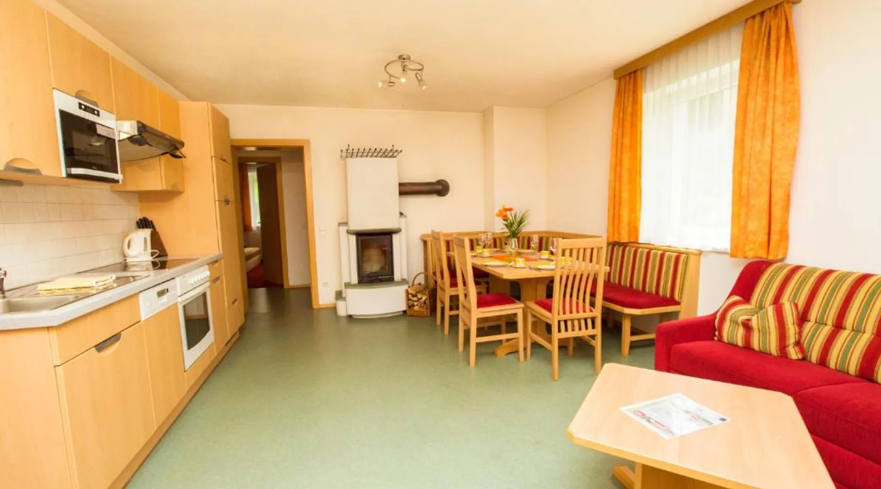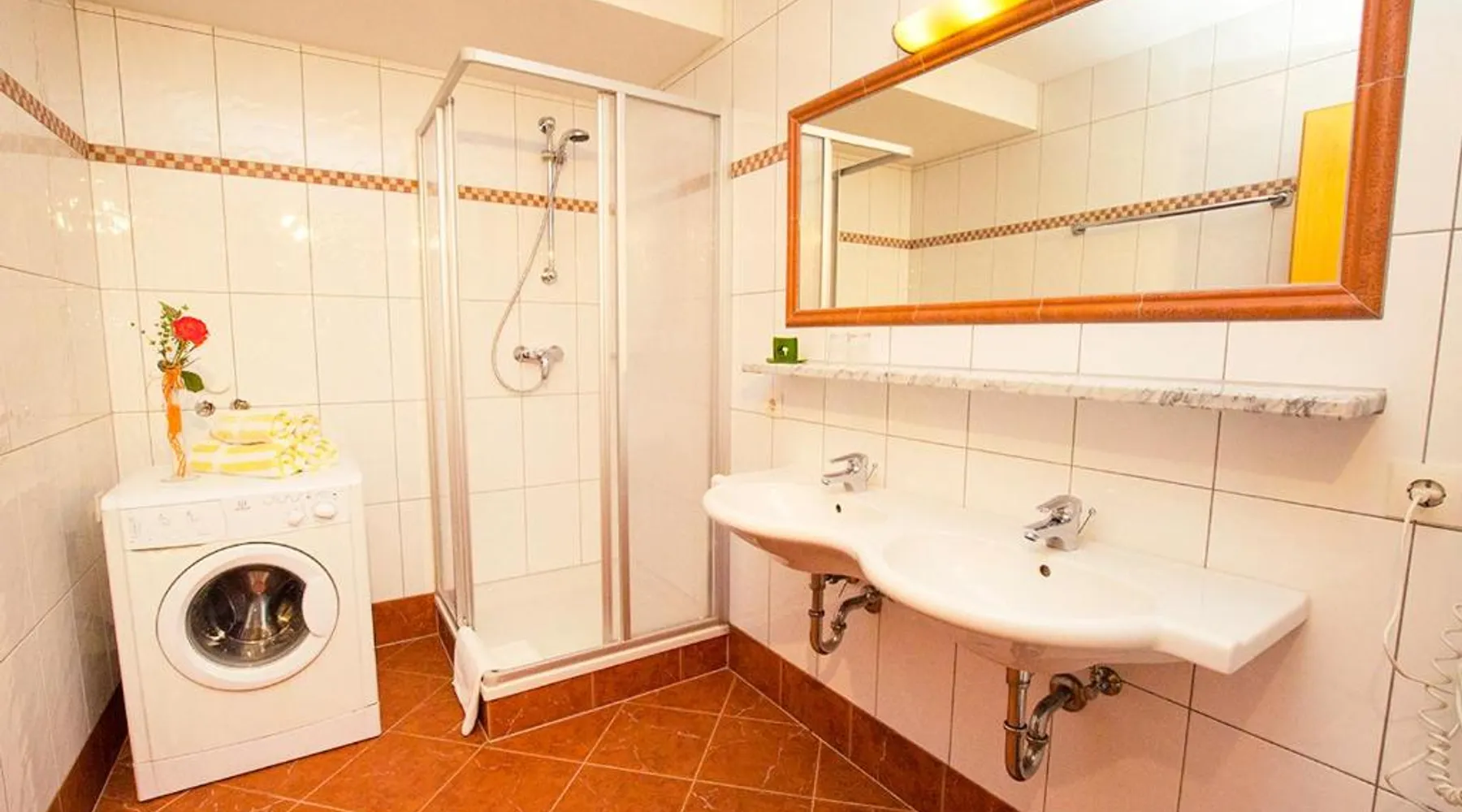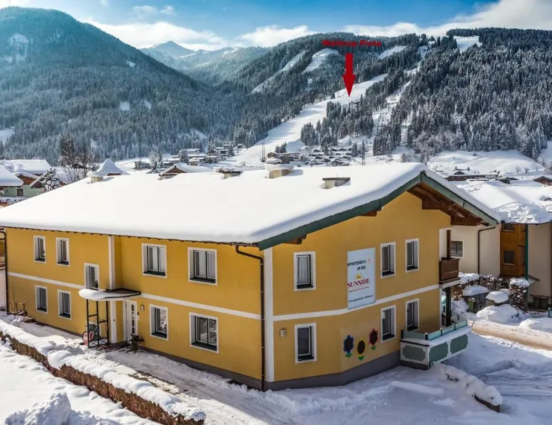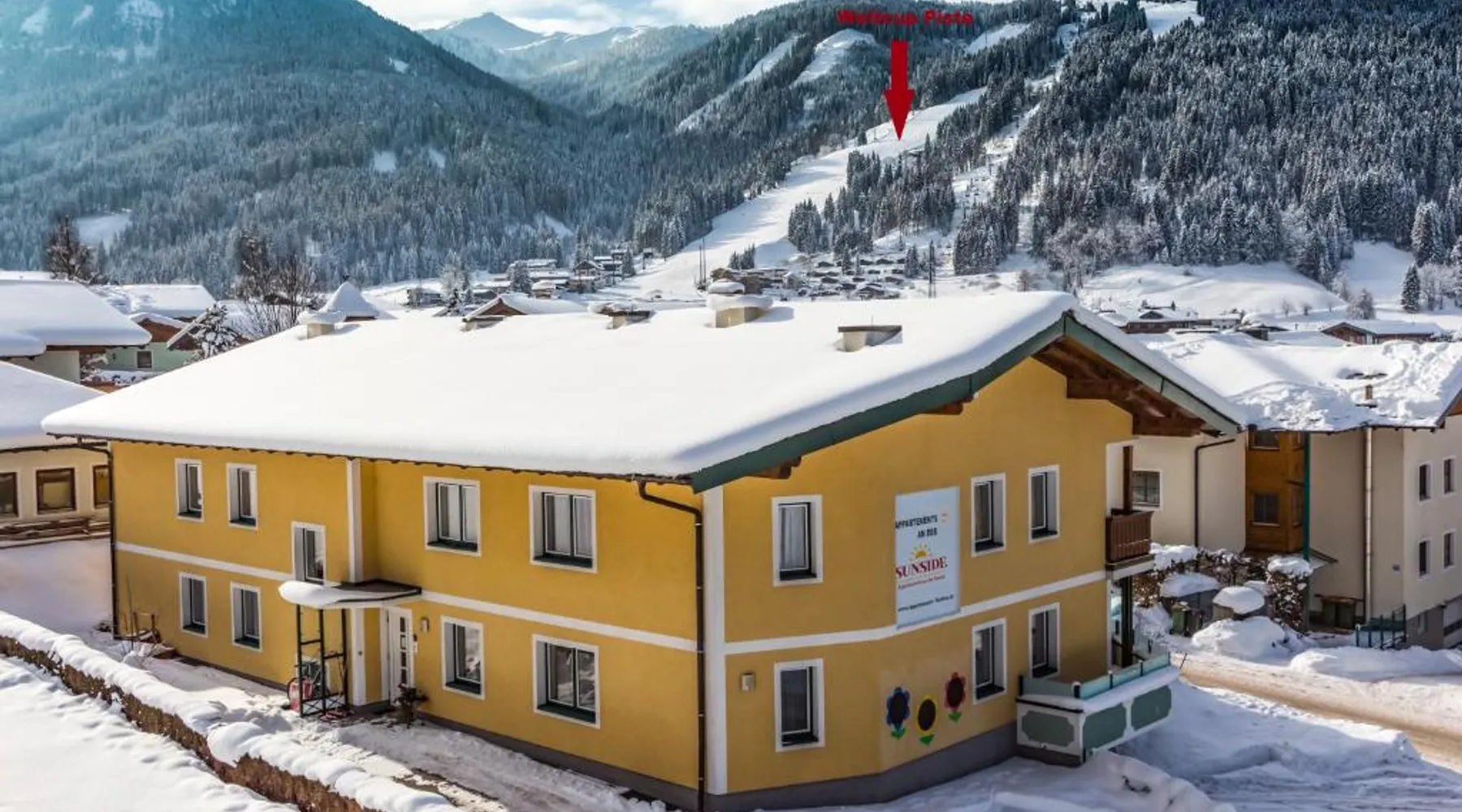 Comfortable Accommodations: Sunside in Flachau offers a 3-star apartment with a sauna, terrace, restaurant, bar, and free WiFi. The property features family rooms, a lounge, indoor play area, games room, and ski storage. Dining Experience: The family-friendly restaurant serves Austrian cuisine for lunch and dinner in a traditional ambiance. Guests can enjoy meals in a cozy setting, perfect for relaxation. Convenient Location: Located 45 mi from Salzburg W. A. Mozart Airport, Sunside is near attractions such as Eisriesenwelt Werfen (21 mi), Bischofshofen Train Station (17 mi), and Hohenwerfen Castle (19 mi). Free on-site private parking is available. Activities and Surroundings: Guests can enjoy skiing, hiking, and cycling. The surrounding area offers scenic views and diverse activities, ensuring a memorable stay. Bedroom, living room with fireplace, 2 TVs, computer with internet access, storage room. No extra beds are possible.