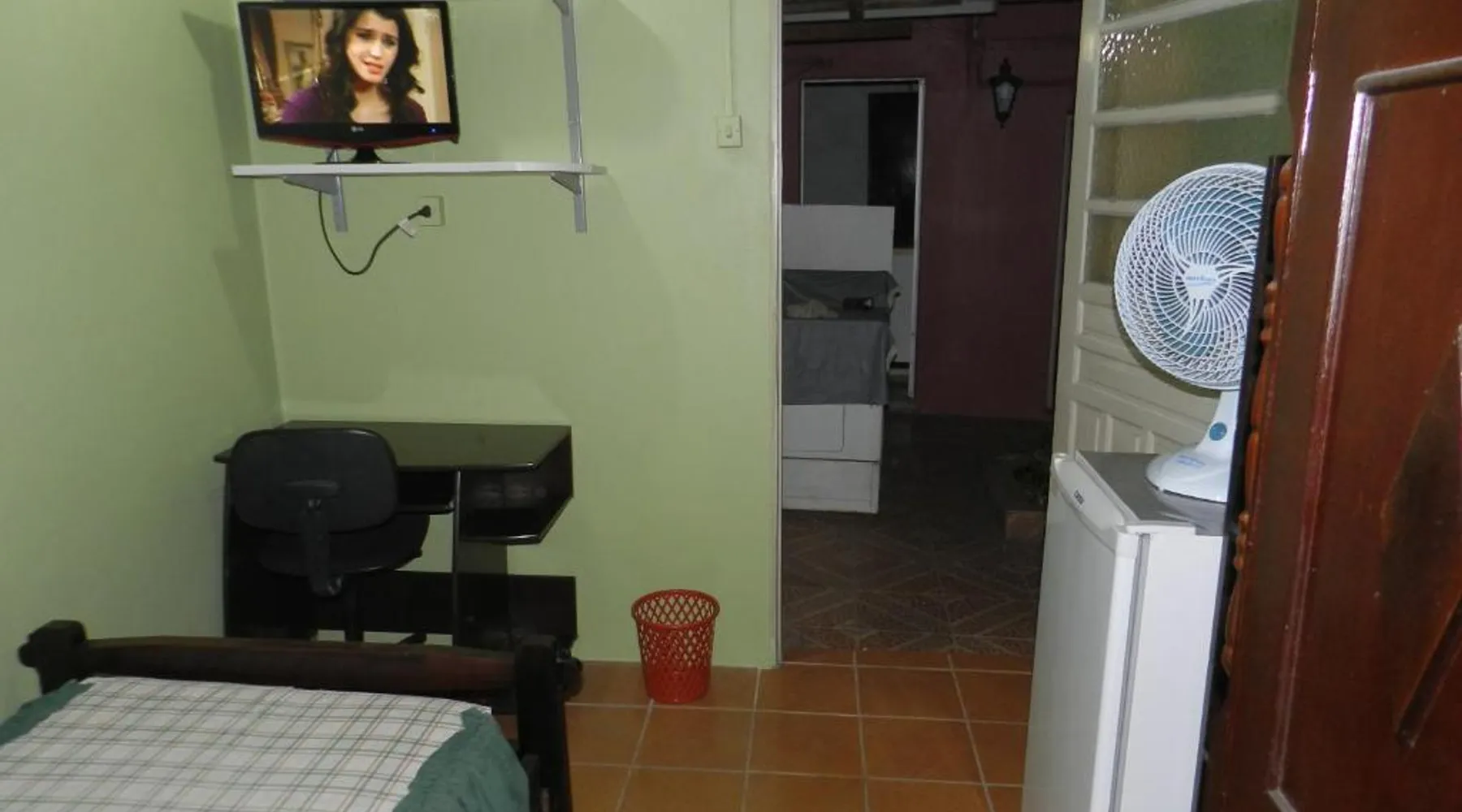 Comfortable Accommodations: Morada do Estudante in Pelotas offers family rooms with private entrances and inner courtyard views. Each room features tiled or parquet floors, a work desk, and a wardrobe. Essential Facilities: Guests enjoy free WiFi, a lounge, 24-hour front desk, shared kitchen, coffee shop, and full-day security. Additional amenities include a mini-bar and TV. Convenient Location: Located 3.1 mi from Internacional de Pelotas Airport, the homestay provides easy access to local attractions. Reception staff speak Spanish and Portuguese. This single room features a shared bathroom, and parquet floors. The single room offers a private entrance, a mini-bar, a wardrobe, a TV, as well as an inner courtyard view. The unit has 1 bed.