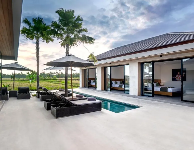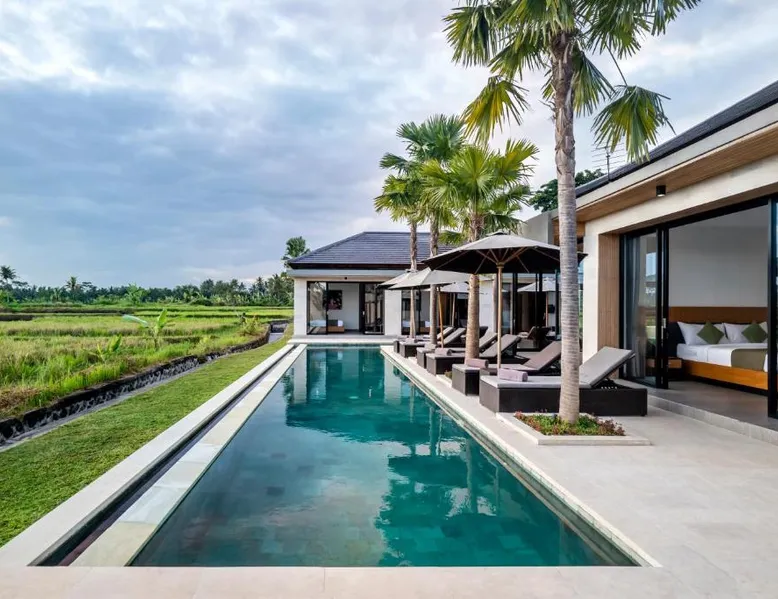 Spacious Accommodations: Villa Yallan by BaliSuperHost in Ubud offers a spacious layout with five bedrooms and five bathrooms. The property includes a living room and family rooms, ensuring comfort for all guests. Exceptional Facilities: Guests can enjoy a saltwater swimming pool, lush garden, and terrace. Free WiFi is available throughout the villa, enhancing the stay experience. Convenient Amenities: The villa features air-conditioning, a fully equipped kitchen, and a dining area. Additional amenities include a work desk, TV, and free toiletries. Prime Location: Located 21 mi from Ngurah Rai International Airport, Villa Yallan is close to attractions such as Goa Gajah (1.9 mi) and Ubud Palace (3.1 mi). Free on-site private parking is provided. Highly rated by guests. Guests will have a special experience as the villa features a pool with a view. This spacious villa consists of 1 living room, 5 separate bedrooms and 5 bathrooms with a shower and free toiletries. Guests can make meals in the kitchen that is equipped with a stovetop, a refrigerator, kitchenware and an oven. The air-conditioned villa provides a flat-screen TV with satellite channels, a private entrance, a tea and coffee maker, a seating area as well as garden views. The unit offers 5 beds.