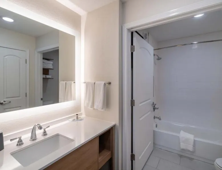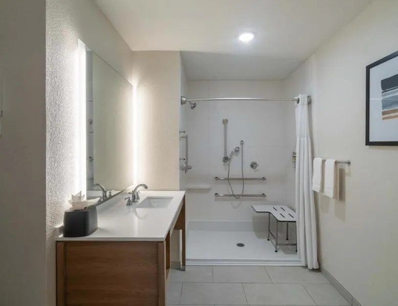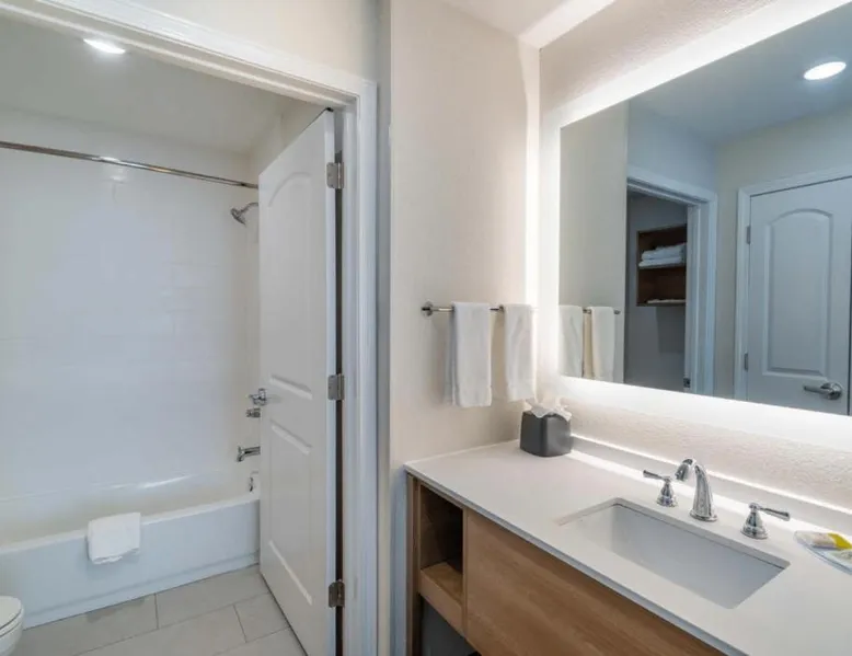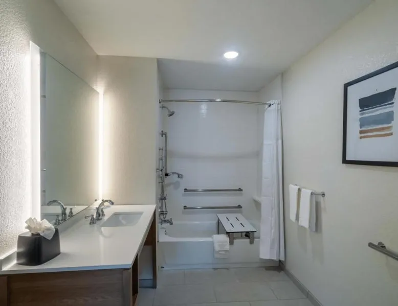 Comfortable Accommodations: Staybridge Suites - Flowood - NW Jackson by IHG in Flowood offers family rooms with air-conditioning, kitchenettes, and private bathrooms. Each room includes a work desk, sofa bed, and free WiFi. Leisure Facilities: Guests can enjoy a saltwater swimming pool, indoor pool, fitness center, and terrace. Additional amenities include a lounge, outdoor fireplace, and picnic area. Dining Options: The hotel serves an American breakfast with local specialties, warm dishes, fresh pastries, and more. Evening entertainment and themed dinner nights enhance the stay. Convenient Location: Located 2.5 mi from Jackson-Evers Airport, the hotel is near attractions such as Mississippi Coliseum (5.6 mi) and Mississippi Veterans Memorial Stadium (3.7 mi). Guests appreciate the room cleanliness and attentive staff. The air-conditioned suite features 1 bedroom and 1 bathroom with a bath and a shower. The well-equipped kitchenette has a stovetop, a refrigerator, a dishwasher and kitchenware. The suite offers a seating area, a dressing room, a sofa, parquet floors, as well as a flat-screen TV. The unit offers 1 bed.