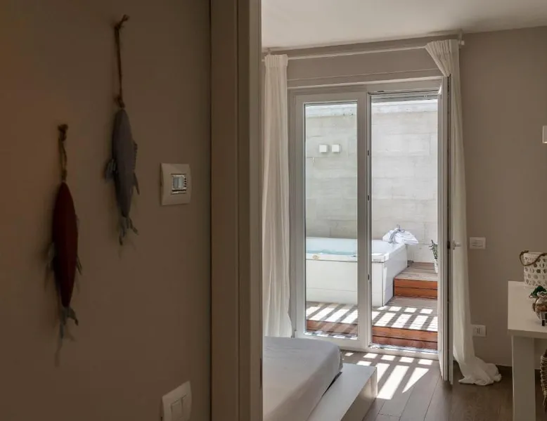 Spacious Accommodations: San Vito Luxury Accommodations in Polignano a Mare offers a spacious apartment with two bedrooms and a living room. Guests enjoy sea views, air-conditioning, and a terrace. Exceptional Facilities: The property features a sun terrace, open-air bath, and free WiFi. Additional amenities include a hot tub, minimarket, and bike hire. Convenient Location: Located 29 mi from Bari Karol Wojtyla Airport, the apartment is a 2-minute walk from Lama Monachile Beach. Nearby attractions include the Archaeological Museum Egnazia and San Domenico Golf. Guest Favorites: Guests appreciate the hot tub, convenient location, and attentive host. Guests will have a special experience as this apartment provides a hot tub. This spacious apartment is consisted of of 1 living room, 2 separate bedrooms and 1 bathroom with a shower and free toiletries. The well-fitted kitchen features a stovetop, a refrigerator, a dishwasher and kitchenware. The air-conditioned apartment offers a flat-screen TV, a washing machine, a tea and coffee maker, a seating area as well as sea views. The unit offers 3 beds.