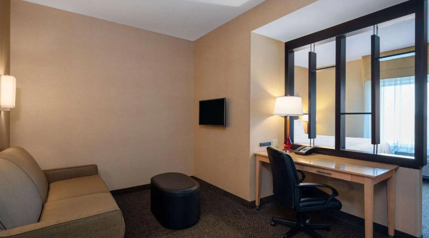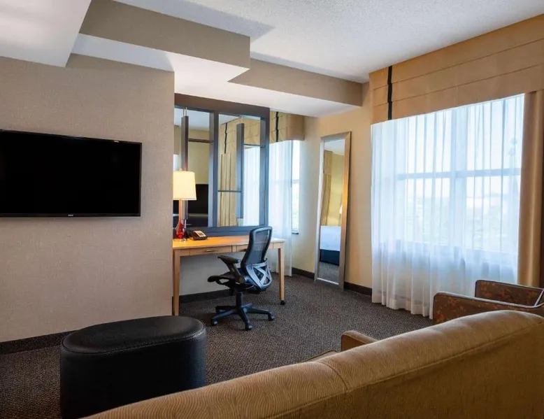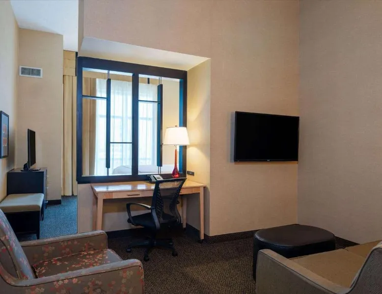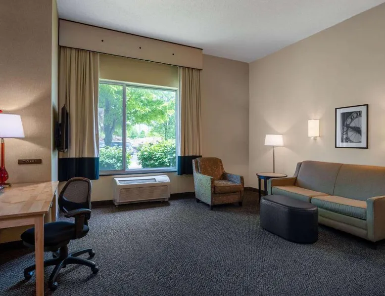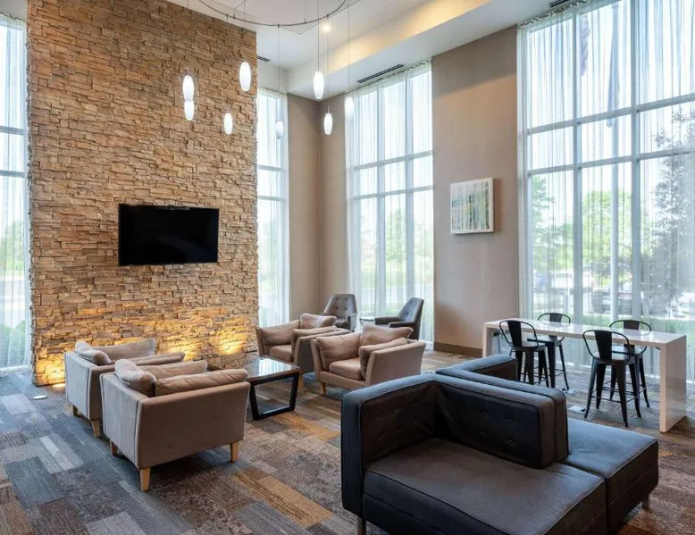 The Wyndham Noblesville Indianapolis is ideally located for both the business and leisure traveler visiting the area. This 100 percent nonsmoking hotel is located off Interstate 69 adjacent to the IU Health Saxony Hospital and Hamilton Town Center shopping mall. Klipsch Music Center is within walking distance from this hotel. Area visitors can enjoy the Hoosier Park Racing & Casino, Conner Prairie Interactive History Park. and Indiana State Fairgrounds. You can spend the day at the Indianapolis Zoo, visiting the NCAA Hall of Champions or the Children's Museum of Indianapolis. Take in a race at the Indianapolis Motor Speedway or a game at nearby Lucas Oil Stadium. At this hotel, the open and airy lobby provides club-lounge seating with big-screen media wall. The hotel has 24-hour sundry store, fitness center, heated pool. This hotel provides almost 1,300 square feet of conference and meeting space, full catering and audio/visual services and business center with Internet, fax, copy and printing services, free wireless high-speed Internet access and remote printing throughout the hotel. The hotel features oversize suites with luxurious bedding and upscale amenities like two flat-screen LCD televisions, spa-like bath products, microwaves and refrigerators. Take advantage of the in-room media hub plug and play technology for your laptop, MP3 player, game console and digital camera. The hotel has 24-hour sundry store, fitness center, heated pool. Featuring free toiletries, this suite includes a private bathroom with a walk-in shower, a bath or a shower and a hairdryer. The suite has carpeted floors, a seating area with a flat-screen TV with cable channels, air conditioning, a tea and coffee maker, as well as a wardrobe.