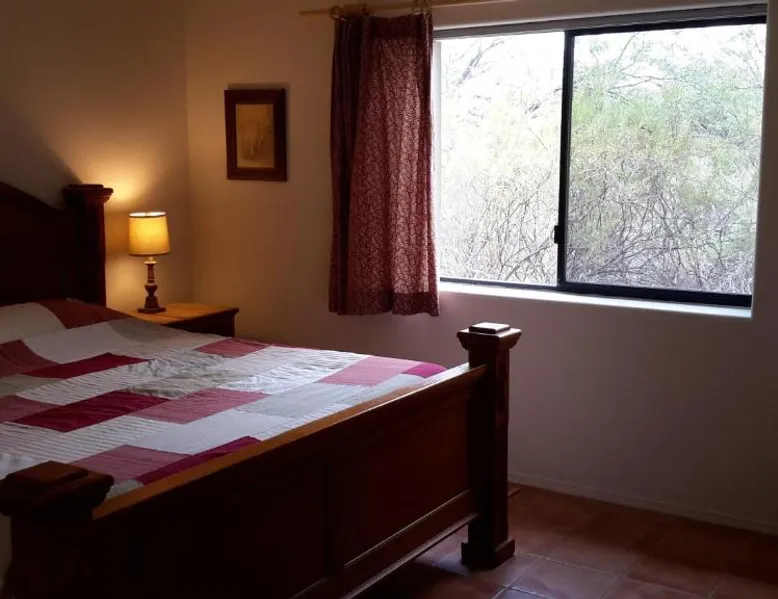 Comfortable Accommodations: Desert Trails Bed & Breakfast in Tanque Verde offers family rooms with garden views, private bathrooms, and air-conditioning. Each room includes a dining area, work desk, and free WiFi. Outdoor Amenities: Guests can relax on the sun terrace or in the garden. The property features a year-round outdoor swimming pool, outdoor seating, and a picnic area. Free on-site private parking is available. Delicious Breakfast: A variety of breakfast options are served, including continental, American, vegetarian, vegan, and gluten-free. Local specialties, juice, pancakes, and fruits are provided. Convenient Location: Located 21 mi from Tucson International Airport, the bed and breakfast is near attractions such as Arizona Stadium (14 mi) and Tucson Botanical Gardens (12 mi). Hiking opportunities are available. Also called The Mica Room, this air-conditioned room features a beehive fireplace, a flat-screen TV with a DVD player and bathroom with 2 sinks and a walk-in shower.