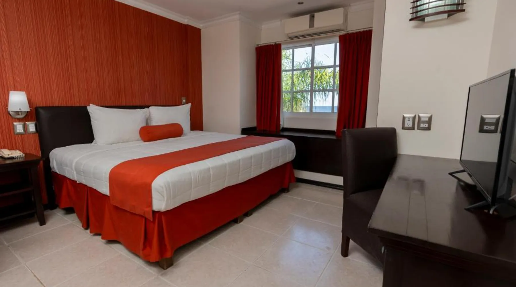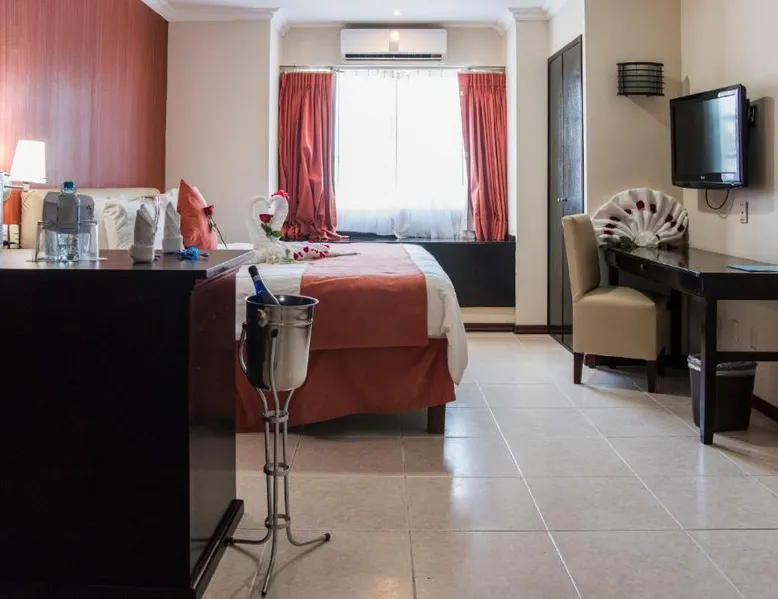 Overlooking the sea, Hotel Ocean View is located a short distance from the historic center of Campeche. This hotel offers a large swimming pool, a gym and a range of spa treatments. Rooms and suites at the Ocean View are decorated in contemporary style. They all include air conditioning, a flat-screen TV and a private bathroom with a hairdryer and toiletries. Only minutes from Hotel Ocean View are some of the area's most popular points of interest. These include Campeche Cathedral, as well as theaters and shopping centers. Air-conditioned suite with a king-size bed. It features a kitchenette equipped with a fridge and a microwave. There is a 32-inch flat-screen TV and ironing appliances, plus a safety deposit box. The private bathroom comes with a hairdryer and toiletries.