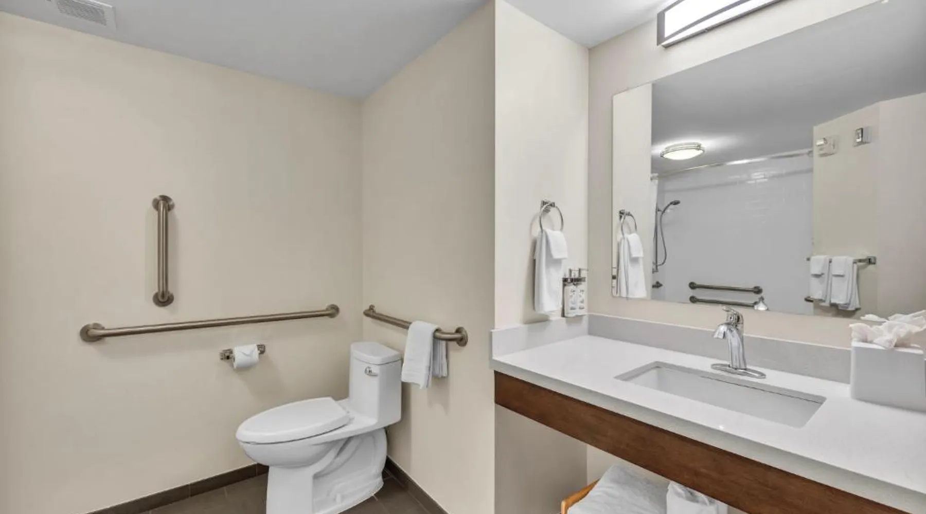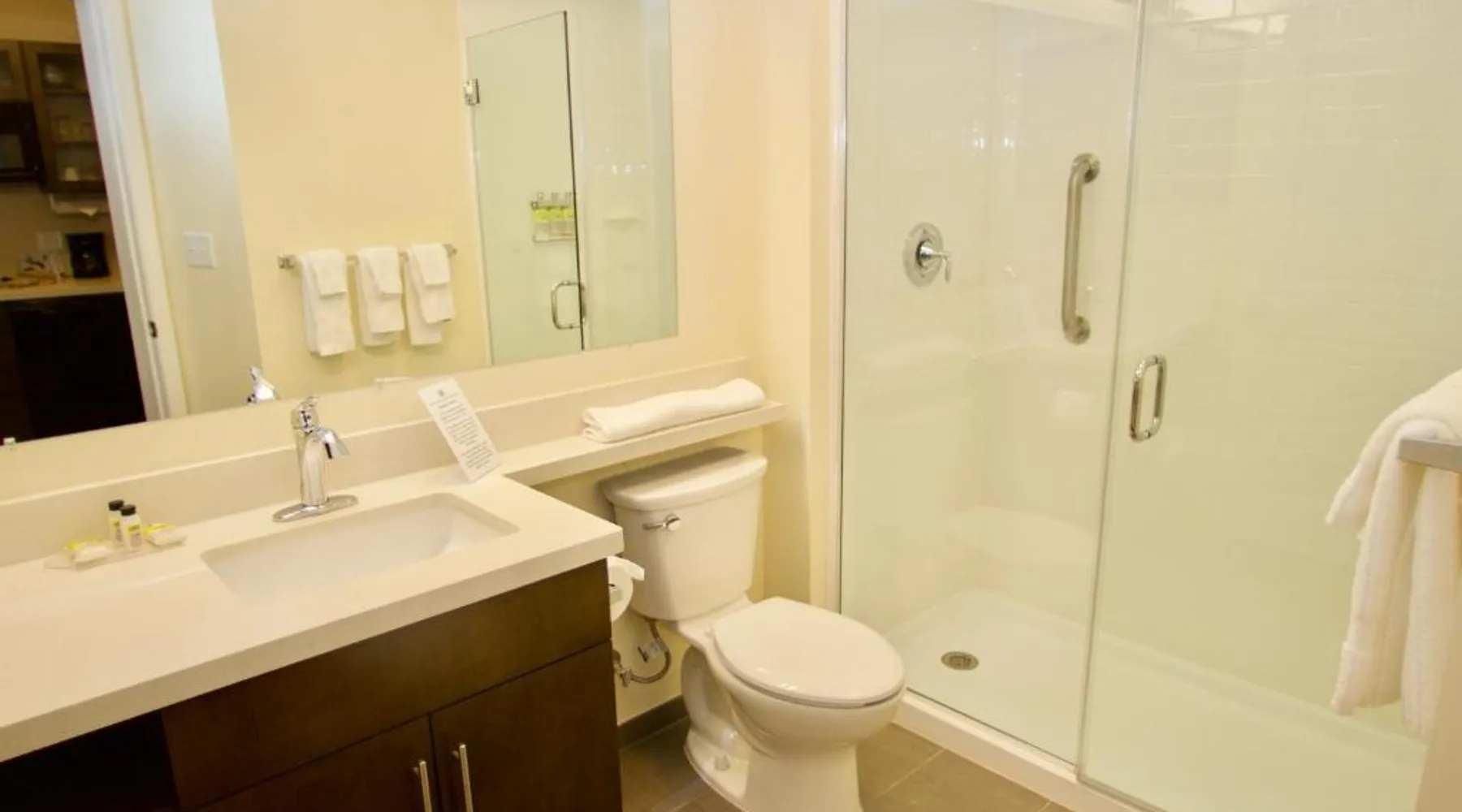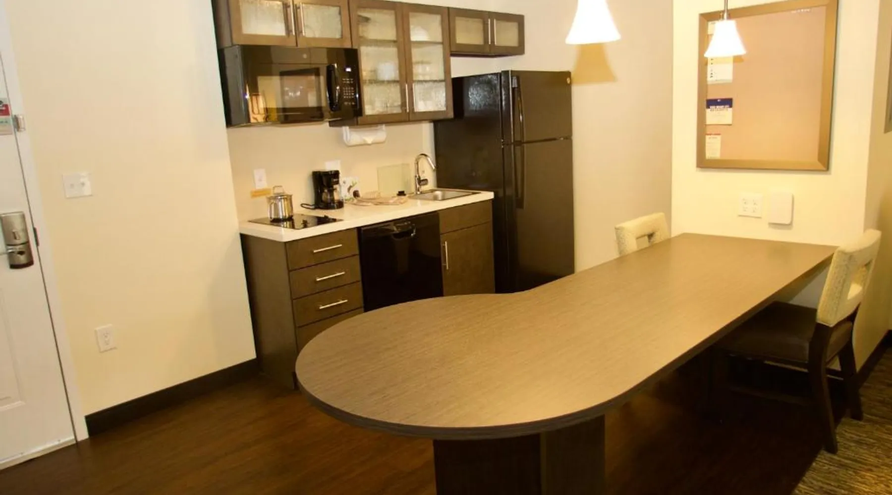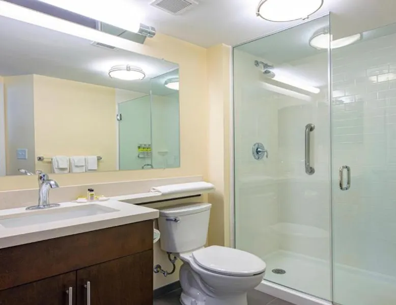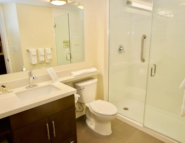 Comfortable Accommodations: Candlewood Suites - Dumfries - Quantico by IHG in Dumfries offers comfortable rooms with air-conditioning, kitchenettes, private bathrooms, and free WiFi. Each room includes a work desk, seating area, and modern amenities. Leisure Facilities: Guests can enjoy a saltwater swimming pool, indoor pool, and fitness center. Additional facilities include a hot tub, lounge, and outdoor seating area. Free on-site private parking is available. Convenient Location: Located 30 mi from Ronald Reagan Washington National Airport, the hotel is near attractions such as Huntley Meadows Park (22 mi) and George Washington Masonic National Memorial (25 mi). Free WiFi is accessible throughout the property. Highly Rated by Guests: Guests appreciate the excellent service, comfortable accommodations, and comprehensive amenities, making it a preferred choice for stays in Dumfries. In the fully equipped kitchen, guests will find a stovetop, a refrigerator, a dishwasher and kitchenware. The spacious suite offers air conditioning, a tea and coffee maker, as well as a private bathroom featuring a walk-in shower and a bath. The unit offers 2 beds.
