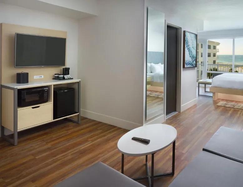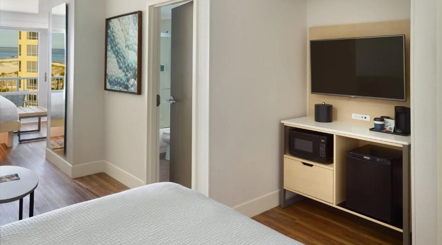 Featuring direct access to Pensacola Beach, this hotel offers a hot buffet breakfast and suites free WiFi. Facilities include an outdoor pool, and Gulf Islands National Seashore is 6 minutes’ drive away. A small refrigerator, microwave, and pantry area are provided in every room at this SpringHill Suites by Marriott Pensacola Beach. Extras include a cable TV with film channels and coffee and tea-making facilities. A fitness room, 24-hour front desk, an on-site cash machine are available at this Pensacola Beach SpringHill Suites. Laundry and dry cleaning facilities are offered as well. The breakfast room offers panoramic views of the Gulf of Mexico. The SunRays Sandwich shop offers a variety of sandwiches and snacks. Downtown Pensacola is just 9.6 mi away. The hotel is also 17 mi from the National Museum of Naval Aviation and 11 minutes’ walk from Quietwater Beach Broadwalk This studio features a balcony with a pool view, microwave, and cable television. Coffee-making facilities are also included.