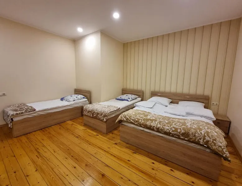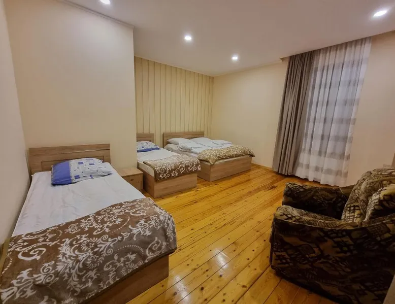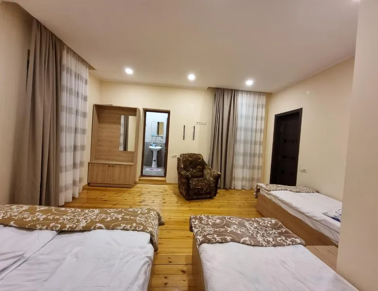 Elegant Accommodations: Shorena & Nino in Khazbegi offers a guest house with a garden, terrace, and free WiFi. Family rooms and a paid airport shuttle service enhance the stay. Comfortable Amenities: Each room features a balcony, private bathroom, and bath. Additional amenities include a terrace, barbecue, garden and mountain views, and free on-site private parking. Prime Location: Located 30 mi from Republican Spartak Stadium, the property offers scenic views and easy access to local attractions. Guests appreciate the host, room cleanliness, and scenic location. The family room offers a private entrance, soundproof walls, a terrace with garden views as well as a private bathroom featuring a bath. The unit offers 3 beds.