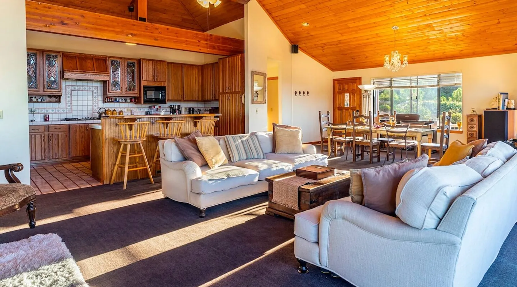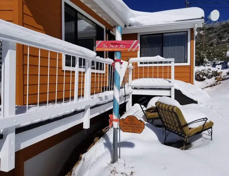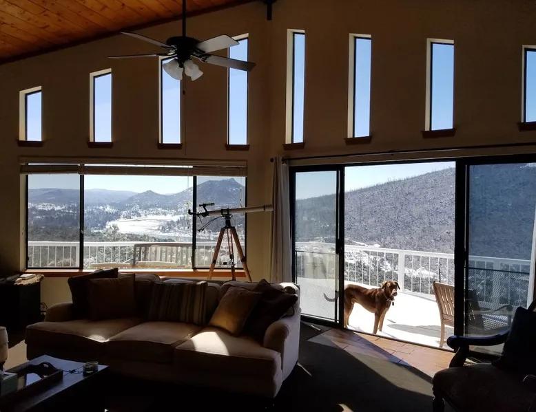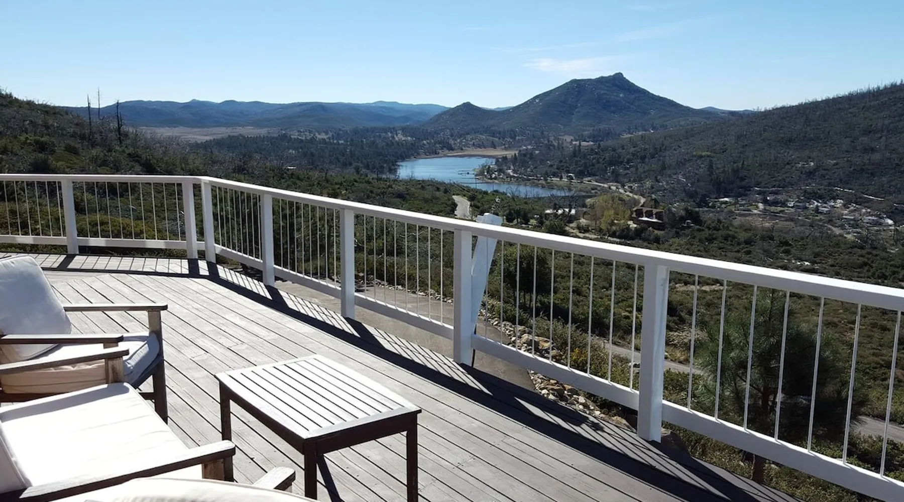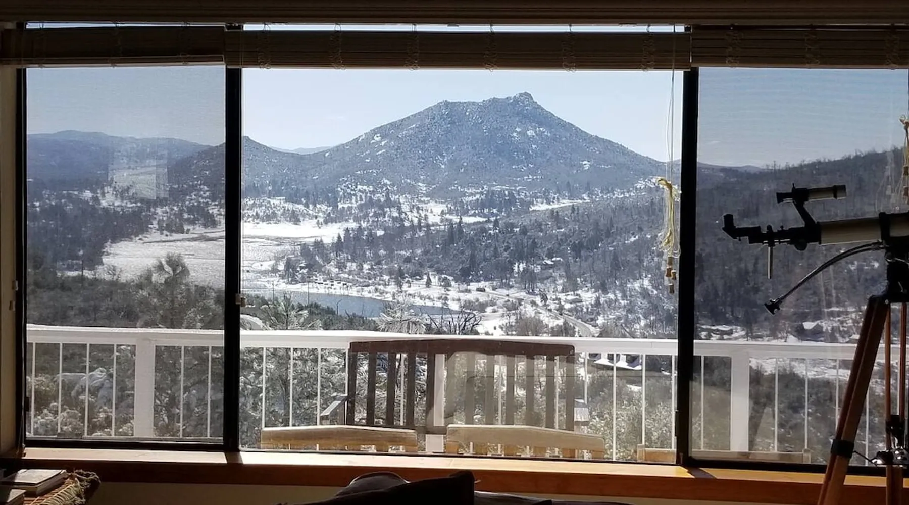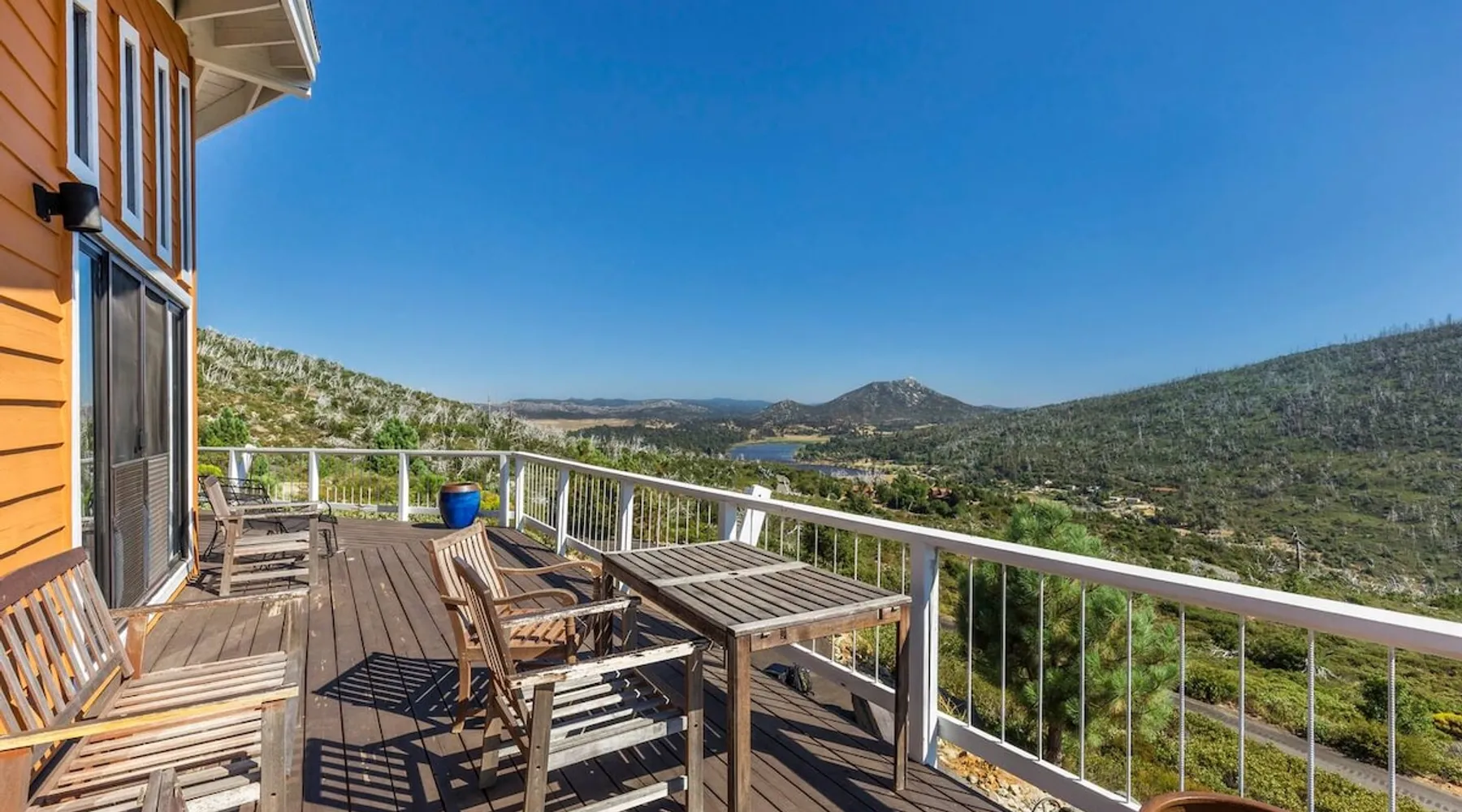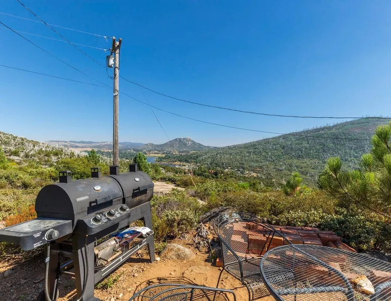 "A Living Canvas" w/ views that are always uniquely spectacular. Large Custom home w/ piano overlooking Lake Cuyamaca & views to the Pacific Ocean. Fantastic fishing and hiking. Famous downtown Julian w/food & shops close by. Exclusive, quiet, gated area. Stargazers dream! Voted a Julian Best Stay. A VIP Favorite! The space Heater, both upstairs and downstairs We have four cabins in Julian, so if this one is booked, please see our other options. All are very popular and have received 5-star ratings. See the other homes by scrolling to the bottom and clicking on our profile picture. Please keep in mind the number of beds and couches available. If you would like to bring additional people with cots, sleeping bags, or air mattresses, please ask first. We have fantastic views of the lake to the south & Picturesque views of the Ocean (on clear days) to the West. Amazing sunrises and sunsets (romance is in the air!) An official "Dark Sky Network" designated area telescope included for your use Two acres of land (many rentals only have a tiny dirt lot. Gated community, so it is very safe, private and quiet. We have central heat and air, so you will be comfortable. High-quality mattresses and linens are provided on all beds for a restful night's sleep. A large bathtub for your soaking pleasure after a long hike! Trails are nearby, and there is fantastic fishing at Lake Cuyamaca. Julian's restaurants and shopping are 9 miles away. The pet fee is $75 per pet per stay. The location is home to a variety of wildlife, including deer, wild turkeys, blue jays, falcons, hawks, woodpeckers, roadrunners, hummingbirds, and many other species. Length of Stay: We gladly welcome longer stays. Please feel free to send an inquiry! The driveway is a little tricky to navigate. It is best to drive past an entrance, make a U-turn at the next street, and then go up the driveway. This makes it easy. We have a home theatre system with YouTube TV, and Amazon Prime downstairs for your entertainment fun. You can use your own Netflix or other media account on our tv's if needed. The elevation is the highest in Julian! At nearly 5,000 feet, it can receive snow when other areas of Julian don’t. Sometimes, we only get snow as a result. On very special days, you can reach out and touch the clouds and hills. This is why we call it "A living canvas” If the number of guests exceeds the number of available beds, there are three large couches and a full-size mattress in the closet. We also provide hot drinks, such as cocoa, tea, and coffee. In the living room chest, as well as downstairs, there are many board games. NOTE.... We only allow non-smokers; my wife is allergic to cigarettes, so if you smoke at all, this is not the place for you. A $150 additional cleaning fee will be charged if guests smoke anywhere on the property. This is a very high-risk fire area, and we take no chances. If you are in a wheelchair, this house is not ADA-compliant; however, it may still be accessible in some cases. My wife is in a wheelchair, so we made it work for her. Please ask before you book to see if it will work for your situation. Central heat and A/C throughout. Both floors are well-heated. There is also a Charcoal BBQ available for your use. Charcoal is not included. Bonfires are not permitted; however, a propane fire pit is available under the gazebo. We do not permit the house to be used for any parties or events unless approved explicitly before booking. If there is excessive noise, you will be asked to leave immediately, and no refund will be given. We work hard to keep good relations with our neighbours and meet guest expectations. We work diligently to ensure your stay is the best possible. The house is professionally cleaned and maintained. It is beautiful, and the views are just stunning. We know you will agree! Guest access We will let you know about access 2 to 3 days before check-in by email. If you are in a wheelchair, it is NOT ADA but will work. Just ask first. There is no access to the garage to park. Tell every guest that parking is tricky since you have to drive past the driveway to the first street and make a u-turn to get into the driveway. The road to the cabin can be windy and steep with bad weather. Not advisable in the snow without a 4x4, chains or snow tires in winter. Other things to note Garage not included We are a Christian family, so some things around the house will reflect this. If you like to fish, Cuyamaca Lake is a great place to do so. The food at the lake restaurant is also very good! You can watch our DVDs or bring your own, as well as music for the stereo, if you want to watch movies or listen to music. During the winter, pipes can freeze, so you will need to turn off the house water before bed and turn it back on in the morning. You will need to monitor the weather report for the days of freezing weather (below 32°F). We do not give refunds for snow issues. You can always get to the house, but in the worst case, you have to park at the bottom of the hill on Engineer Road and walk up or wait for the snowplow, which comes 2x a day. Pls note spa hours. We do our best to ensure the spa is ready for each guest, and we have never had an issue. However, if the spa is unusable, we will not consider any financial implications. Sometimes, there are quick turns, and a guest might get the spa dirty or cloudy. We may not have enough time to clean, so that the water may be hazy, but we always do our best to have it ready... We have a Tesla battery backup in case of any outages. If you have more people than the number you reserved, you will be billed $30 per guest per night for the extra individuals. Late check-out fee without approval is $20 for every 10 minutes that you check out late. Pets are not allowed on furniture or beds (Bring covers for furniture if needed), or an additional $100 minimum cleaning fee will apply if we have to do extra cleaning. The pet fee is $75 per pet per stay