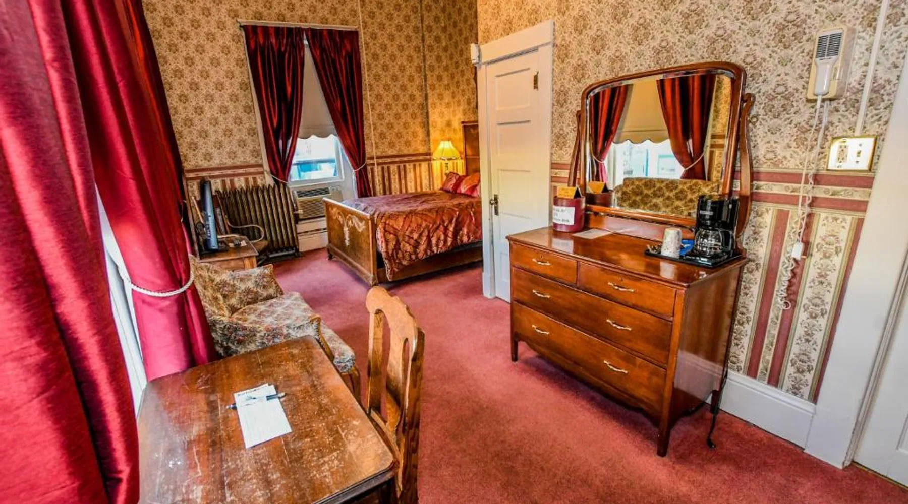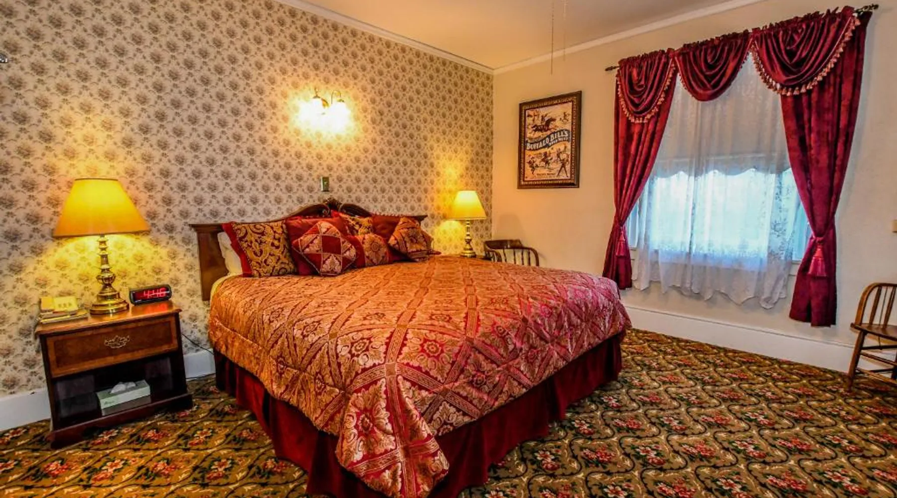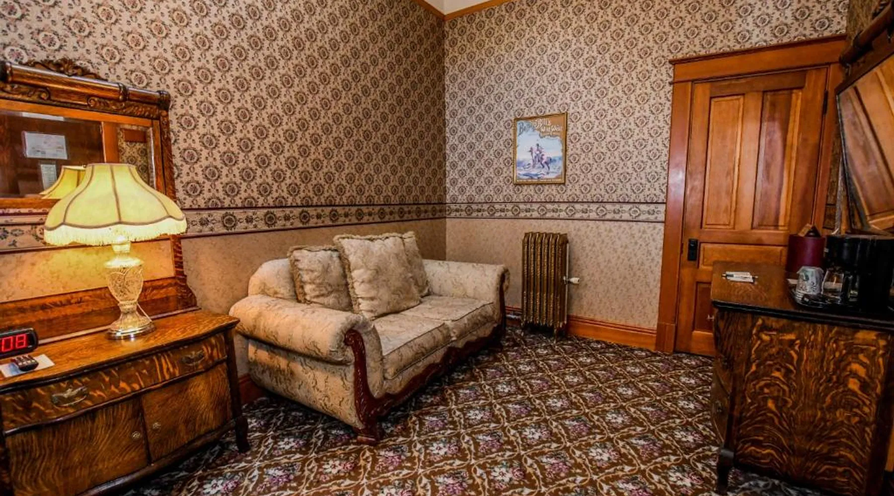 In downtown Cody, this Old West-styled hotel features guest rooms with free Wi-Fi. It showcases an on-site bar and restaurant and a free shuttle service to Yellowstone Regional Airport, a 5-minute drive away. Each air-conditioned room at Irma Hotel includes a cable TV. Guest rooms include a coffee machine and a private bathroom with free toiletries and a hairdryer. Located at Hotel Irma, The Irma Grill serves breakfast, lunch and dinner. During the summer, dinner buffets are available. The restaurant serves signature prime rib and has drink options at the Buffalo Bill Bar and the Silver Saddle Saloon. A 24-hour front desk greets guests at Irma Hotel. A gift shop is available in the hotel. Buffalo Bill Historic Center of the West is an 8-minute walk from this hotel. The Cody Rodeo is 3 miles away. Yellowstone National Park is 50 miles away. The spacious double room features air conditioning, a tea and coffee maker, as well as a private bathroom boasting a bath and a shower. This double room has a carpeted floor, heating and a flat-screen TV with cable channels. The unit has 1 bed.