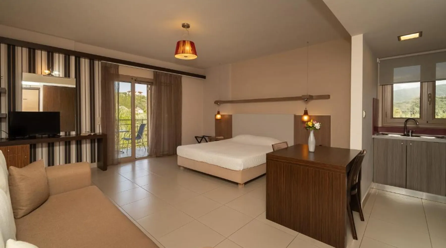 Located just 984 feet from the beach of Anemomylos, Tsokas Hotel offers self-catering rooms with free Wi-Fi. It is surrounded by a big garden and includes a swimming pool and a bar. Tsokas rooms are modernly decorated in bright colors and have a balcony with pool views. Each includes a well-equipped kitchenette with dining area, and a large sofa. Rooms also come with an LCD TV, air conditioning and hairdryer. Free sun beds and umbrellas are available around the swimming pool, which also features a hot tub. The more active guests can visit the hotel’s fitness room. The seaside town of Methoni is a 5-minute drive away from Tsokas, while the scenic Pylos is at 12 mi. Private on-site parking is provided free of charge. Spacious studio with well-equipped kitchenette and a large balcony.