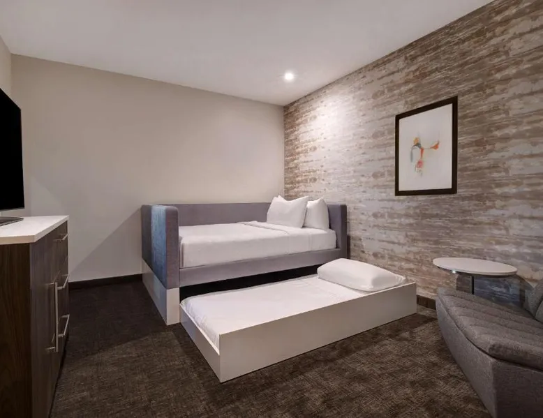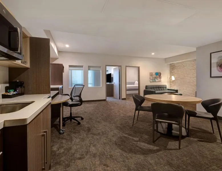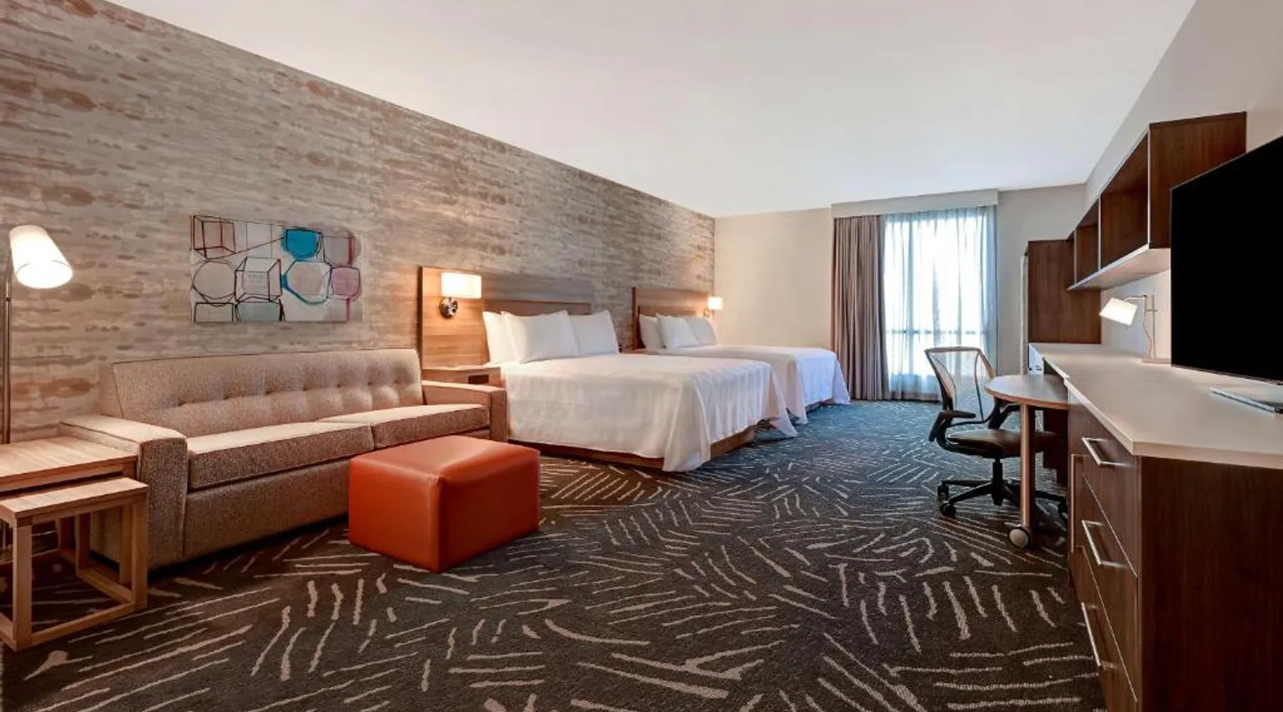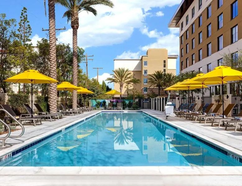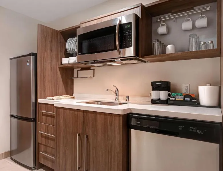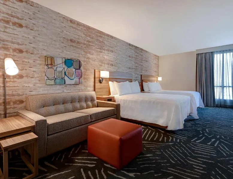 The Home2 Suites by Hilton Anaheim Resort, CA is conveniently located across from the entrance to Disneyland and Disney's California Adventure theme parks. It features free wireless internet throughout the entire hotel. All guest rooms feature coffee makers, microwaves, refrigerators, irons, ironing boards, cable television with HBO, hair dryers and safes. Guests can enjoy the outdoor pool. Laundry facilities, a gift shop and tour desk are located on the property for guest convenience. A business center, meeting facilities and 24-hour coffee in the lobby are also available. The hotel is minutes from the Anaheim Convention Center, The Shops at Anaheim GardenWalk mall, Knott's Berry Farm amusement park, The Block at Orange shopping center, Honda Center and Angel Stadium of Anaheim. The Home2 Suites by Hilton Anaheim Resort, CA is also less than 45 minutes from the heart of downtown Los Angeles. The fully equipped kitchen features a refrigerator, a dishwasher, kitchenware and a microwave. The air-conditioned studio provides a flat-screen TV with cable channels, a tea and coffee maker, a seating area and a safe deposit box. The unit offers 3 beds.