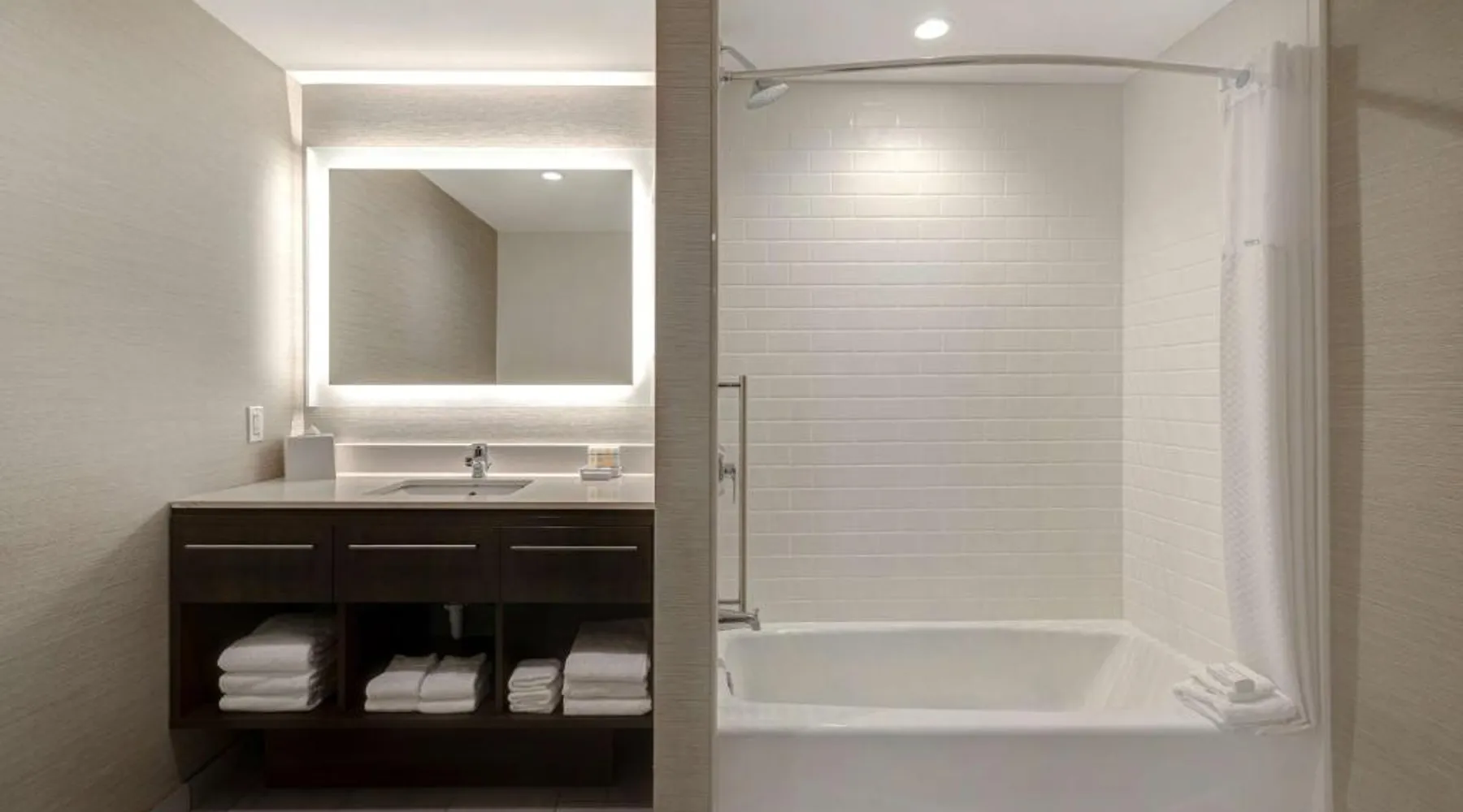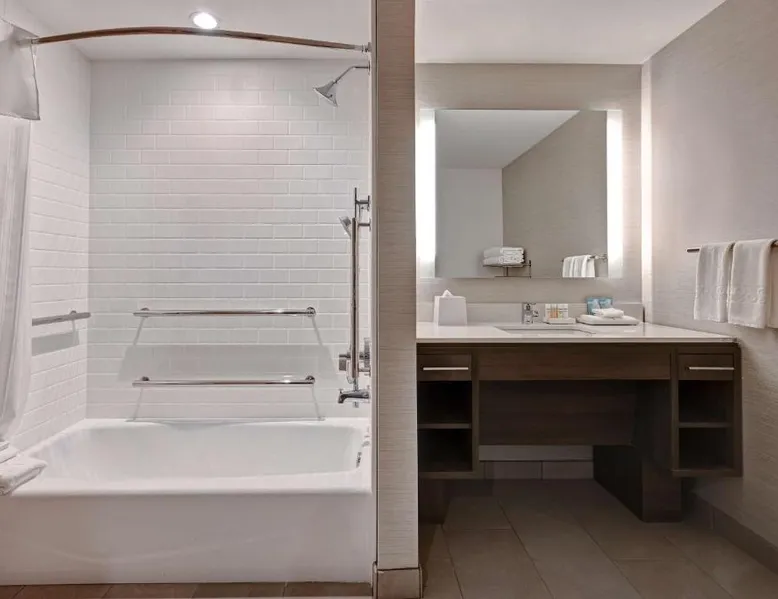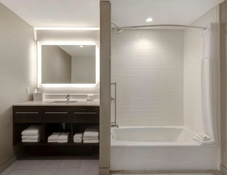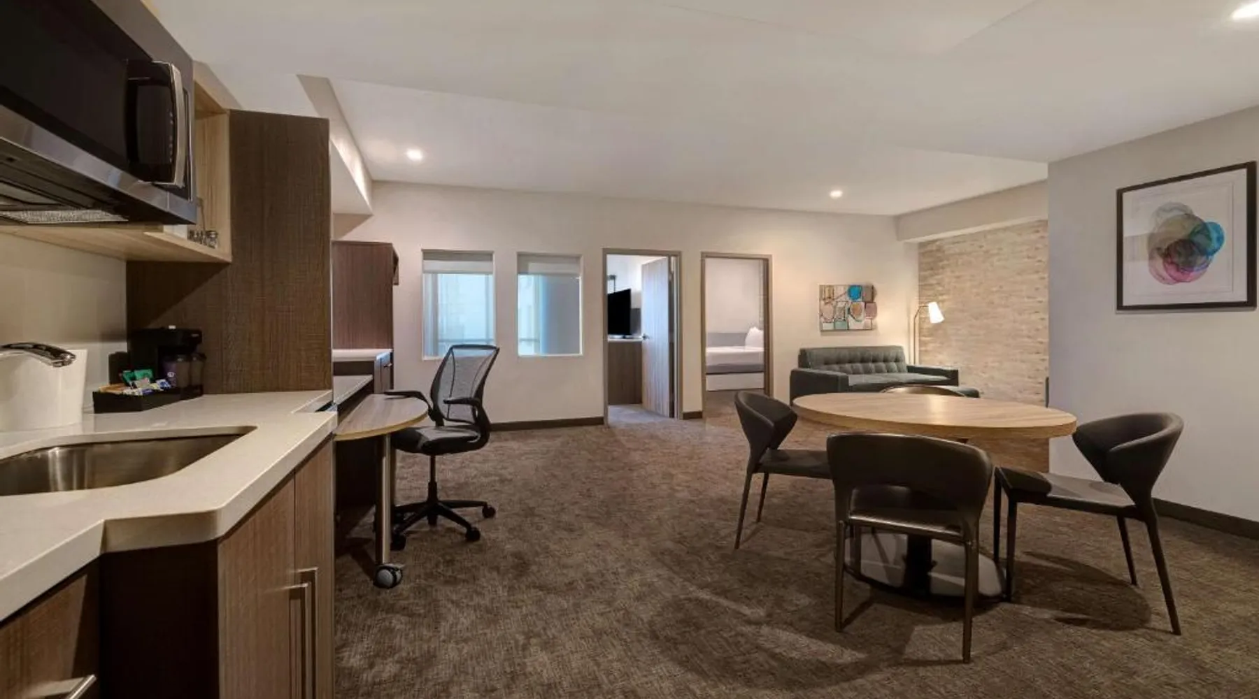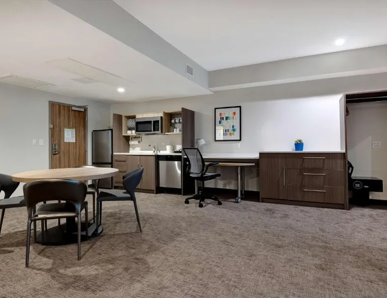 The Home2 Suites by Hilton Anaheim Resort, CA is conveniently located across from the entrance to Disneyland and Disney's California Adventure theme parks. It features free wireless internet throughout the entire hotel. All guest rooms feature coffee makers, microwaves, refrigerators, irons, ironing boards, cable television with HBO, hair dryers and safes. Guests can enjoy the outdoor pool. Laundry facilities, a gift shop and tour desk are located on the property for guest convenience. A business center, meeting facilities and 24-hour coffee in the lobby are also available. The hotel is minutes from the Anaheim Convention Center, The Shops at Anaheim GardenWalk mall, Knott's Berry Farm amusement park, The Block at Orange shopping center, Honda Center and Angel Stadium of Anaheim. The Home2 Suites by Hilton Anaheim Resort, CA is also less than 45 minutes from the heart of downtown Los Angeles. The fully equipped kitchen features a refrigerator, a dishwasher, kitchenware and a microwave. The air-conditioned studio provides a flat-screen TV with cable channels, a tea and coffee maker, a seating area and a safe deposit box. The unit offers 3 beds.