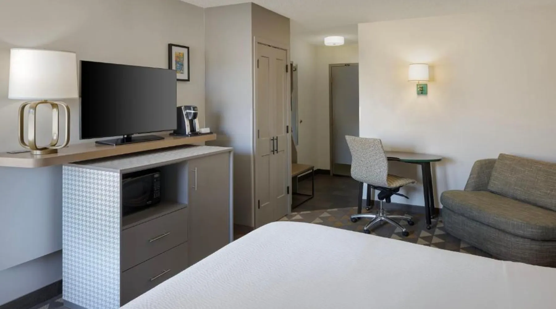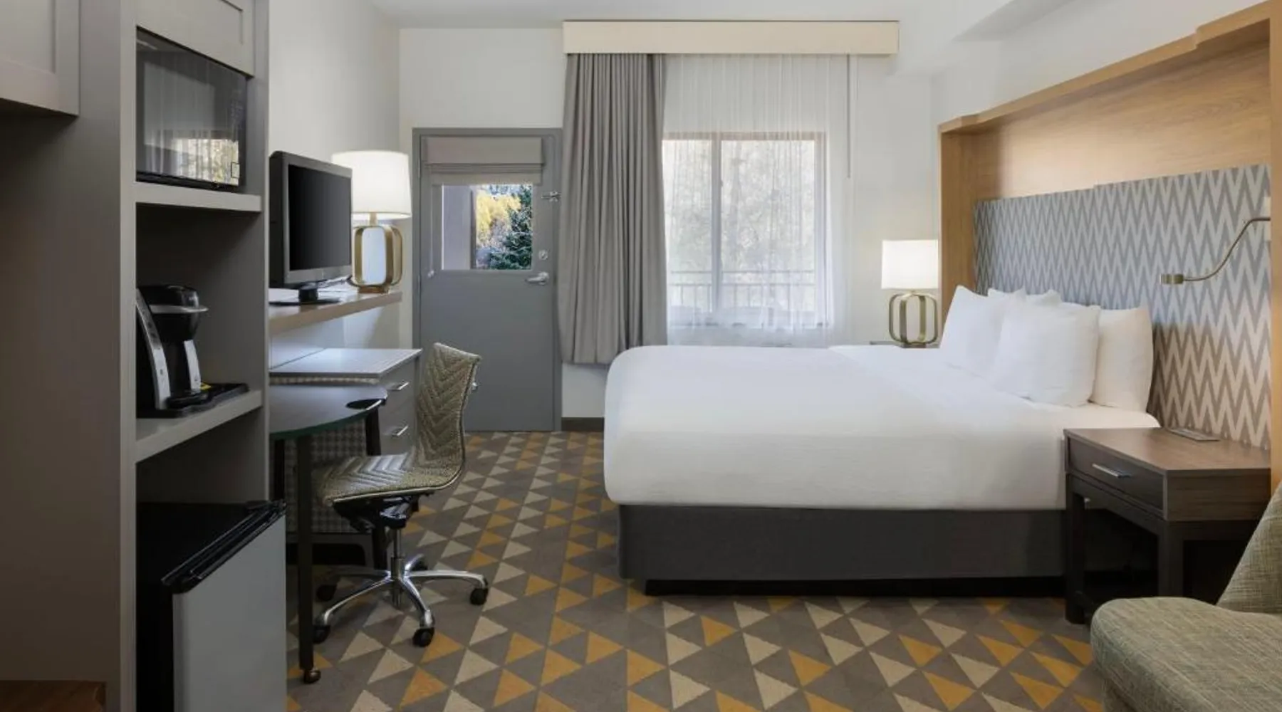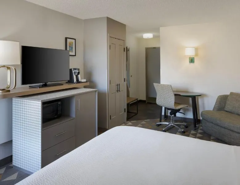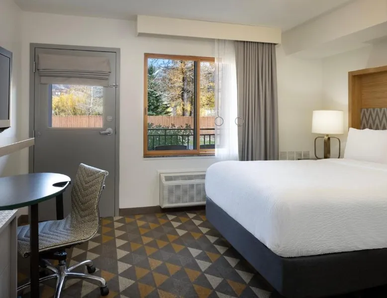Comfortable Accommodations: Holiday Inn Steamboat Springs by IHG in Steamboat Springs offers family rooms with air-conditioning, private bathrooms, and balconies. Each room includes a work desk, free WiFi, and modern amenities. Dining and Leisure: The family-friendly restaurant serves American and pizza cuisines for lunch and dinner. Guests can also enjoy the bar, indoor swimming pool, fitness center, and hot tub. Additional facilities include a coffee shop, outdoor seating area, and picnic spots. Convenient Location: Located 25 mi from Yampa Valley Regional Airport, the hotel is near attractions such as Yampa River Botanic Park (2.3 mi) and Old Town Hot Springs (2.9 mi). Guests appreciate the friendly staff, convenient location, and comfortable rooms. This suite is air-conditioned and features a carpeted floor, heating and mountain views. The unit offers 1 bed.