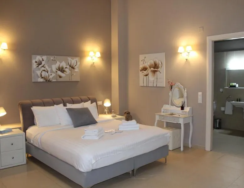 Located in Agios Stefanos, Pictures Suites feature an outdoor pool, a decked terrace with panoramic sea view and a poolside bar. The property offers elegantly decorated accommodations with sea-view balconies and free WiFi access. The beach is just 82 feet away. Fitted with modern furnishings and Candia Strom mattresses, the suites have a seating area, a modern kitchenette or kitchen and a bathroom with shower or bathtub. Facilities include air conditioning, flat-screen TV, slippers, bathrobes and free toiletries. Guests can relax at the sun loungers by the pool and enjoy a cold coffee or a refreshing drink from the poolside bar. Pictures Suites also feature a beach bar with sun loungers and umbrellas. The scenic Corfu Town is 24 mi away, while Paleokastritsa is 15 mi away. The nearest airport is Corfu International Airport, 25 mi from the property. The pool with a view is the standout feature of this suite. Boasting a private entrance, this air-conditioned suite features 1 living room, 1 separate bedroom and 1 bathroom with a bath and a shower. Guests can make meals in the kitchenette that has a stovetop, a refrigerator, kitchenware and an electric kettle. Featuring a terrace with sea views, this suite also features soundproof walls and a flat-screen TV with streaming services. The unit has 2 beds.