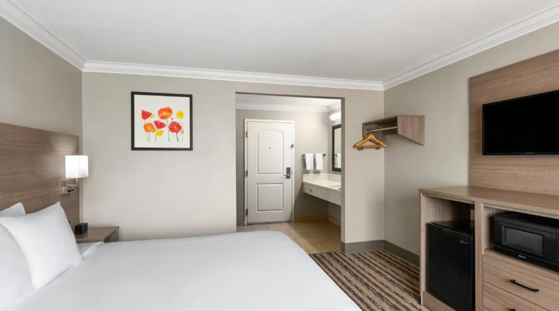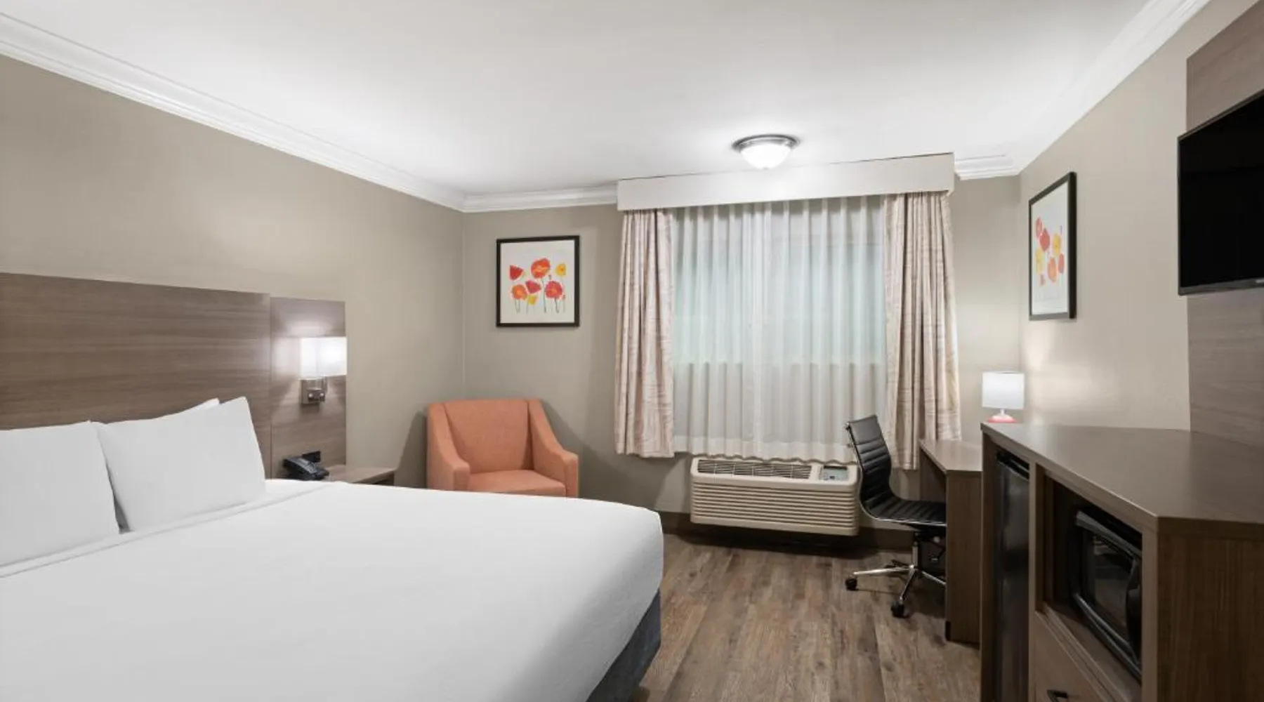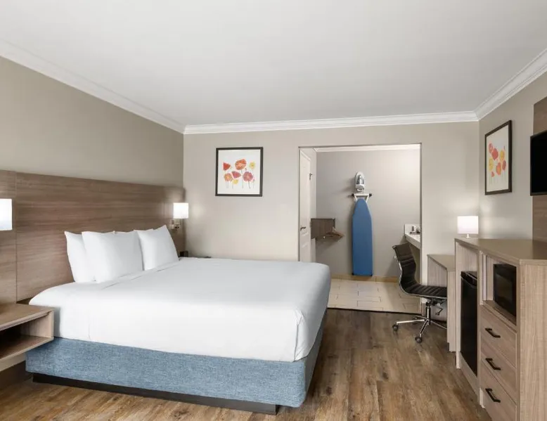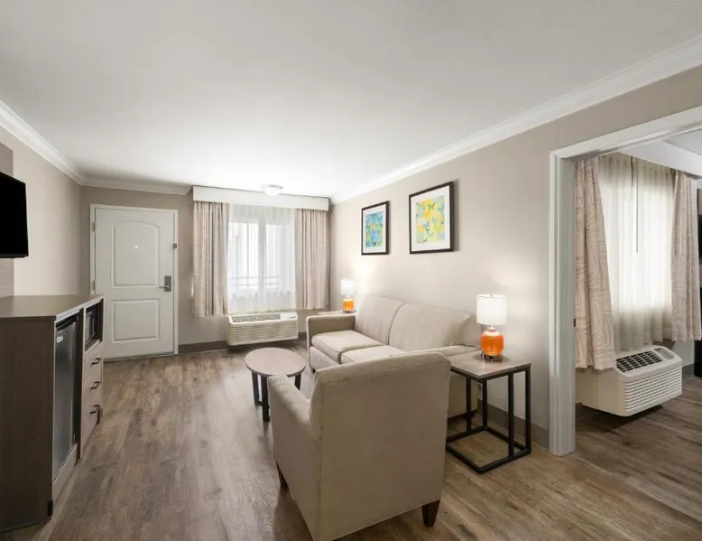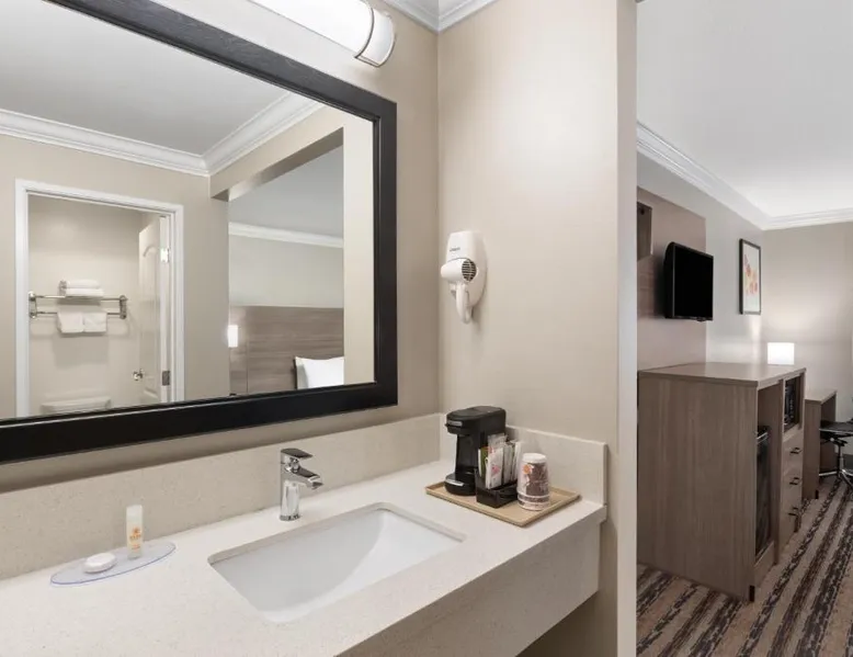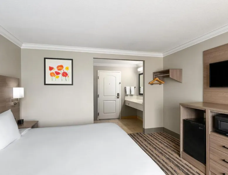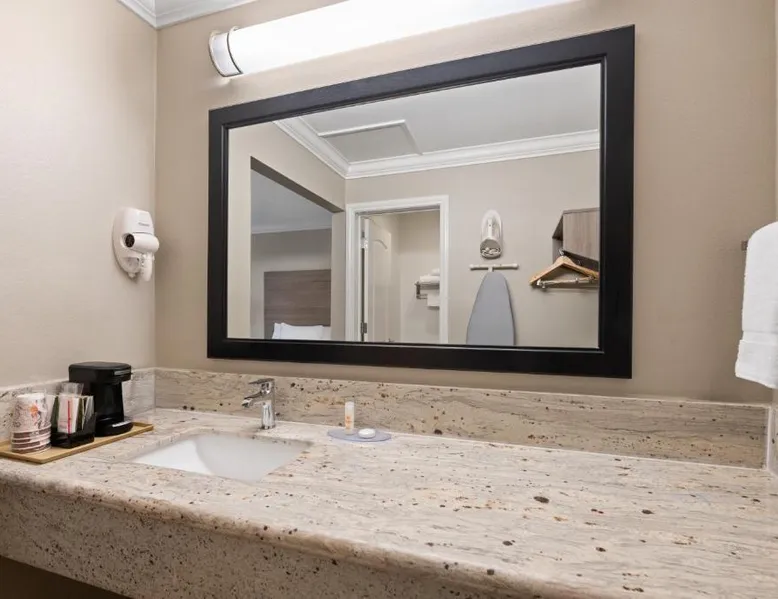 Offering free guest parking, this Anaheim hotel is located 1 mi from the main gate of Disneyland and Disney’s California Adventure Parks. Guests can relax in the outdoor pool. All rooms include free WiFi. Guest rooms at Solara Inn and Suites include a seating area, a work desk and a coffee machine. Select rooms include a microwave and a refrigerator. The private bathrooms includes a hairdryer. A business center is located on-site at Solara Inn and Suites. Solara Inn and Suites is 7 minutes' drive away from Angels Stadium of Anaheim, home of the California Angels professional baseball team. John Wayne Airport is 12 mi from the property. Offering free WiFi, this room includes a cable TV, a seating area, a work desk and a coffee machine. The private bathroom includes a hairdryer.