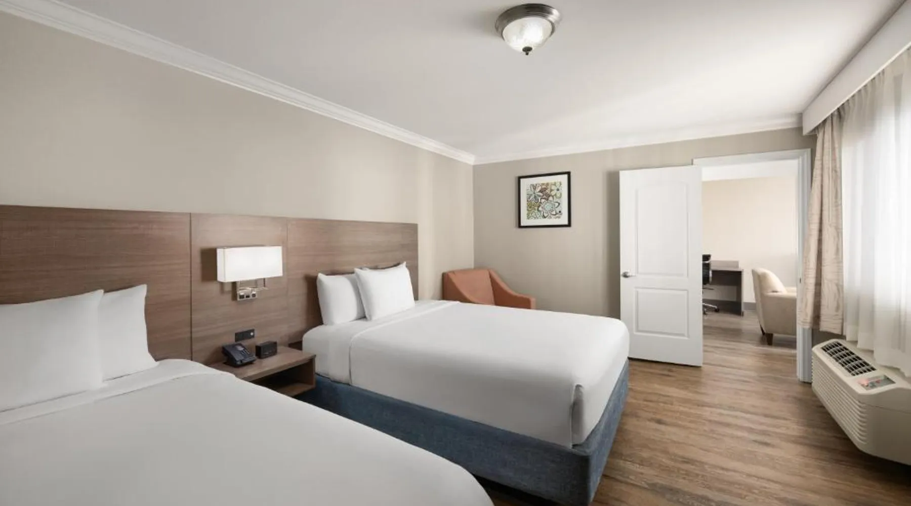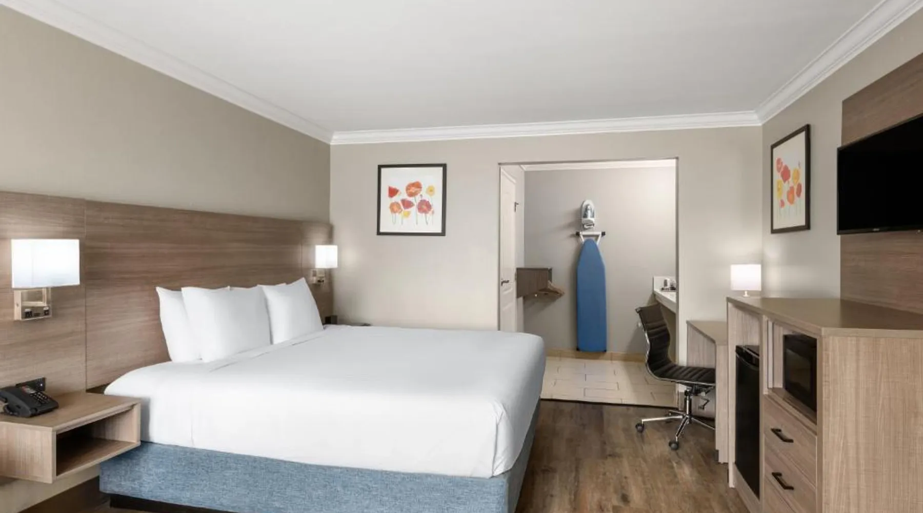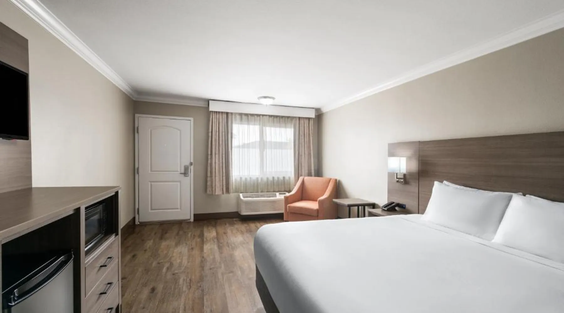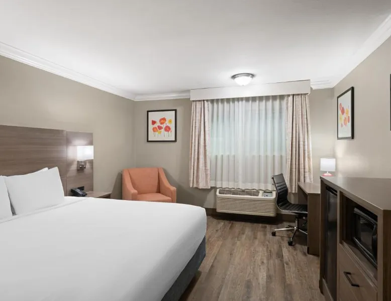 Offering free guest parking, this Anaheim hotel is located 1 mi from the main gate of Disneyland and Disney’s California Adventure Parks. Guests can relax in the outdoor pool. All rooms include free WiFi. Guest rooms at Solara Inn and Suites include a seating area, a work desk and a coffee machine. Select rooms include a microwave and a refrigerator. The private bathrooms includes a hairdryer. A business center is located on-site at Solara Inn and Suites. Solara Inn and Suites is 7 minutes' drive away from Angels Stadium of Anaheim, home of the California Angels professional baseball team. John Wayne Airport is 12 mi from the property. Offering free WiFi, this room includes a cable TV, a seating area, a work desk and a coffee machine. The private bathroom includes a hairdryer.