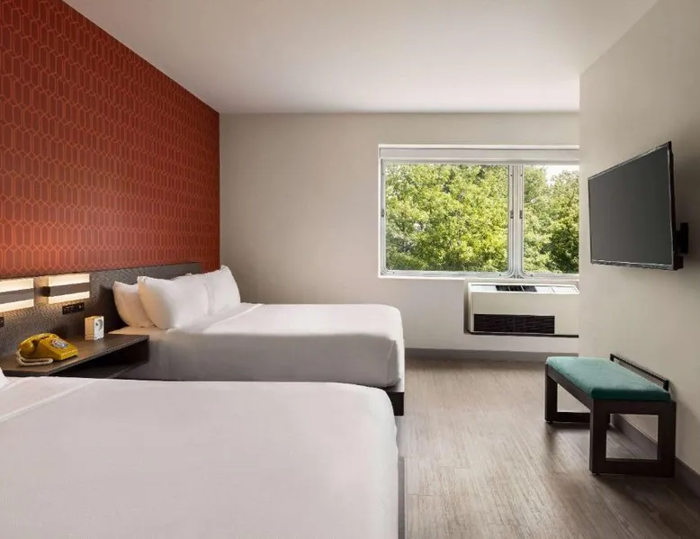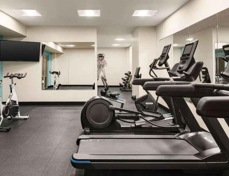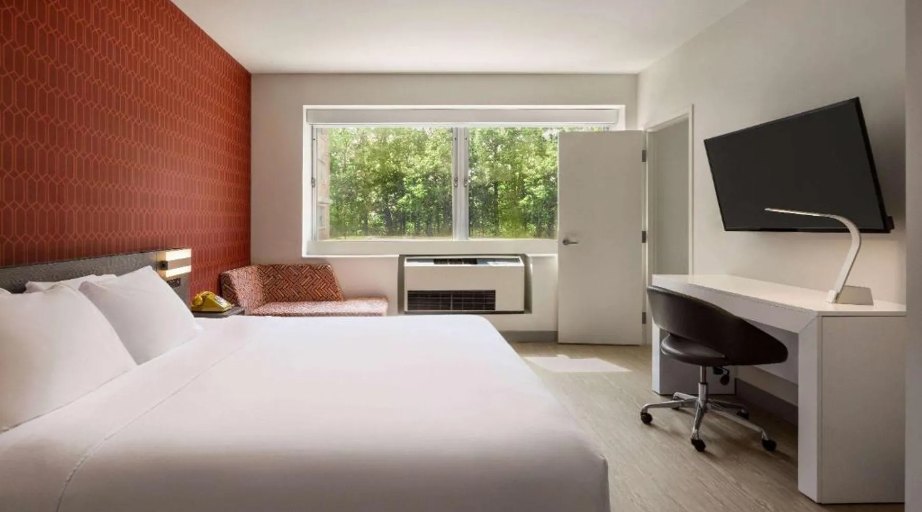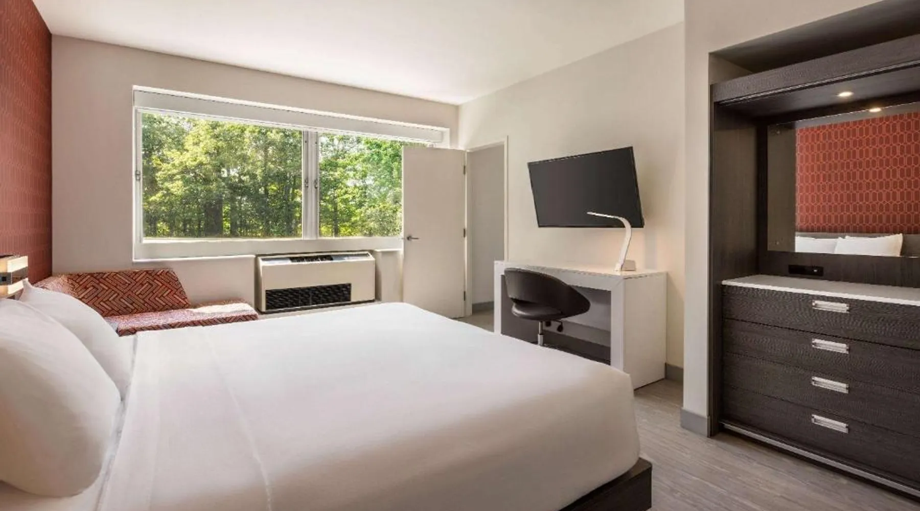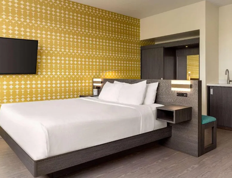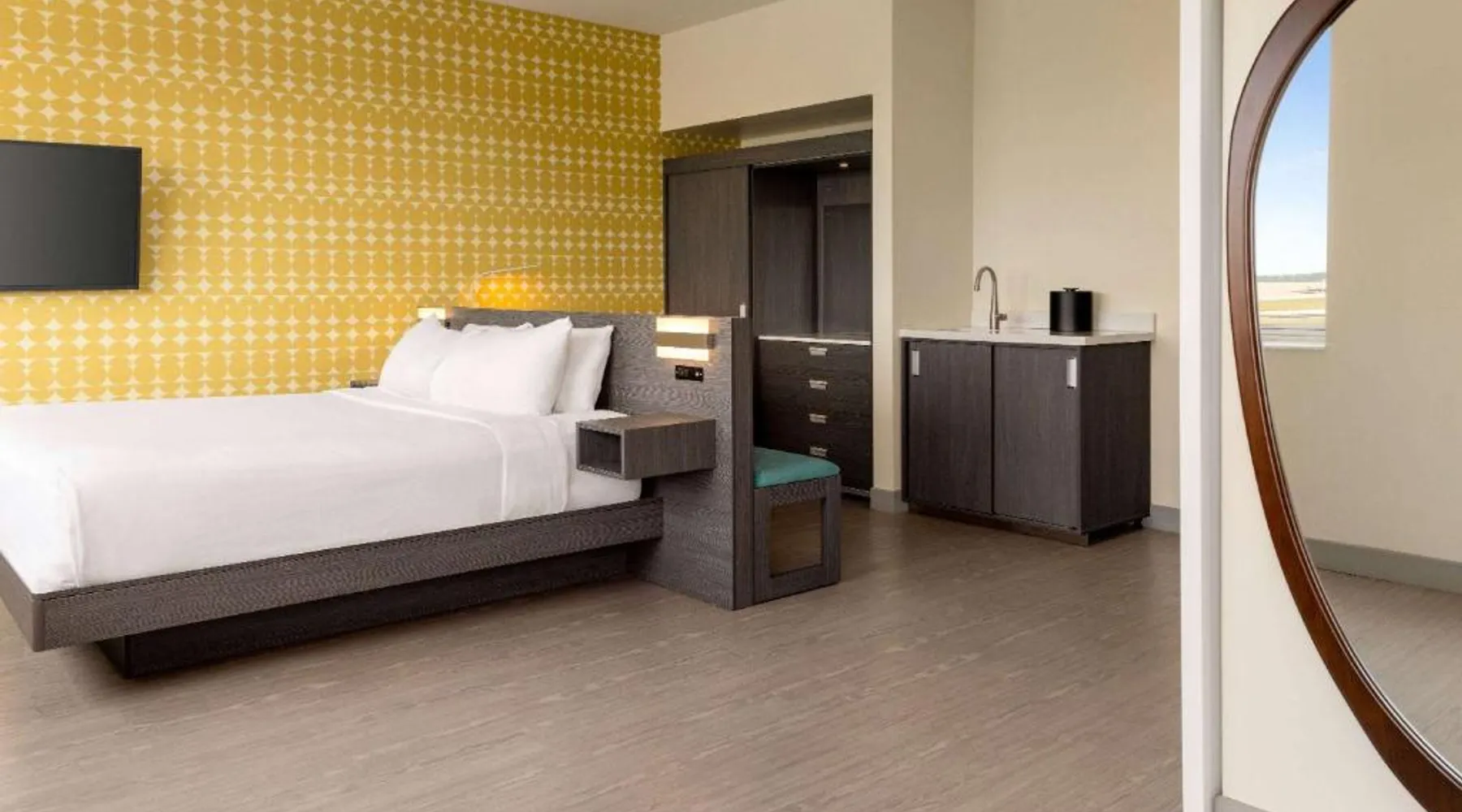 Comfortable Accommodations: The Orbit Hotel, Trademark Collection by Wyndham in Fairview Park offers air-conditioned rooms with private bathrooms, sofa beds, work desks, and parquet floors. Each room includes a TV and hairdryer. Convenient Facilities: Guests benefit from a free airport shuttle service, elevator, 24-hour front desk, and minimarket. The hotel provides an American buffet breakfast each morning. Prime Location: Located 3281 feet from Cleveland Hopkins International Airport, the hotel is less than 0.6 mi from Nasa Glenn Research Center. Nearby attractions include Westfield Great Northern Shopping Center (3.1 mi) and Cleveland Browns Stadium (12 mi). Guest Satisfaction: Highly rated for its connectivity to the airport, convenient location, and shuttle service. The suite offers air conditioning, a sofa, as well as a private bathroom boasting a shower and a hairdryer. This suite features parquet floors and a TV.