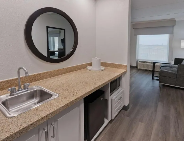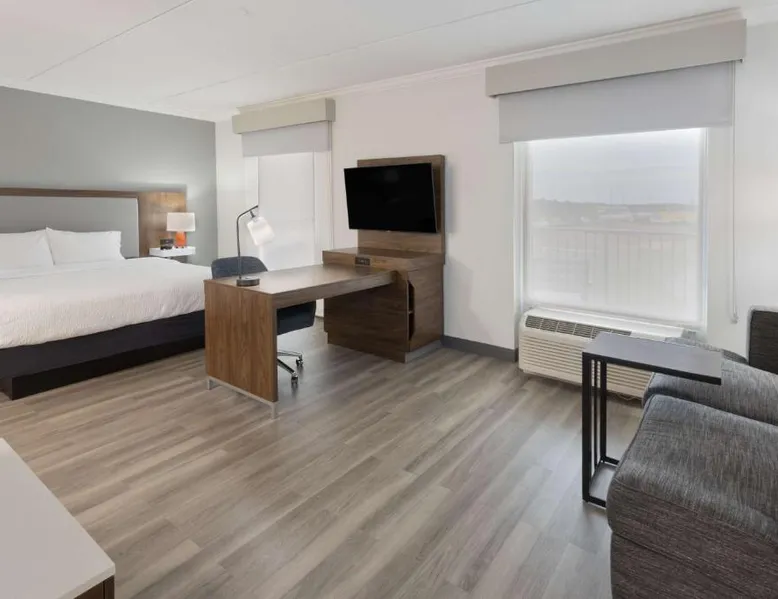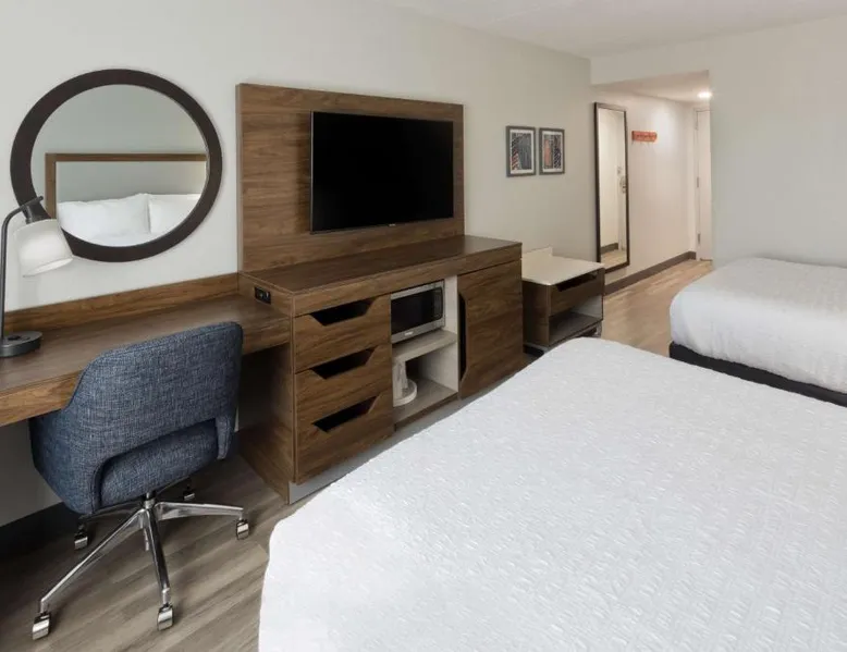 Comfortable Accommodations: Hampton Inn & Suites Lanett/West Point in Lanett offers family rooms with balconies, refrigerators, and free toiletries. Each room includes a microwave, TV, and sofa bed. Exceptional Facilities: Guests enjoy an indoor swimming pool, sun terrace, fitness room, and outdoor seating area. Additional amenities include a minimarket, daily housekeeping, and free on-site parking. Delicious Breakfast: A complimentary American buffet breakfast is served daily, featuring warm dishes, fresh pastries, cheese, and fruits. Convenient Location: Located 38 mi from Columbus Airport, the hotel is near attractions such as Auburn University (24 mi) and The Gallery on Railroad (17 mi). Highly rated for staff and service support. The unit has 2 beds.
