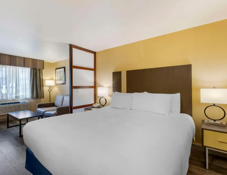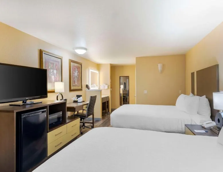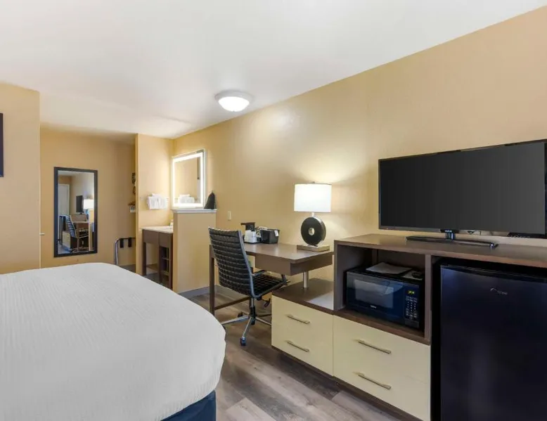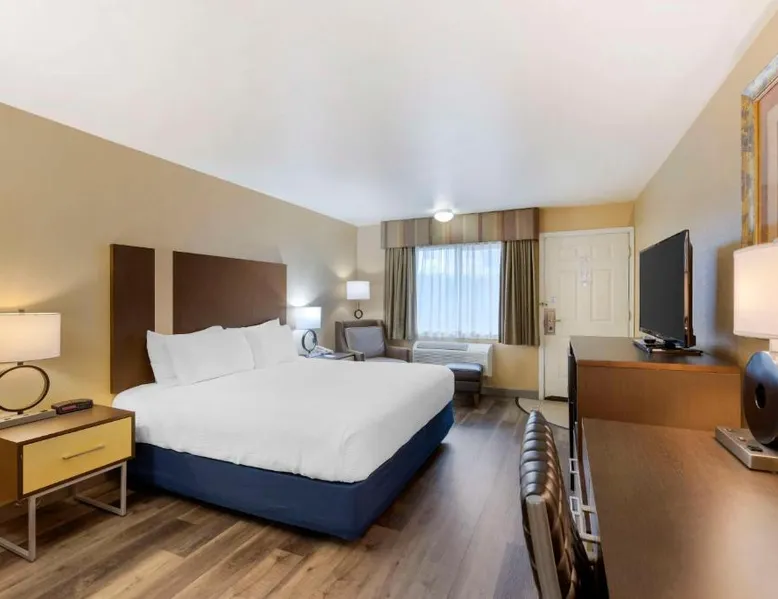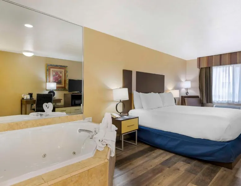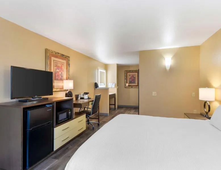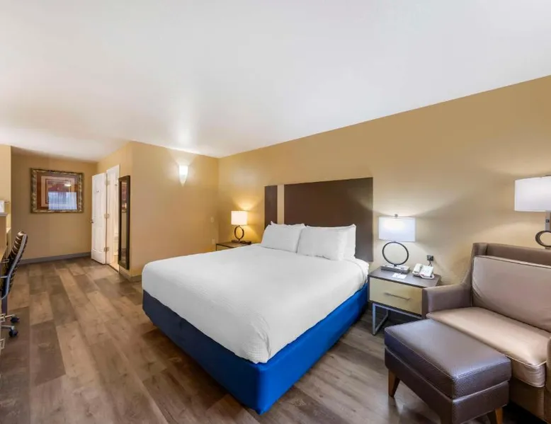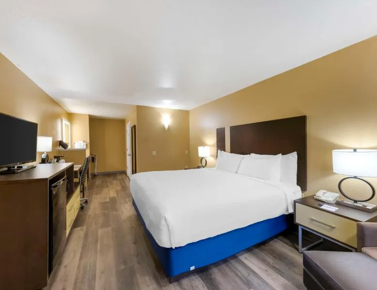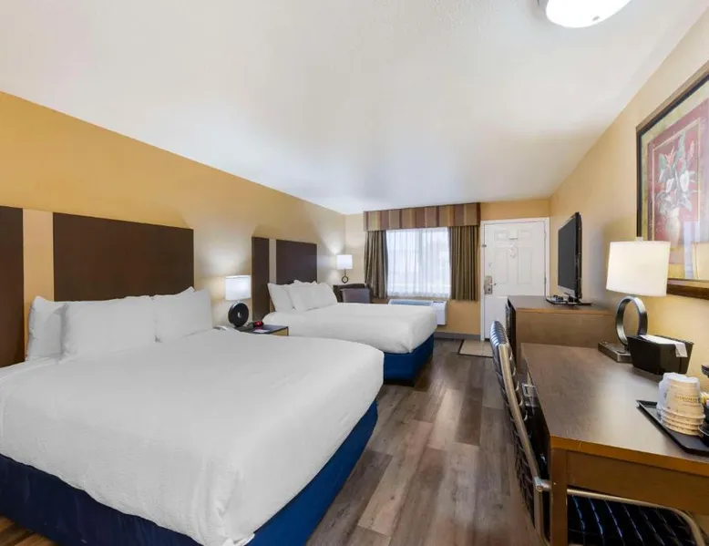 Comfortable Accommodations: Best Western Fallon Inn & Suites in Fallon offers family rooms with air-conditioning, private bathrooms, and free WiFi. Each room includes a work desk, TV, and seating area. Leisure Facilities: Guests can enjoy a fitness center, seasonal outdoor swimming pool, and outdoor seating area. Additional amenities include a business area, 24-hour front desk, and free on-site private parking. Dining Options: A variety of breakfast options are available, including continental, American, buffet, vegetarian, and gluten-free. Breakfast includes juice, fresh pastries, pancakes, cheese, and fruits. Convenient Location: Located 60 mi from Reno-Tahoe International Airport, the hotel provides easy access to local attractions. The double room provides a tea and coffee maker and a safe deposit box. The unit offers 1 bed.
