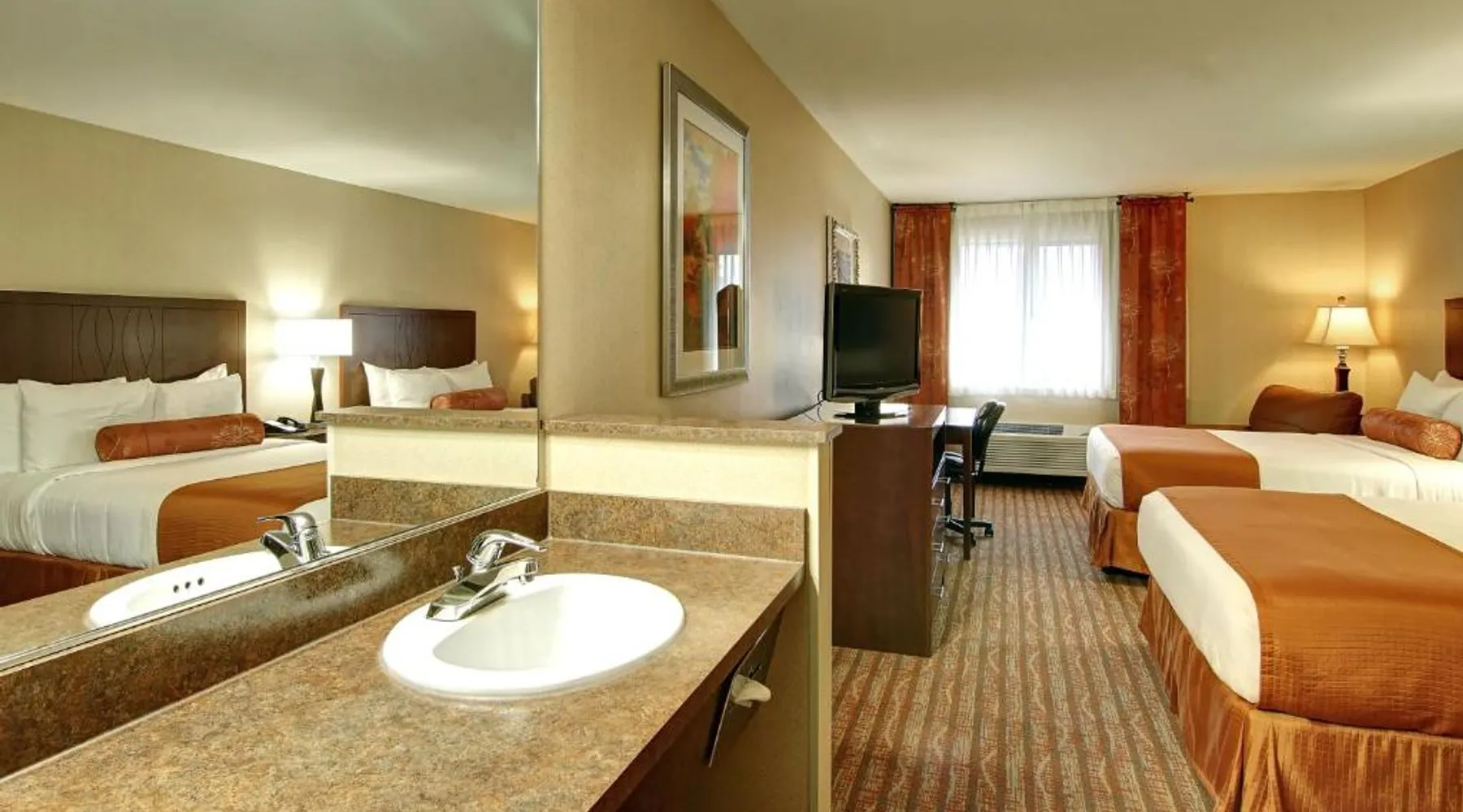 Comfortable Accommodations: The Hotel Salem in Salem offers air-conditioned rooms with private bathrooms, baths, tea and coffee makers, and free WiFi. Each room includes a work desk, seating area, and TV. Facilities and Services: Guests can enjoy a fitness center, indoor swimming pool, and free on-site private parking. Additional amenities include a elevator, 24-hour front desk, housekeeping service, and luggage storage. Breakfast and Location: A buffet breakfast is provided each morning. The hotel is 57 mi from Eugene Airport and near attractions such as Enchanted Forest Theme Park (4.3 mi) and Linfield College (29 mi). Highly rated for its breakfast, staff, and room cleanliness. Featuring free toiletries, this double room includes a private bathroom with a bath, a shower and a hairdryer. This double room is air-conditioned and has a seating area with a flat-screen TV, a tea and coffee maker, a wardrobe, a sofa, as well as a carpeted floor. The unit has 1 bed.